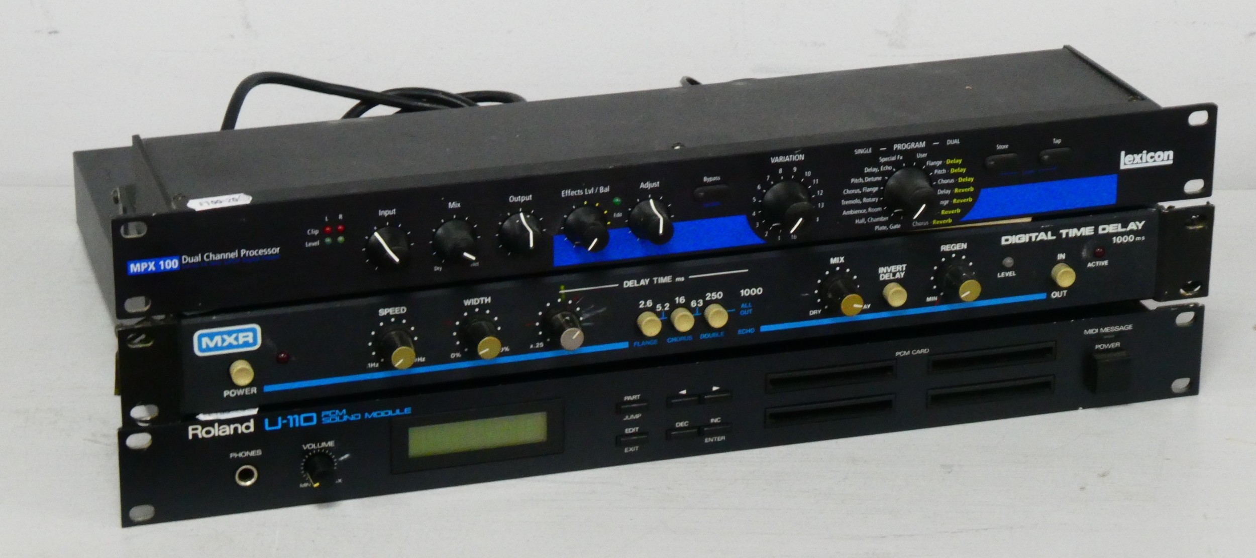 Lexicon MPX100 Dual Channel Processor, MXR1000MS digital time delay, and Roland U-110 sound module (untested).