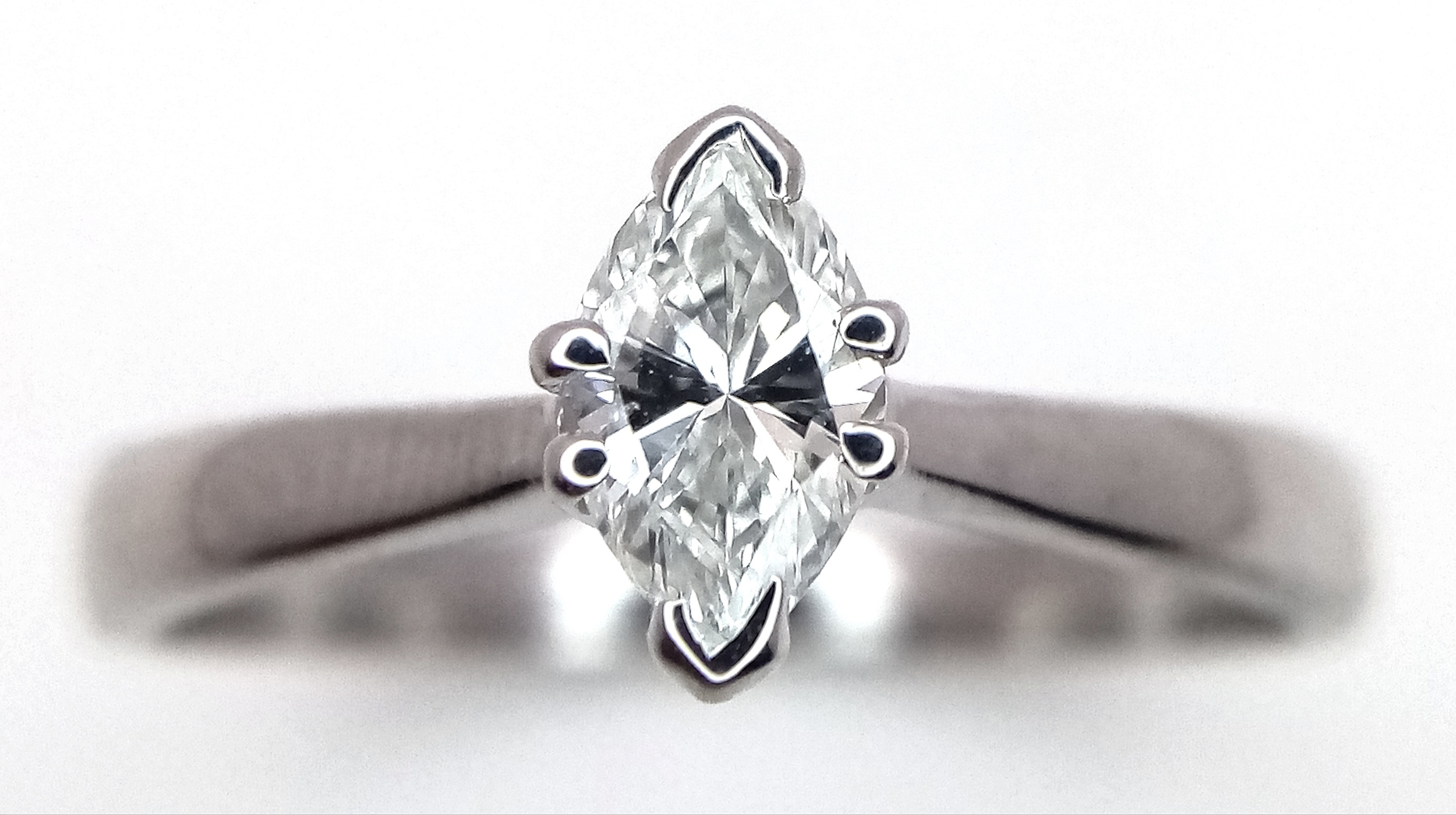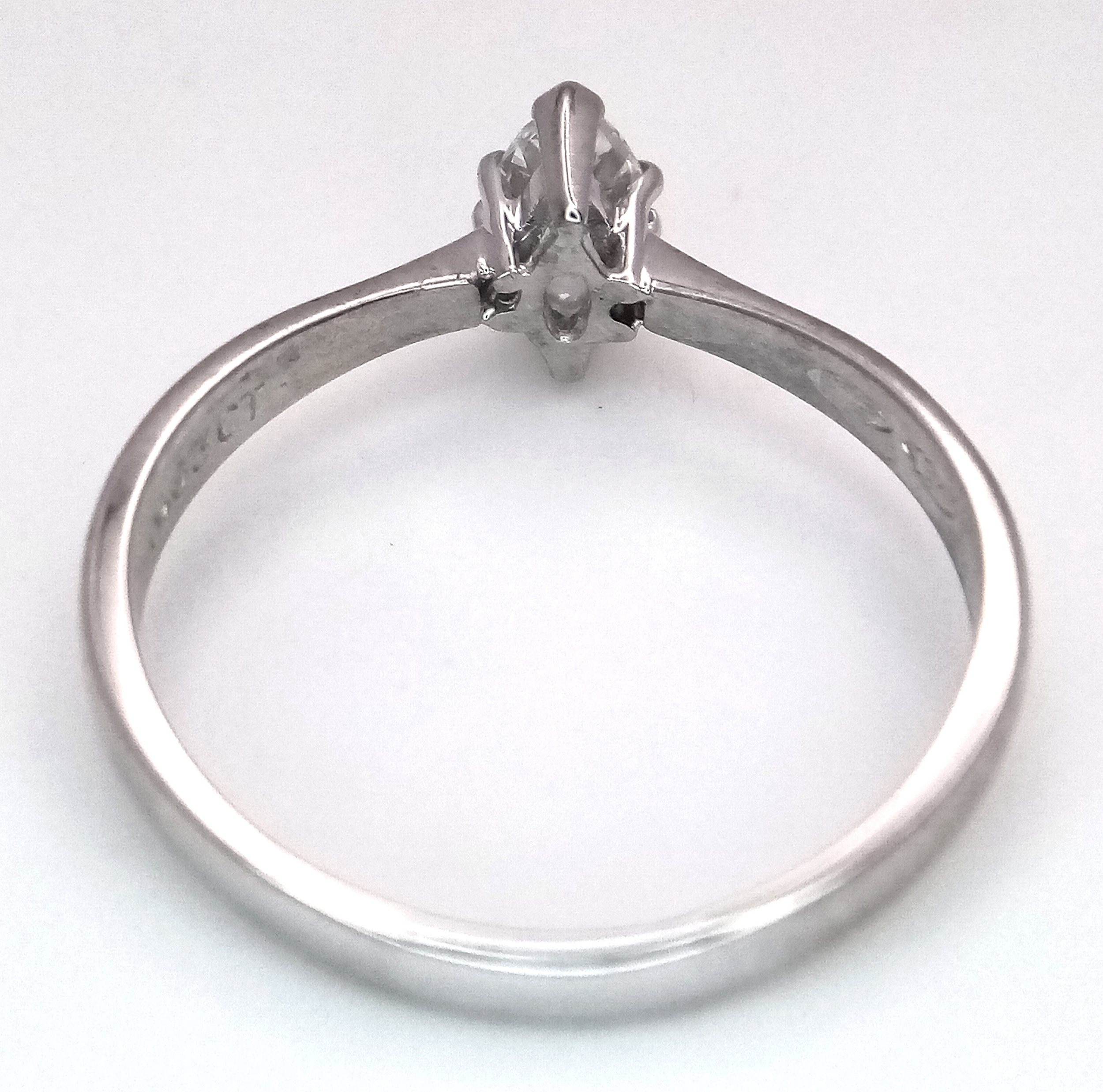 AN 18K WHITE GOLD MARQUISE CUT DIAMOND SOLITAIRE RING. DIAMOND WEIGHT 0.40CT. TOTAL WEIGHT 2.4G. SIZE N. SPSA 2016