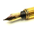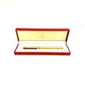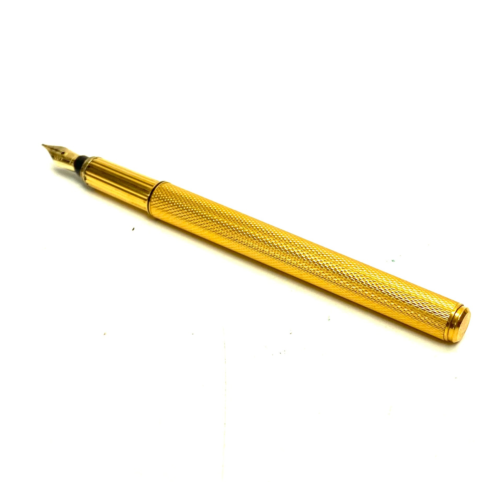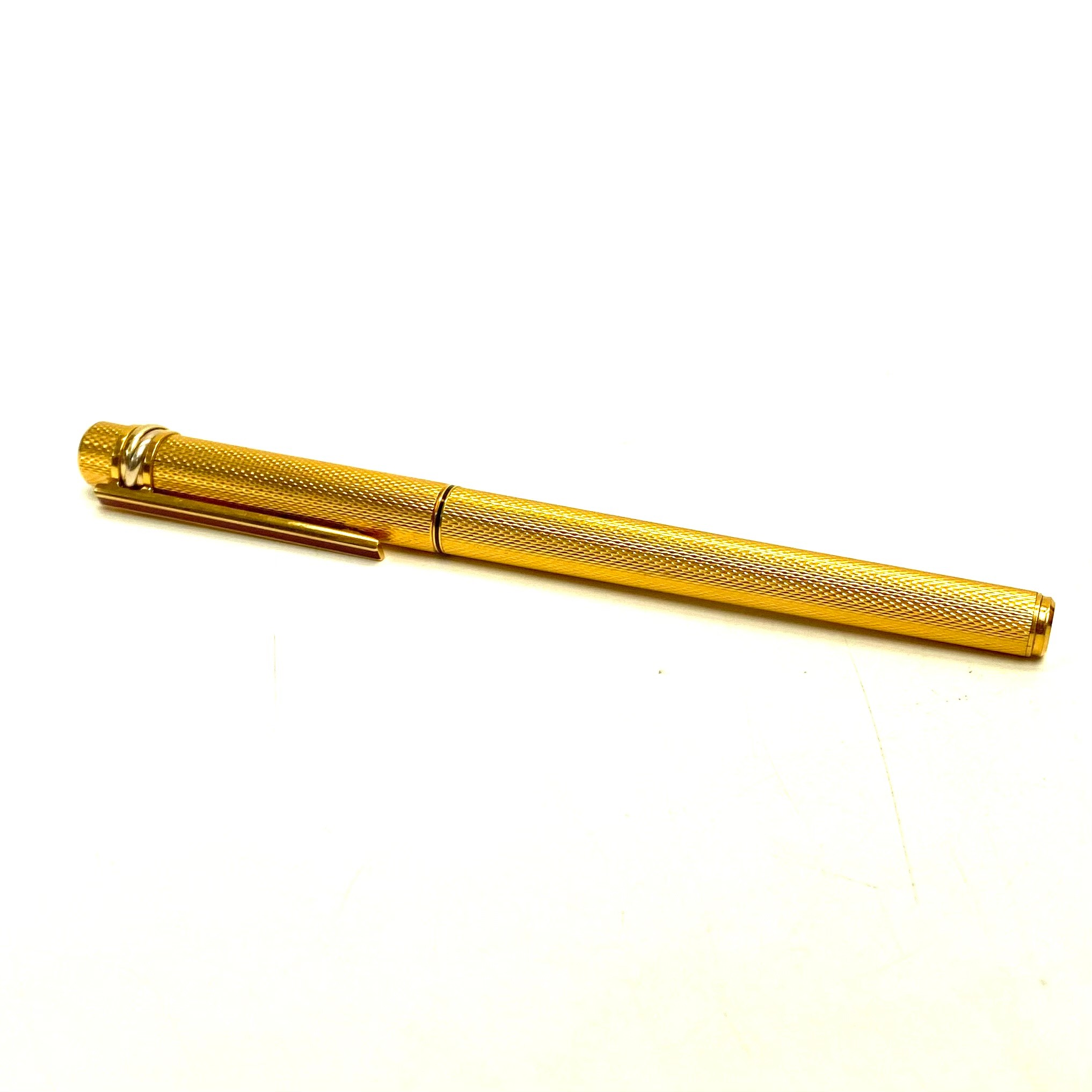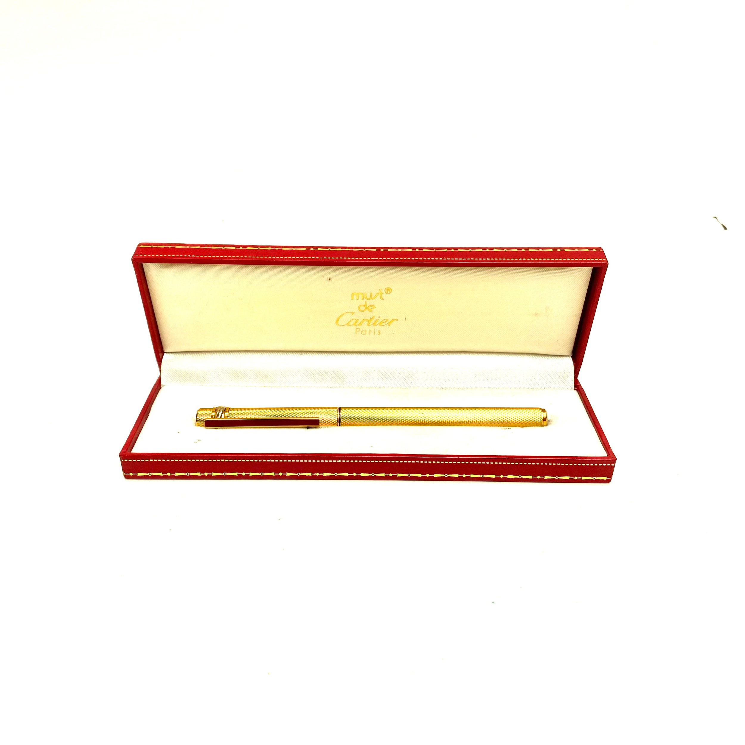 Ler must de Cartier Gold Plated Fountain pen in original box, with 18k nib. Serial number 352284.