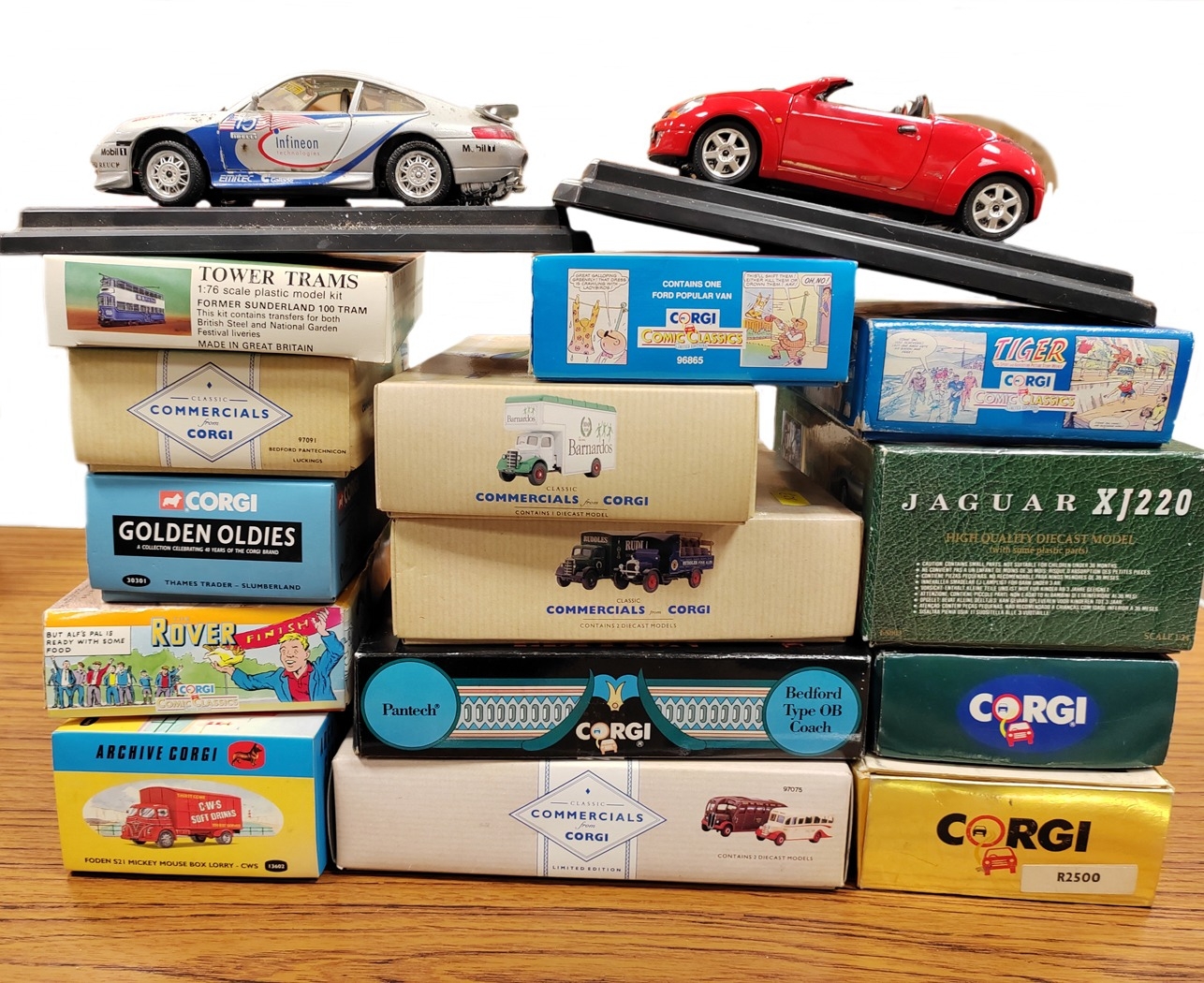 Corgi. Collection generally excellent to mint in mostly very good boxes with some better, also includes Matchbox 1:24 scale Masterclass Collection Jaguar XJ220 and range of static locomotives. (2B)