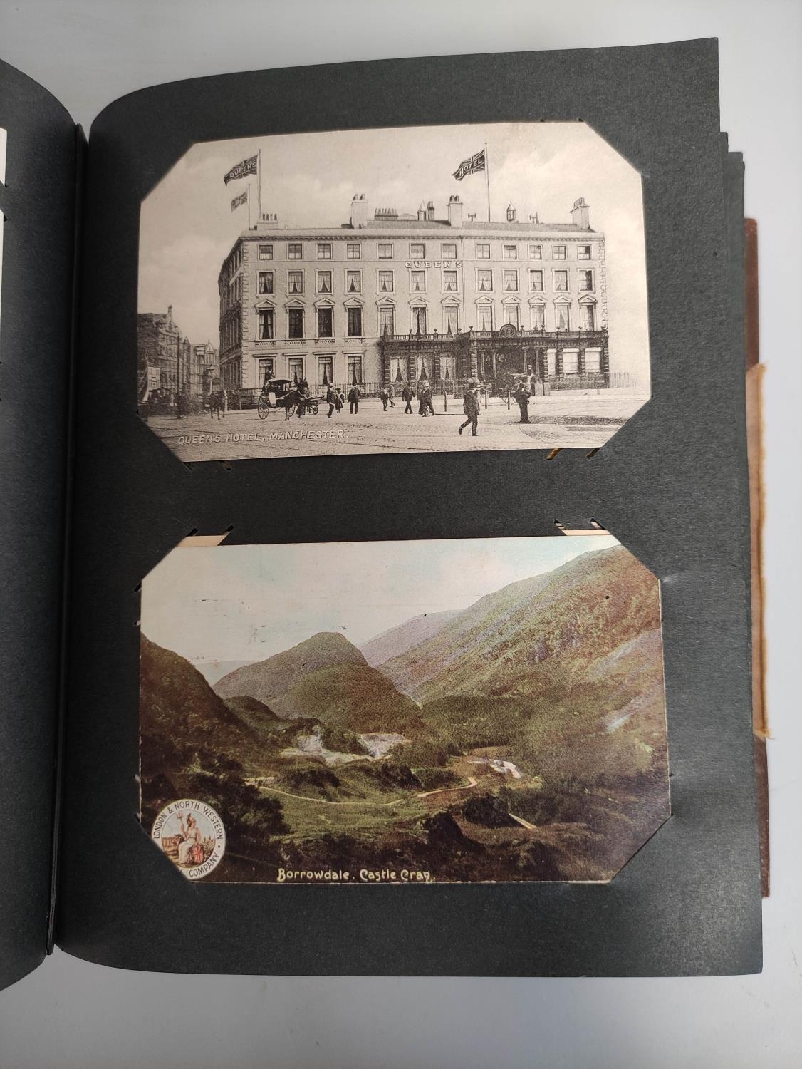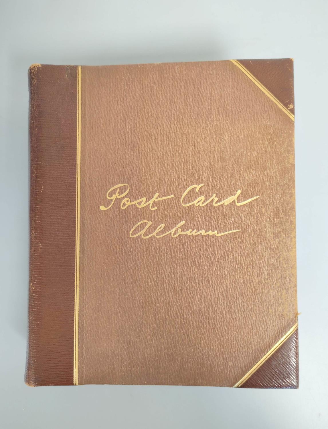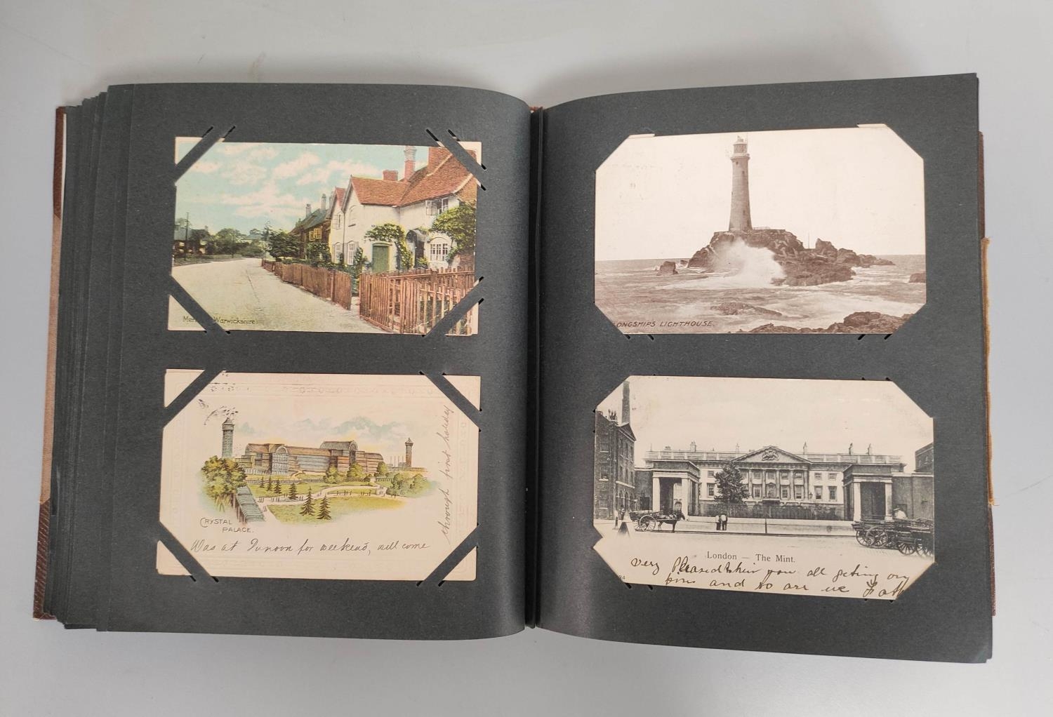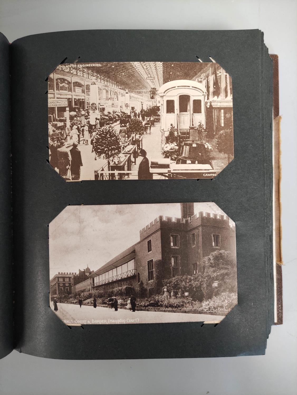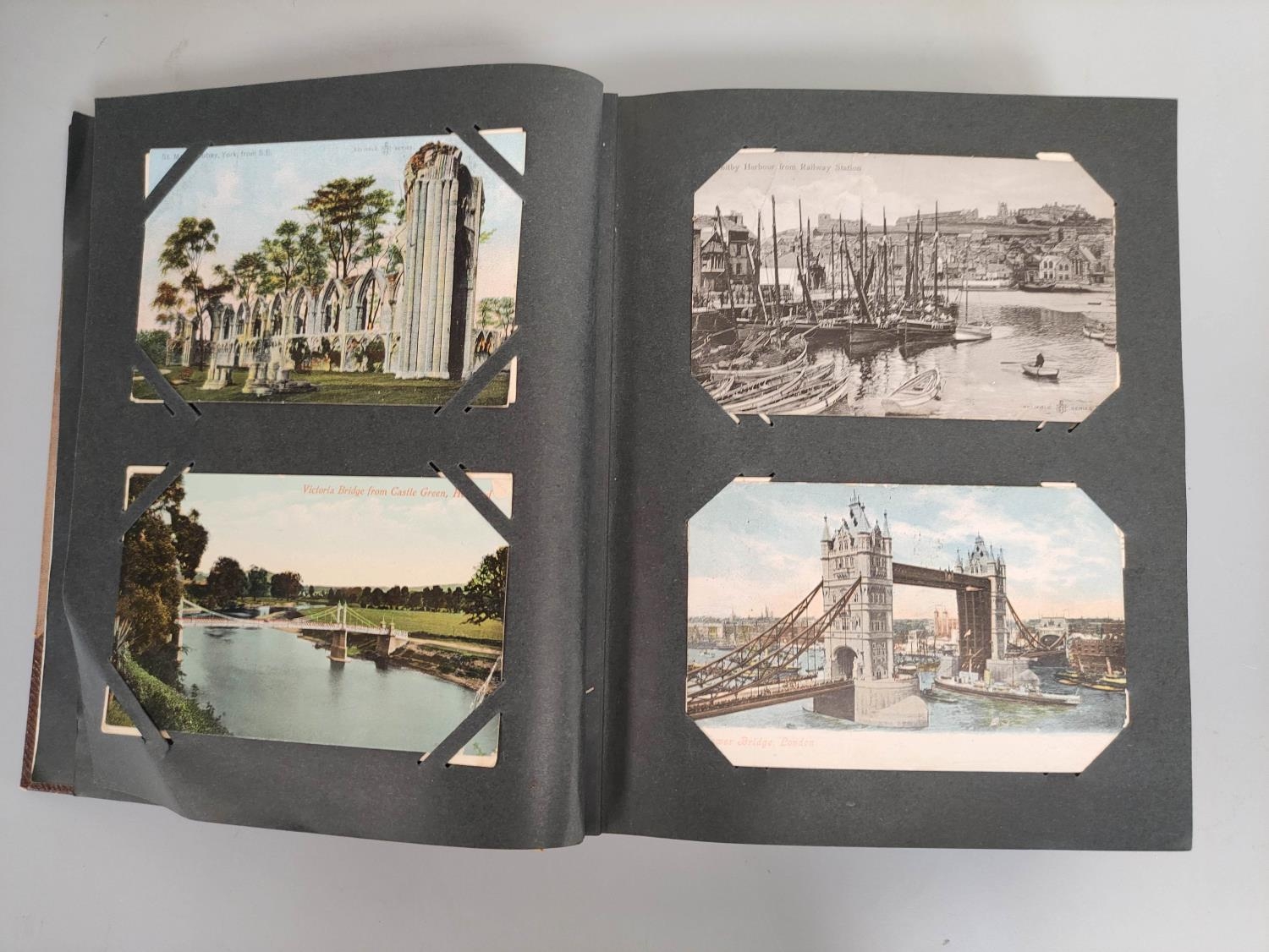 Album containing over 300 early 20th century postcards mostly of British topographical views such as Tower Bridge & Hampton Court.