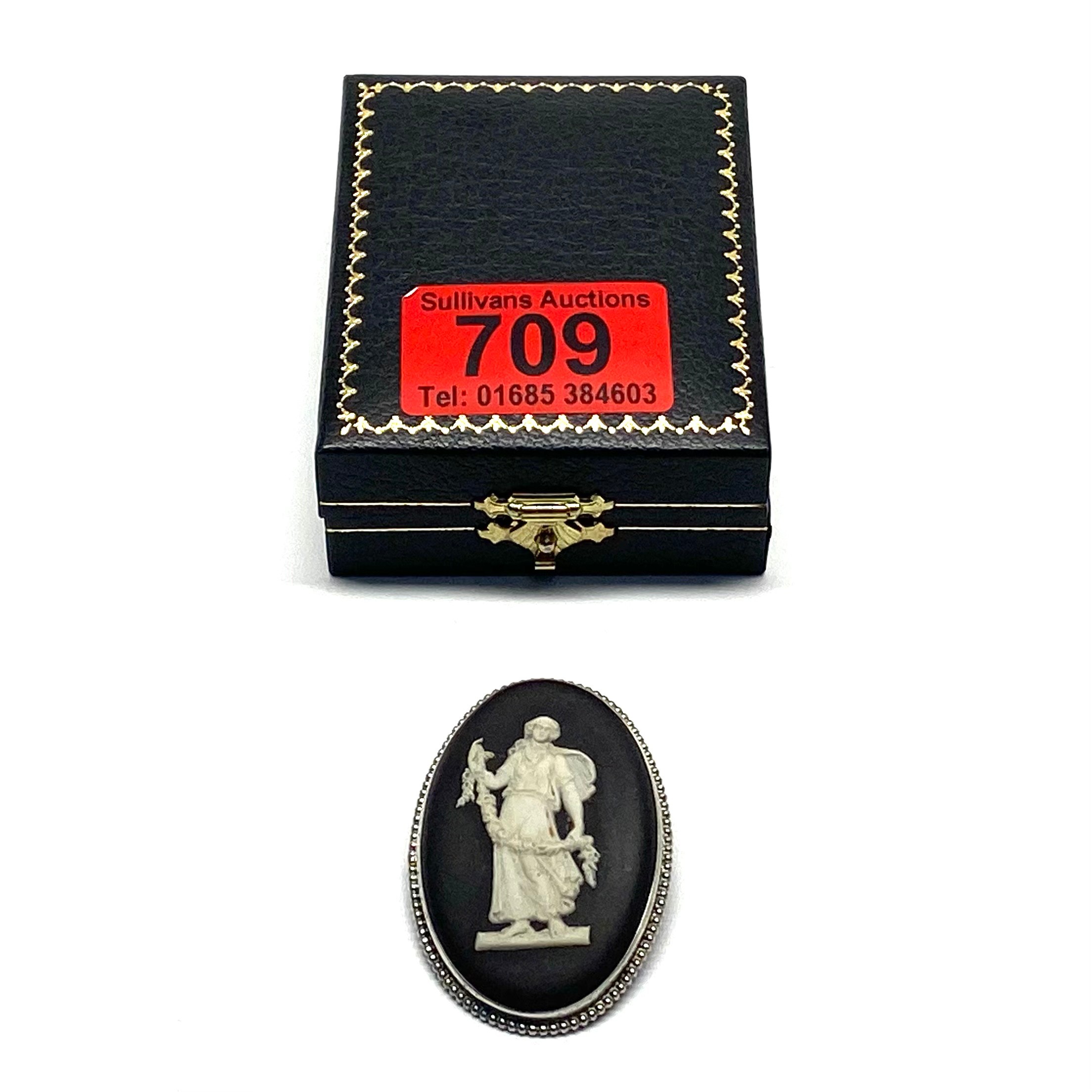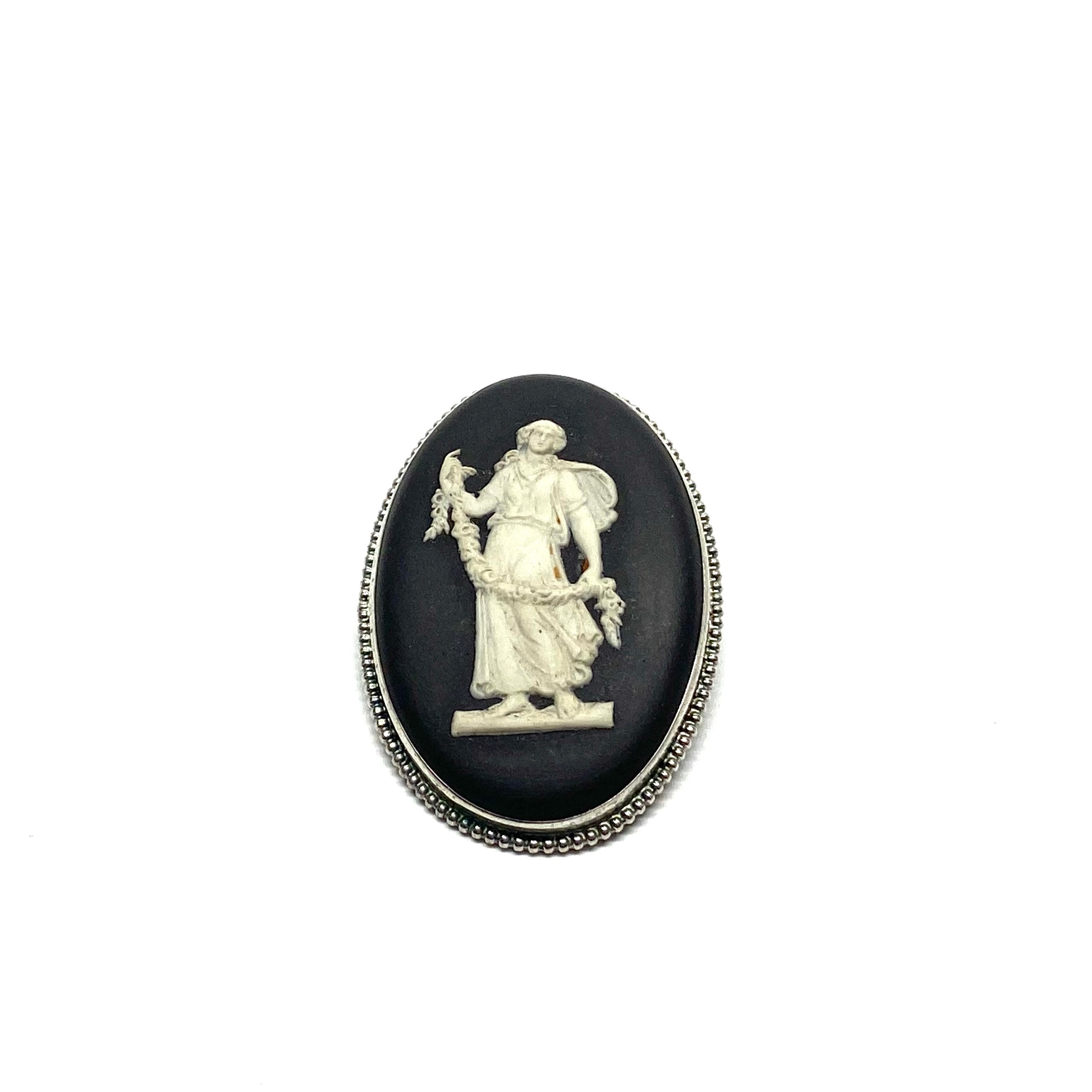 Vintage sterling silver and Black Jasperware Wedgewood Cameo Brooch.