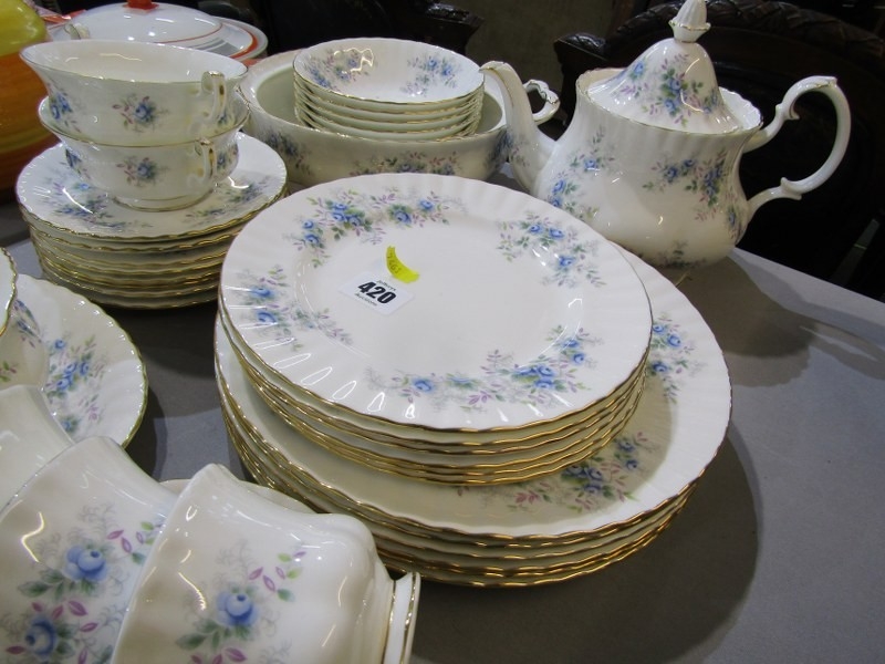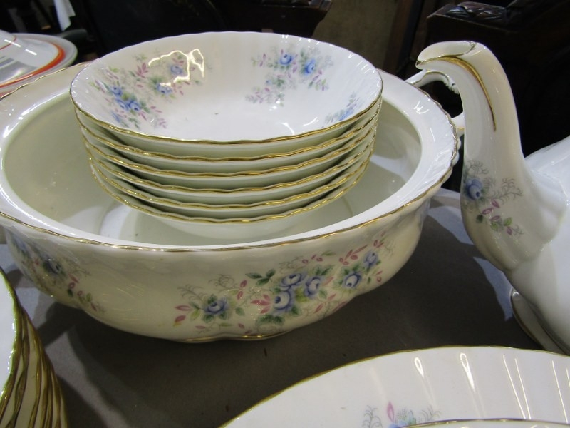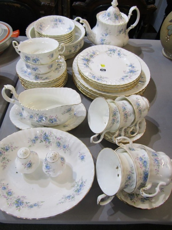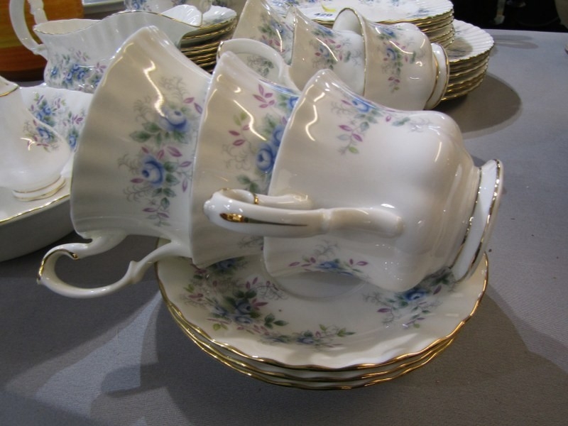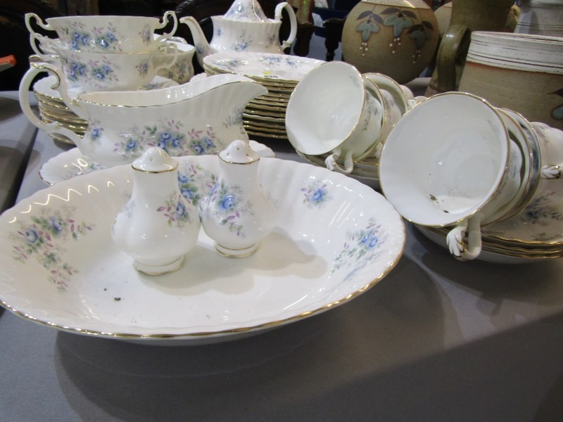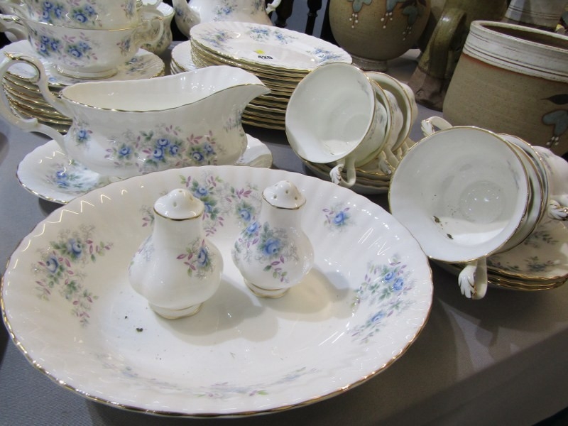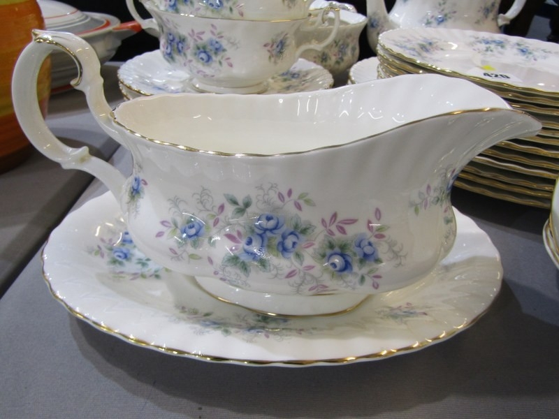 ROYAL ALBERT, collection of Royal Albert 'Blue Blossom' tea and dinner ware, including tea pot, gravy boat and stand, cups and saucers, dinner and tea plates etc.