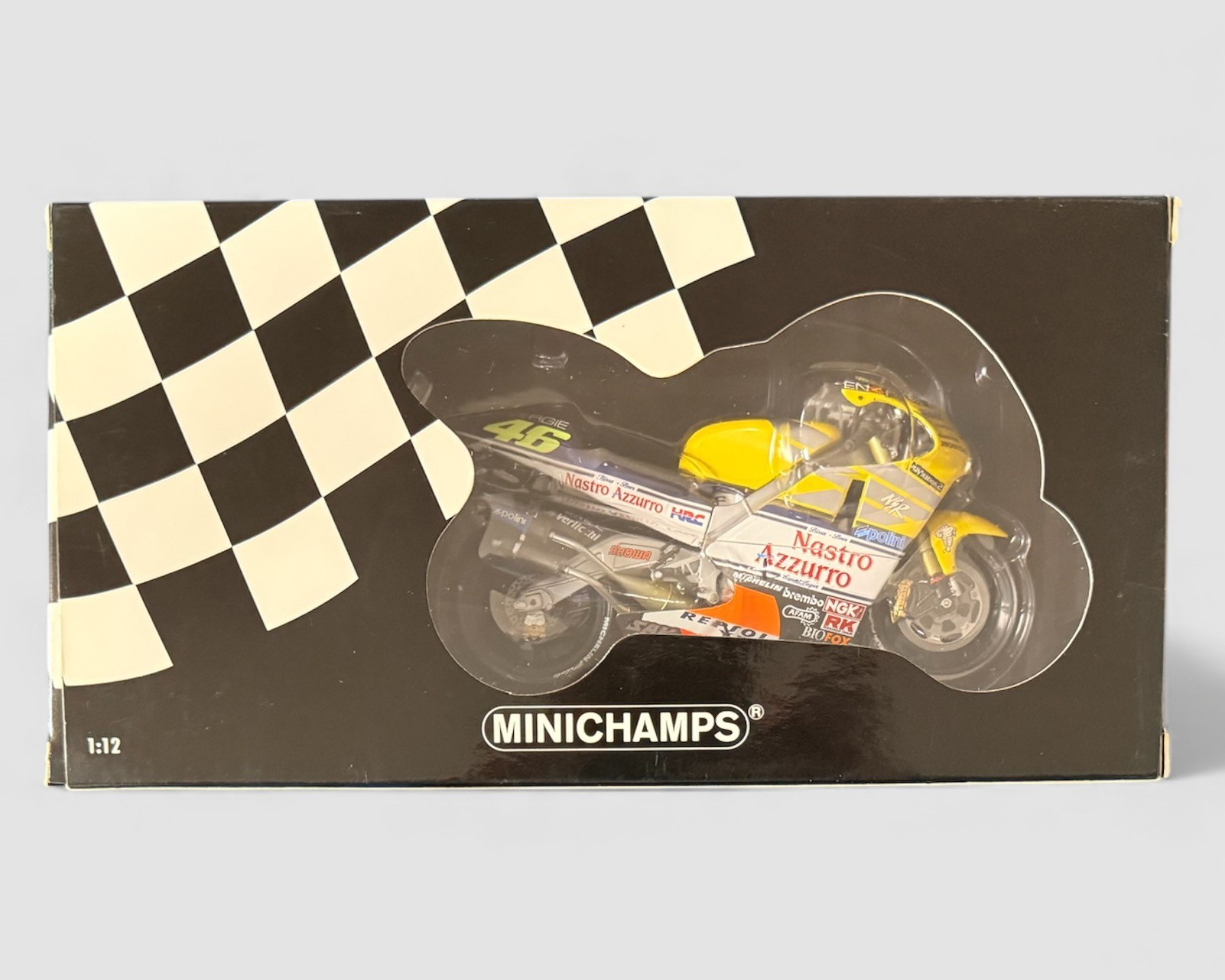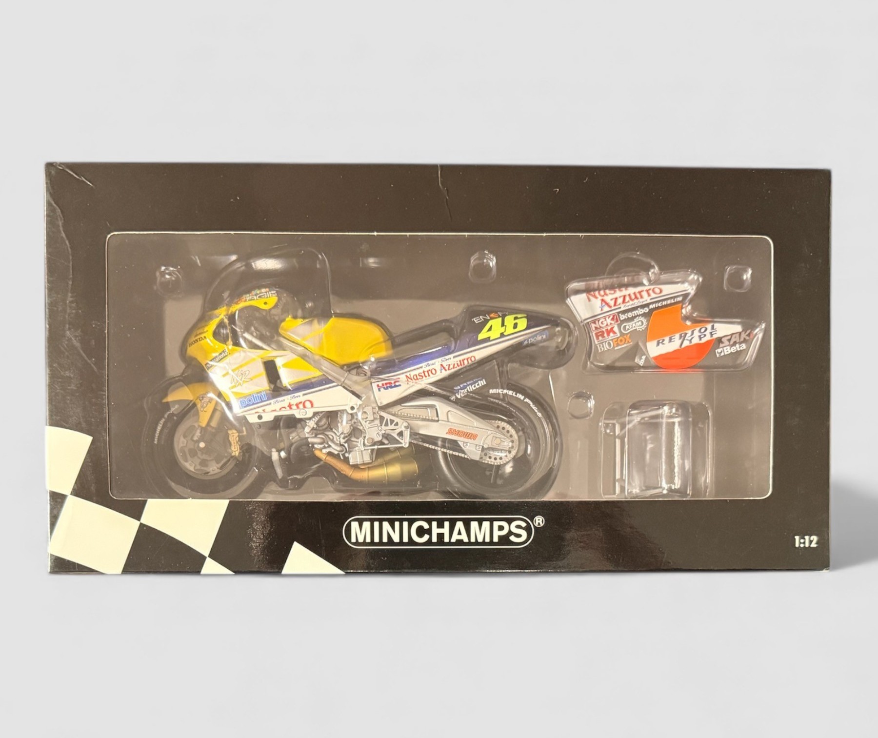 Minichamps 1/12th scale Honda NSR 500 2001 Team Nastro Azzuro No. 122 016146, generally excellent in excellent window box including inner plastic clamshell. Contents unchecked for completeness or correctness and viewing recommended.