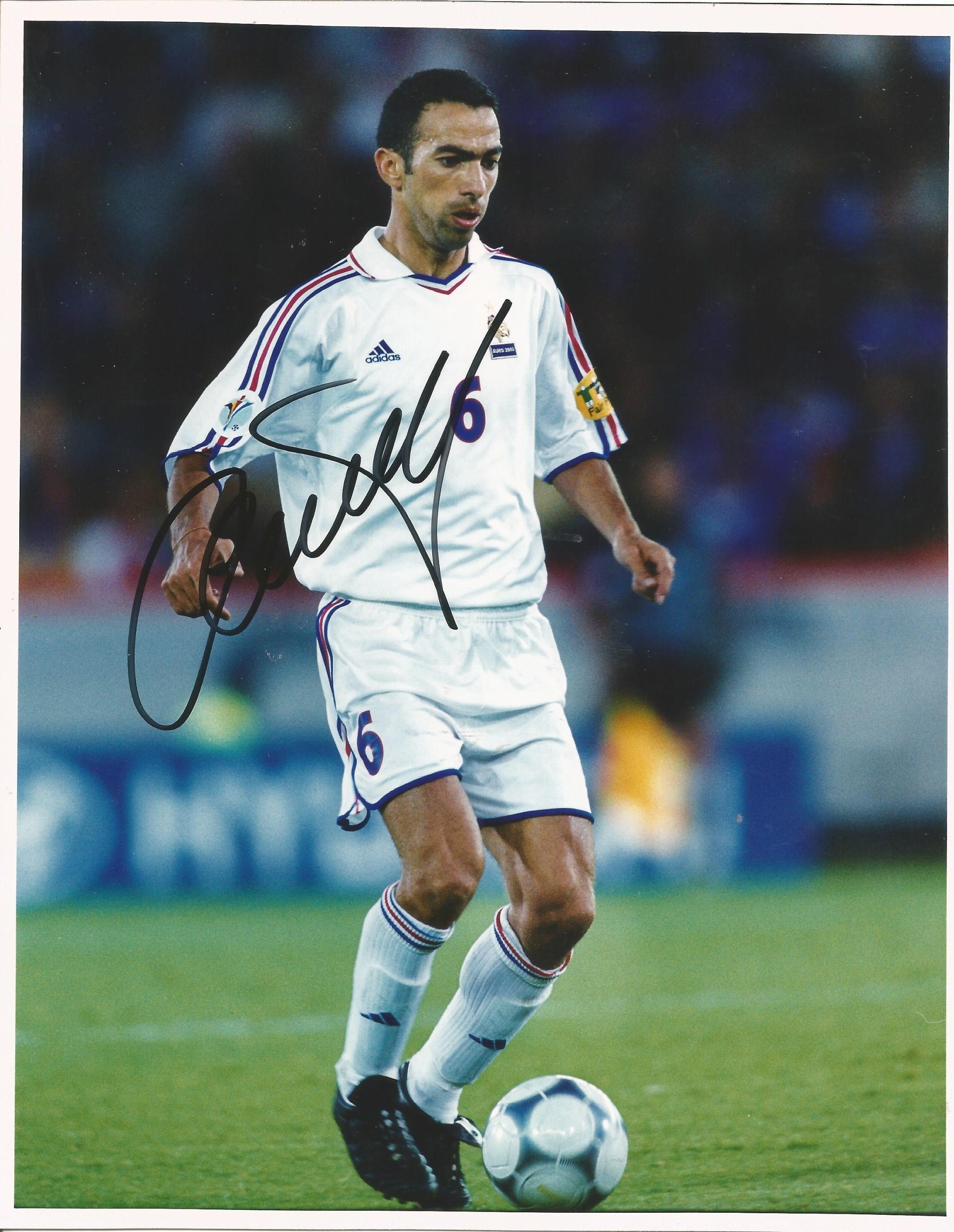 Youri Djorkaeff signed 10x8inch colour photo pictured in action for France.