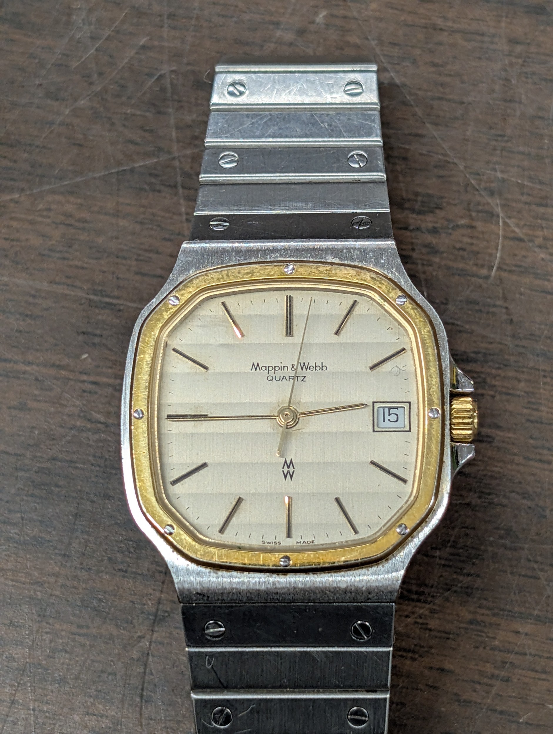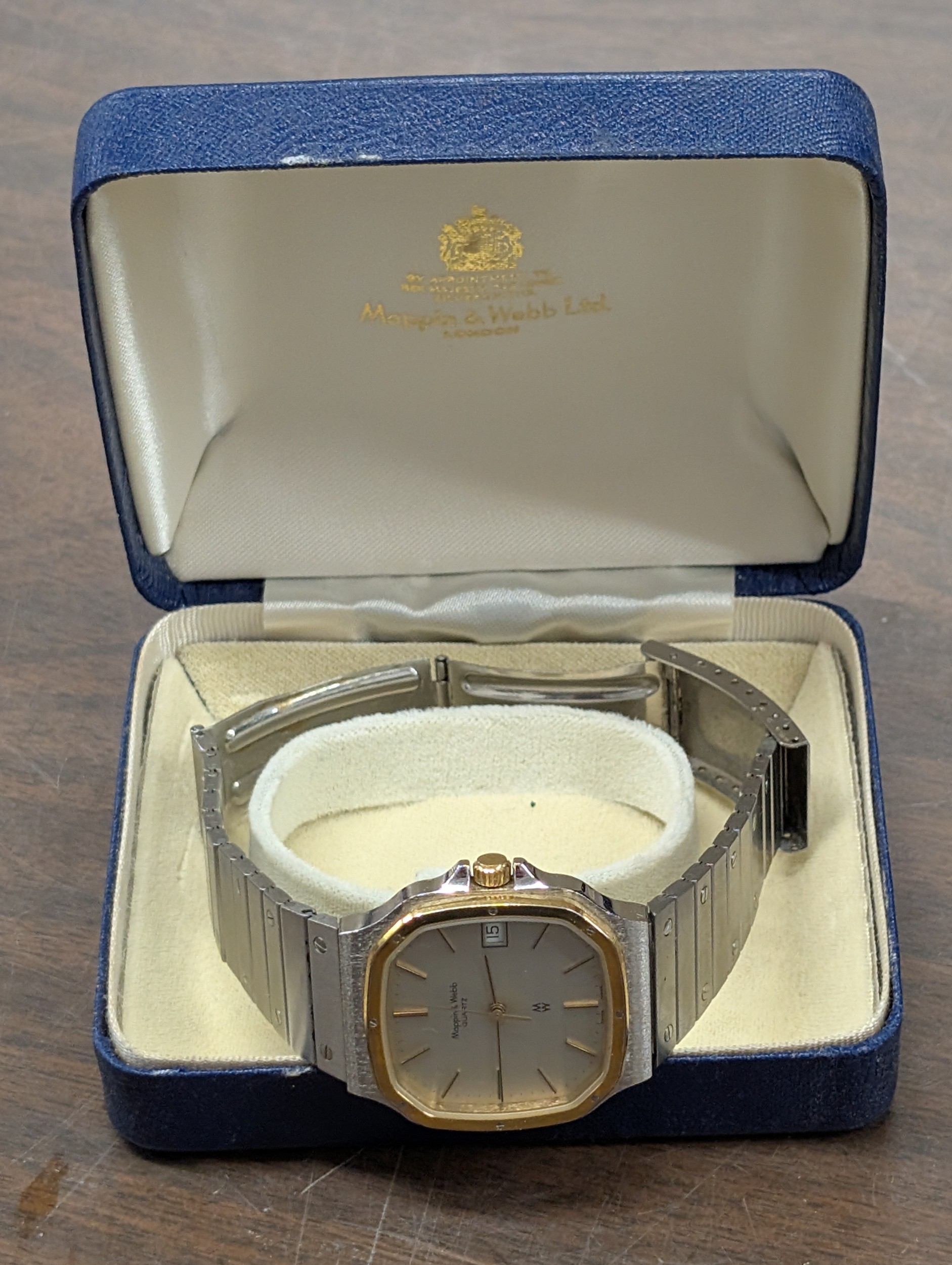 Mappin & Webb Gents Octagonal Two-Tone Quartz Calendar Wristwatch in Original Box, Currently Non-Working Possibly Needing New Battery