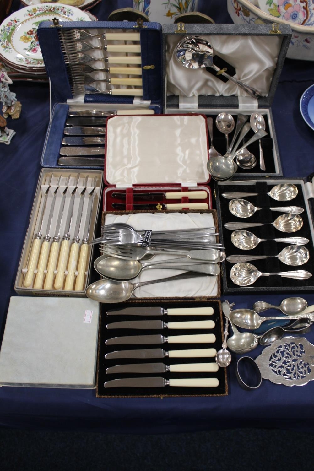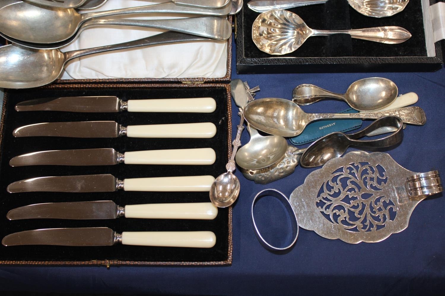 Silver-plate to include flatware, spoons, a christening spoon, etc.