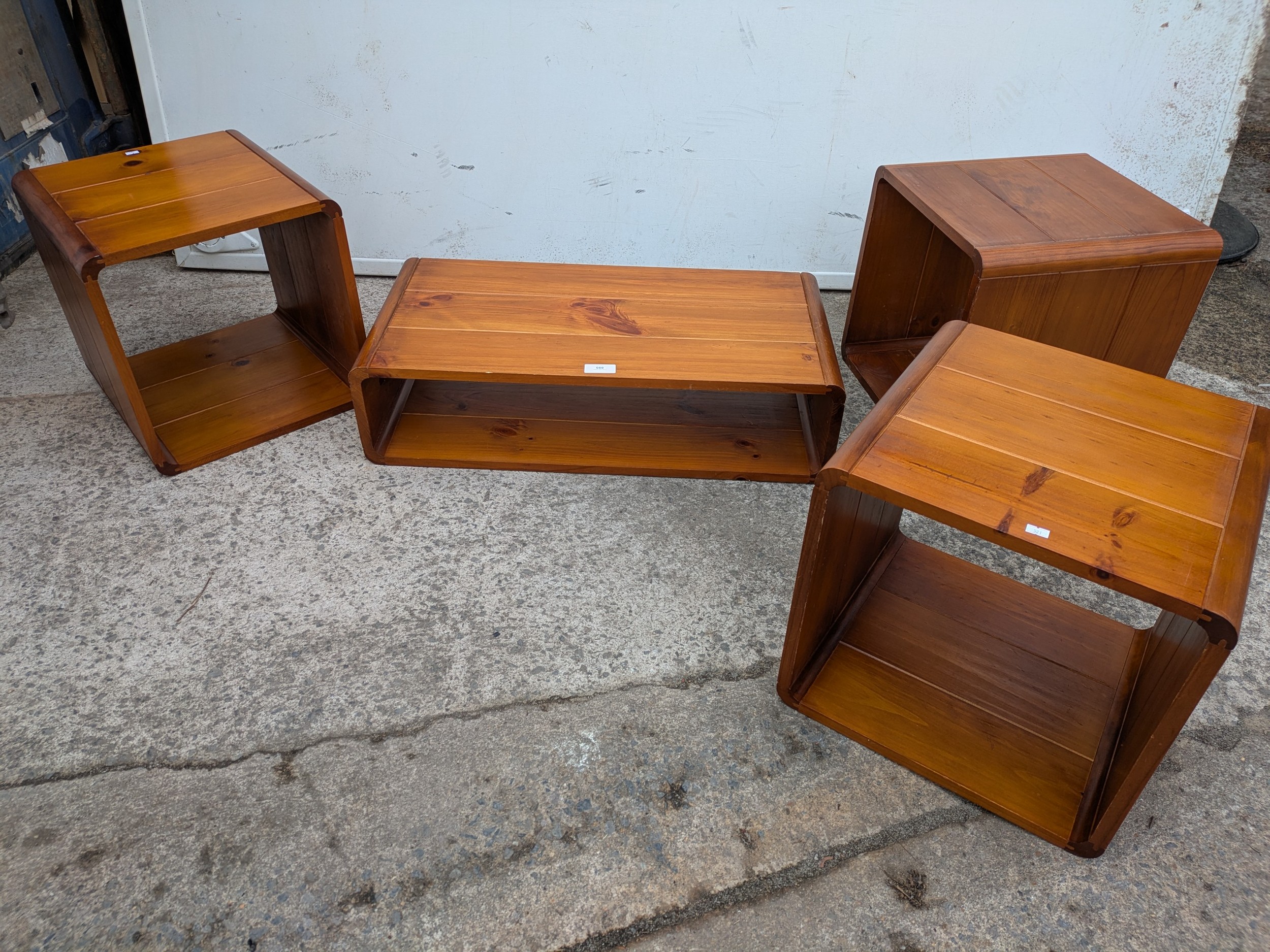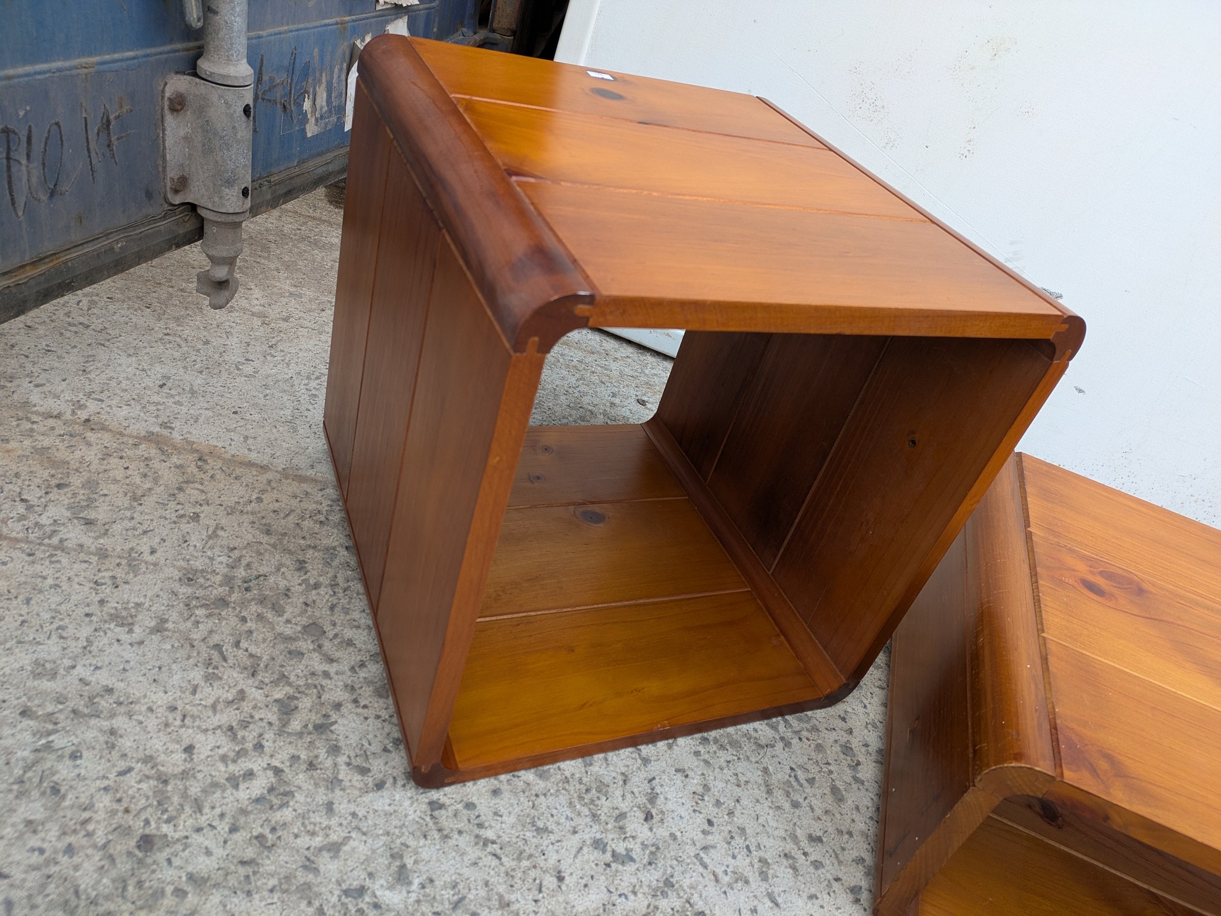 A quantity of retro pine side tables
