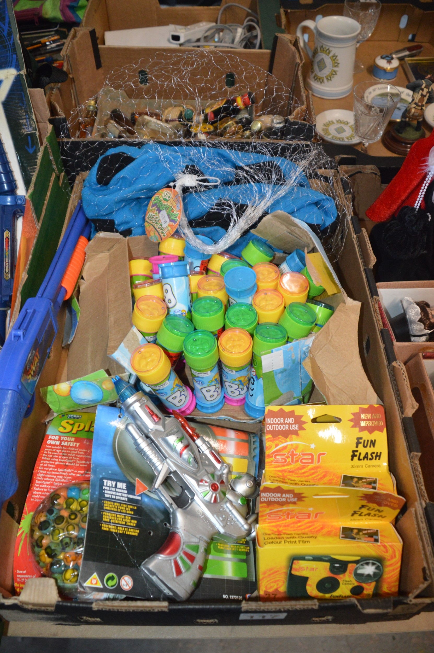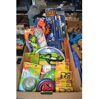 box of assorted new childrens toys & cameras