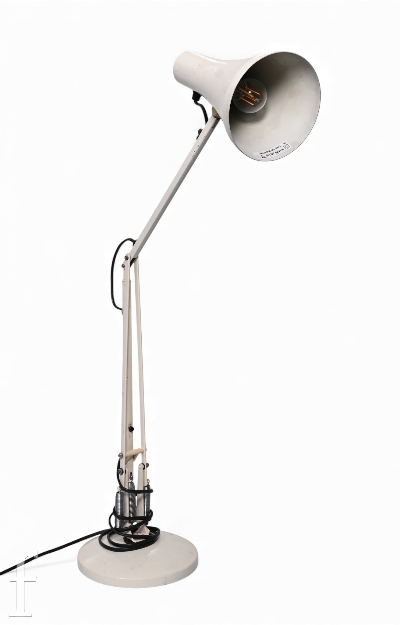 A model 90 Anglepoise lamp by Herbert Terry & Sons Ltd, Redditch, in a cream painted finish, with conical shaped shade and circular base, slight damage.