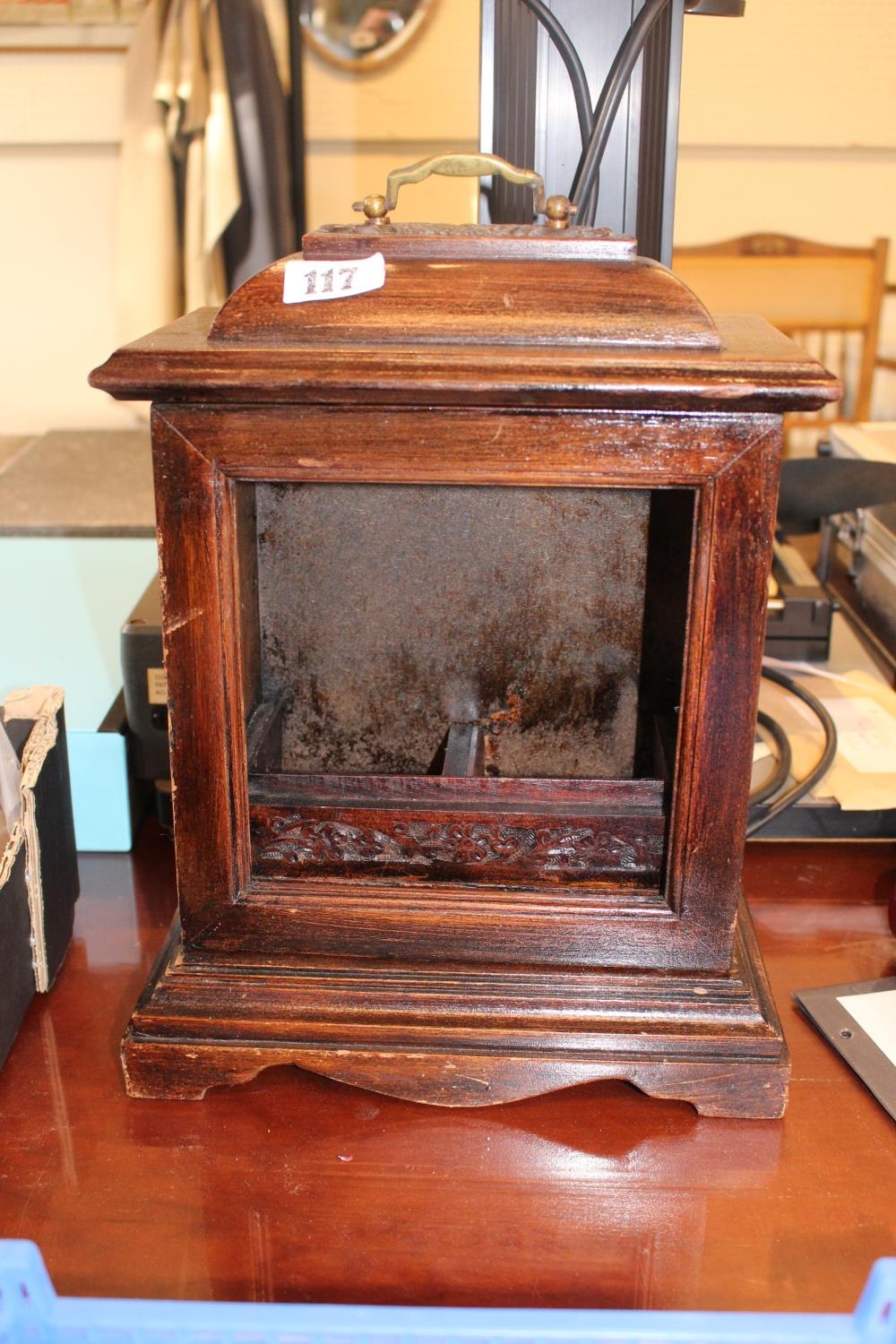 20thC Wooden clock case type smokers cabinet with open front and brass handle