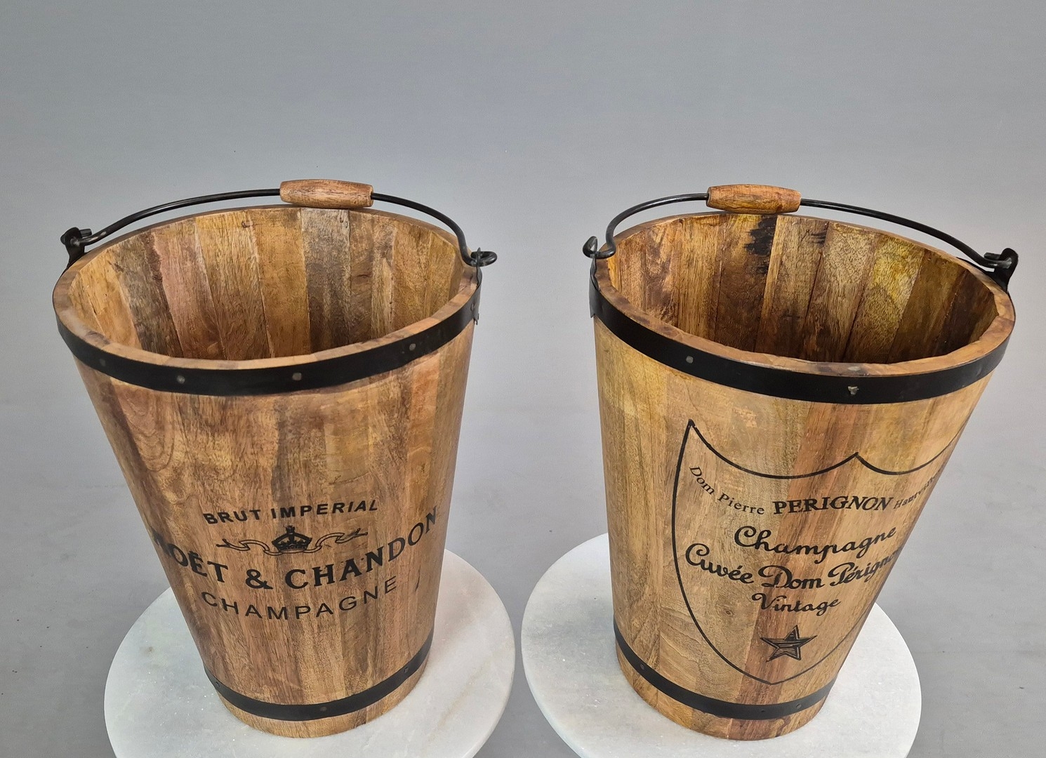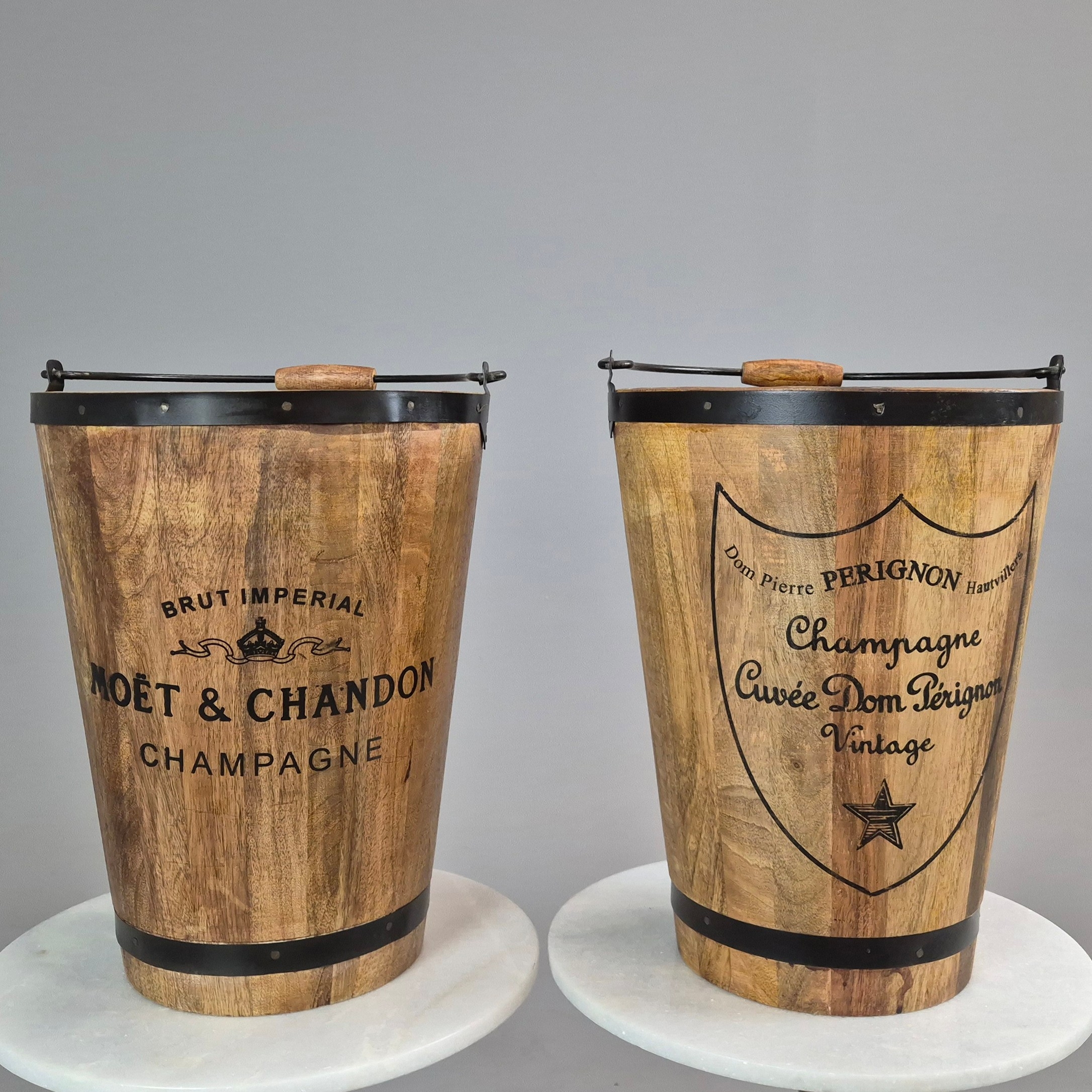 PAIR OF WOODEN CHAMPAGNE BUCKETS. 42cm H x 31cm W.