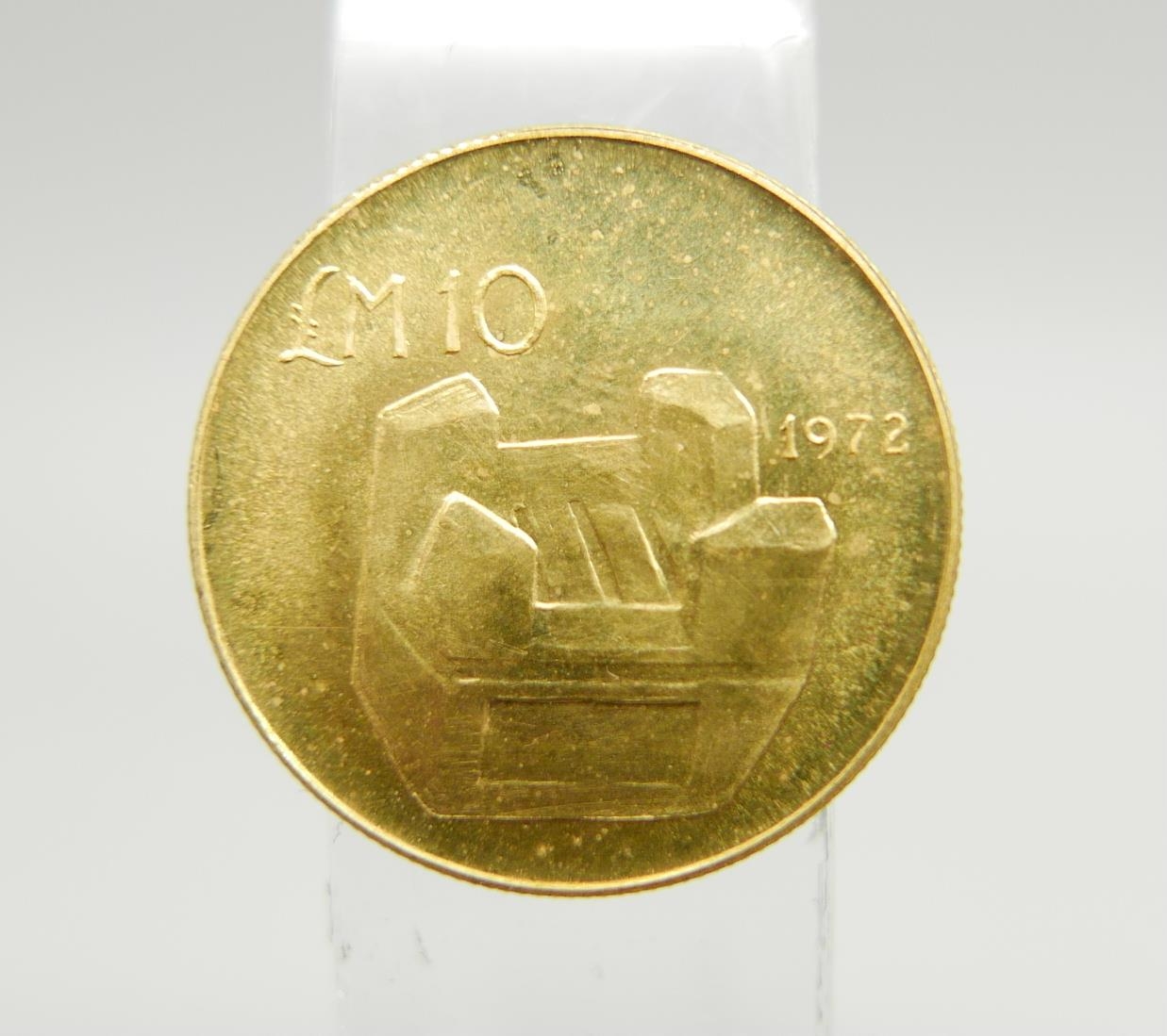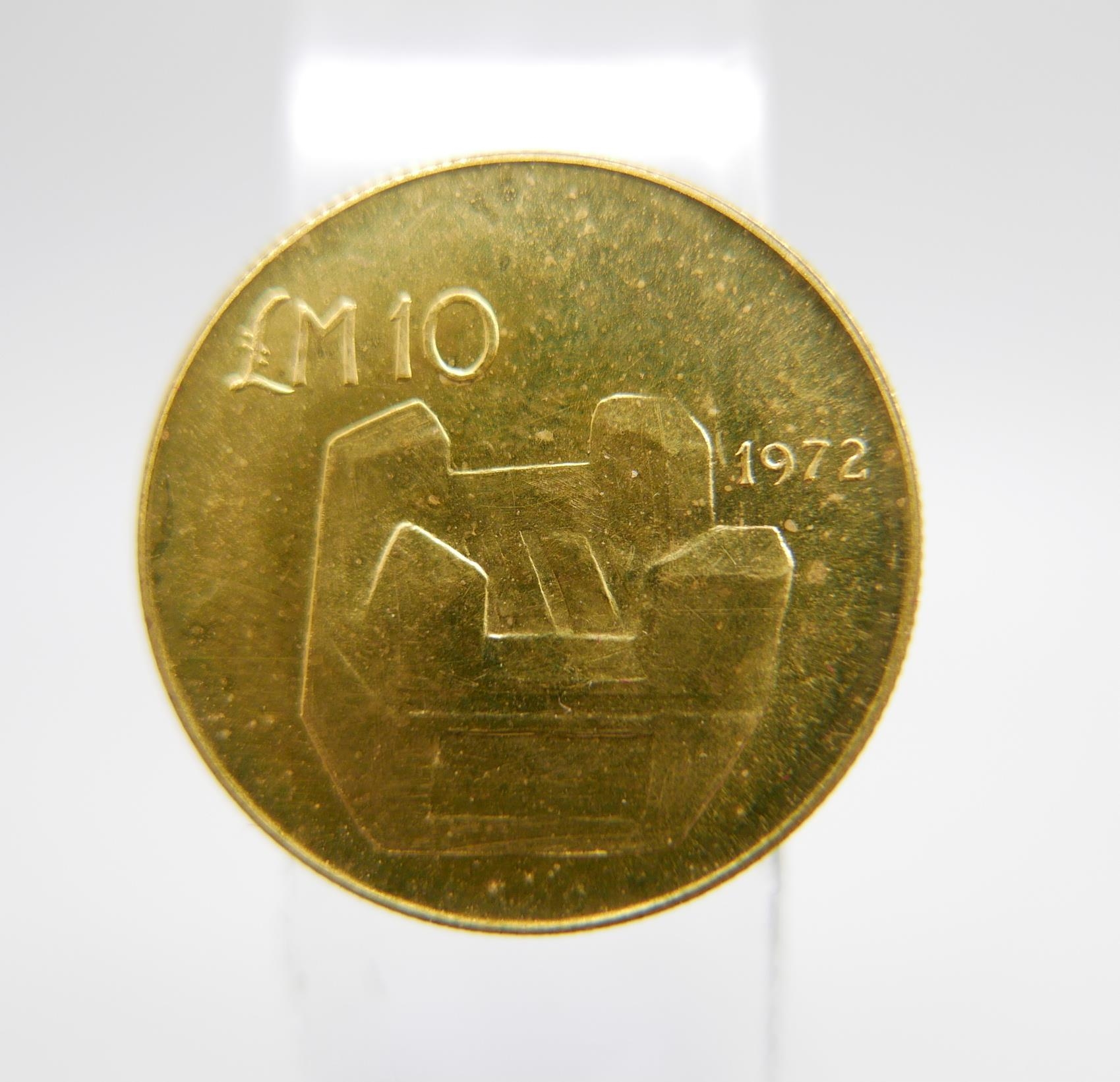 A 1972 Malta 10 Lira gold coin, 6g