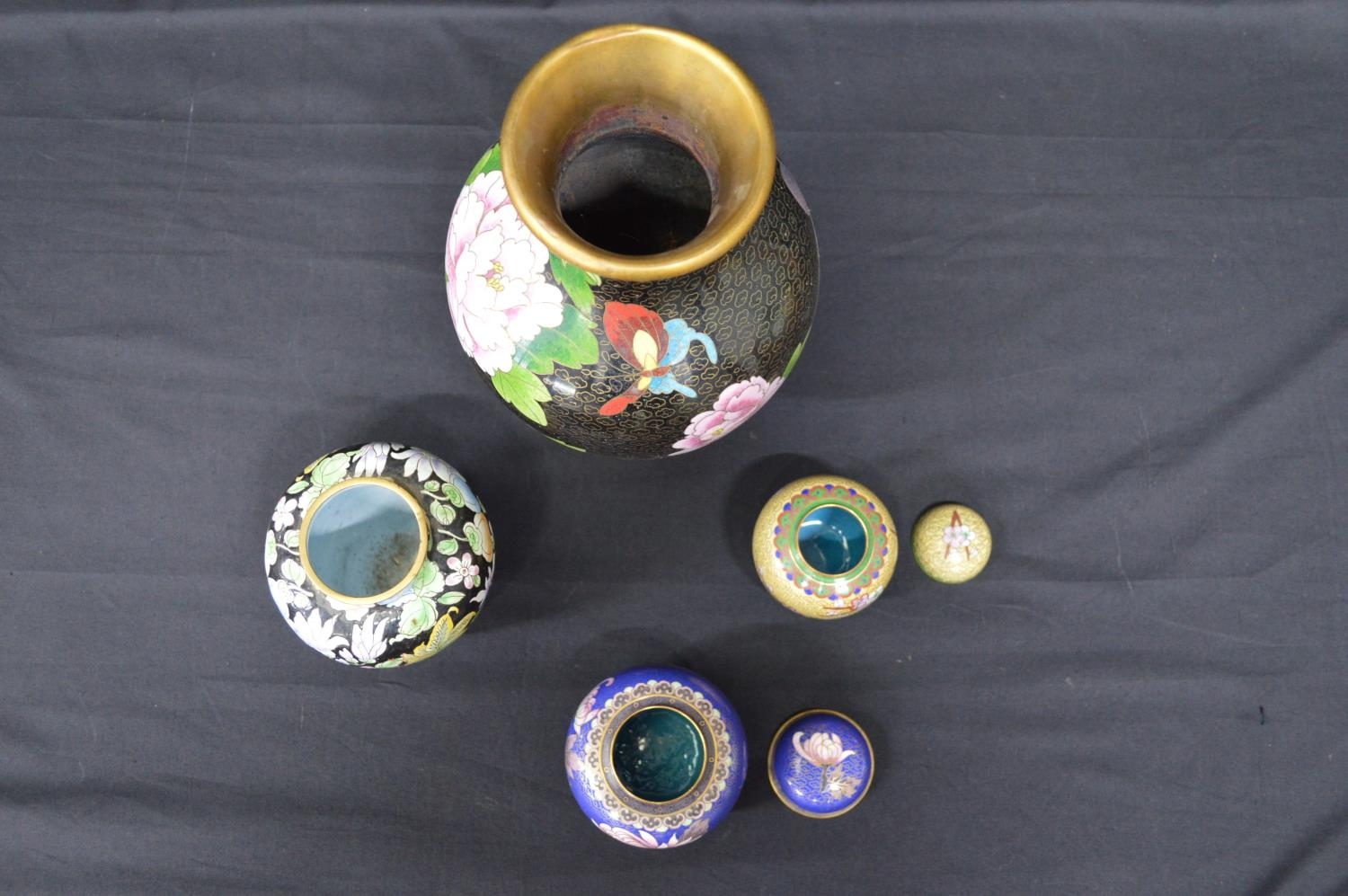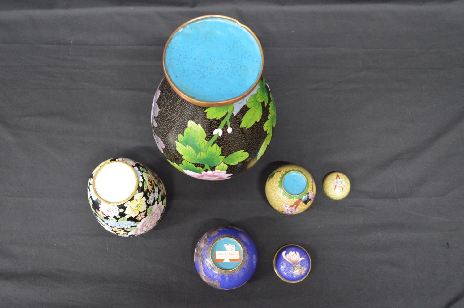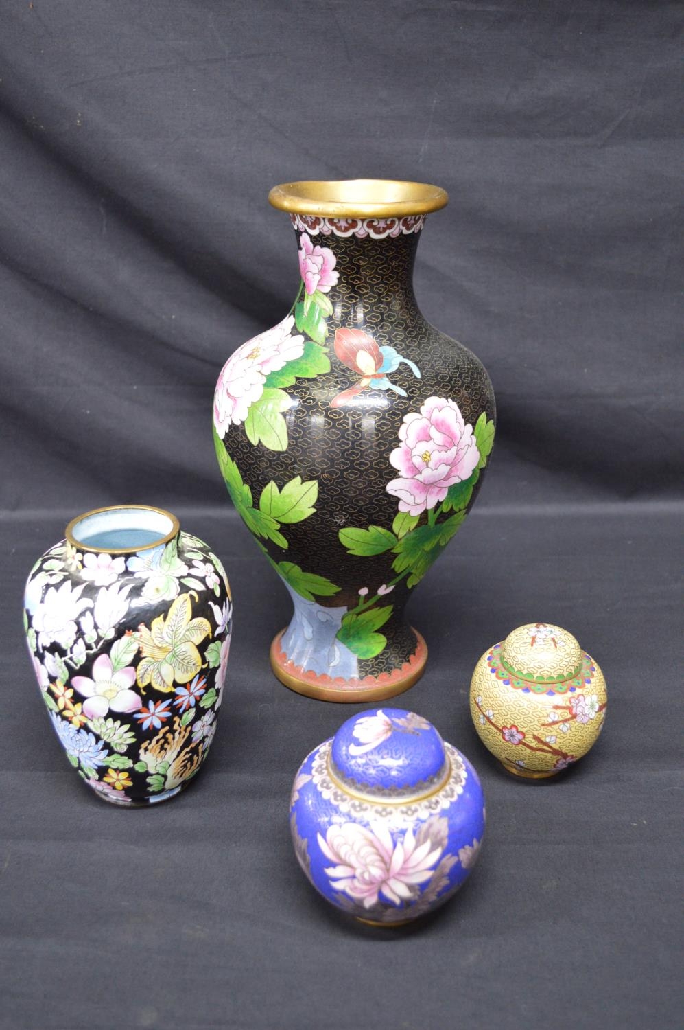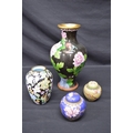 Floral decorated Cloisonne vase - 31cm tall together with two ginger jars and an enamelled vase