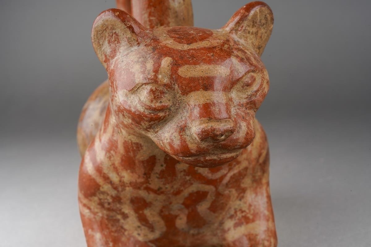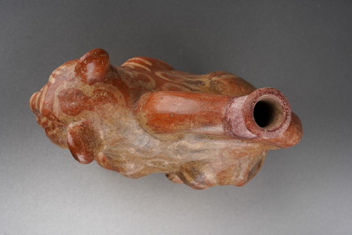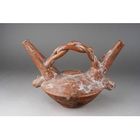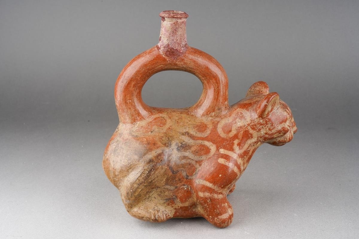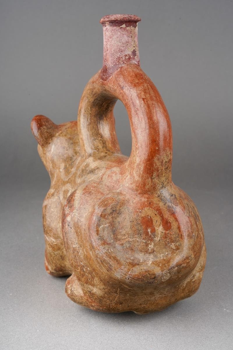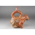 Provenance: Purchased in Lima Peru and the surrounding areas during 1959-1960 by two marine biologist researchers. Moche culture, Peruvian pottery stirrup spouted vessel, approx. 17 cm tall