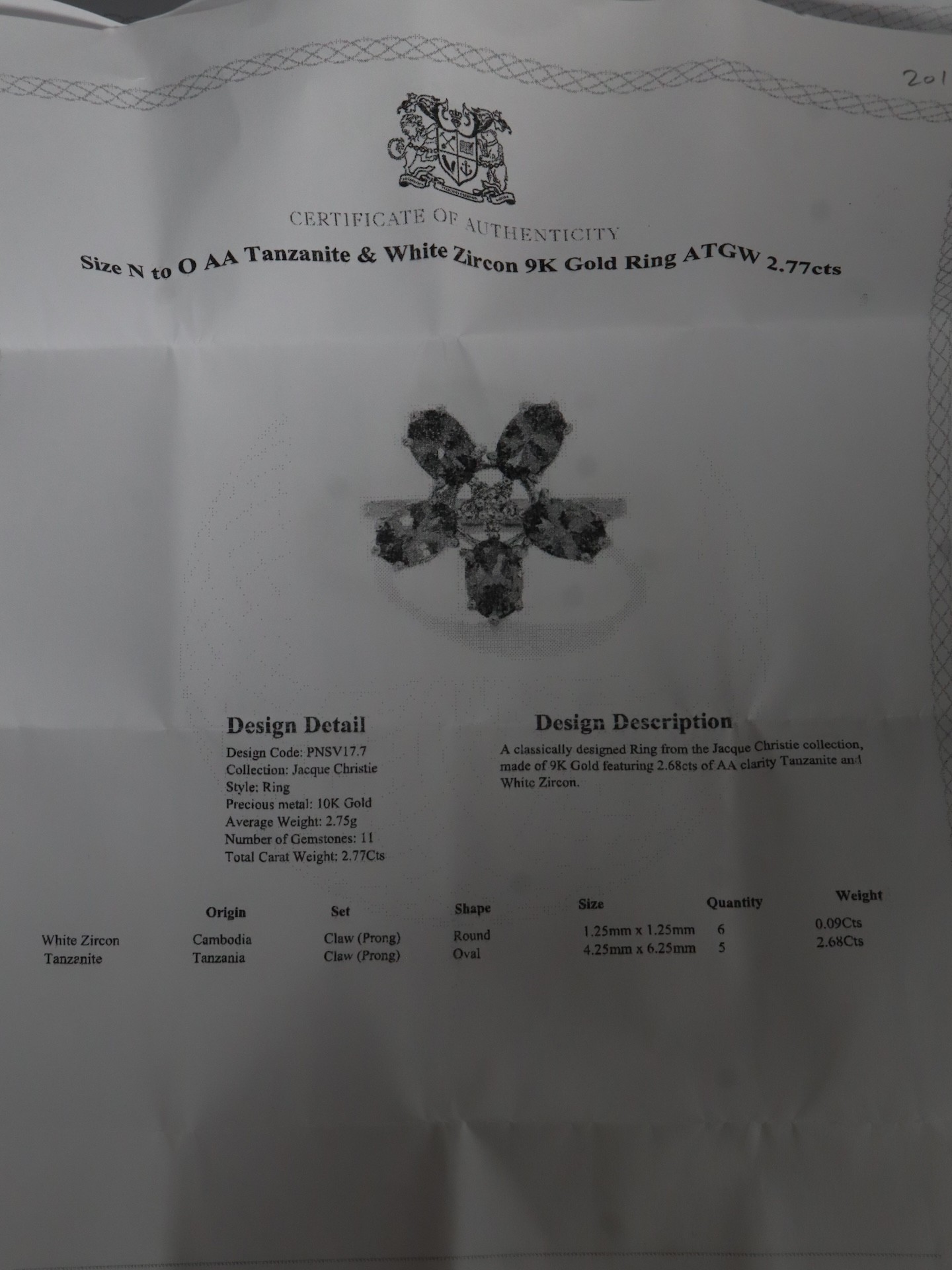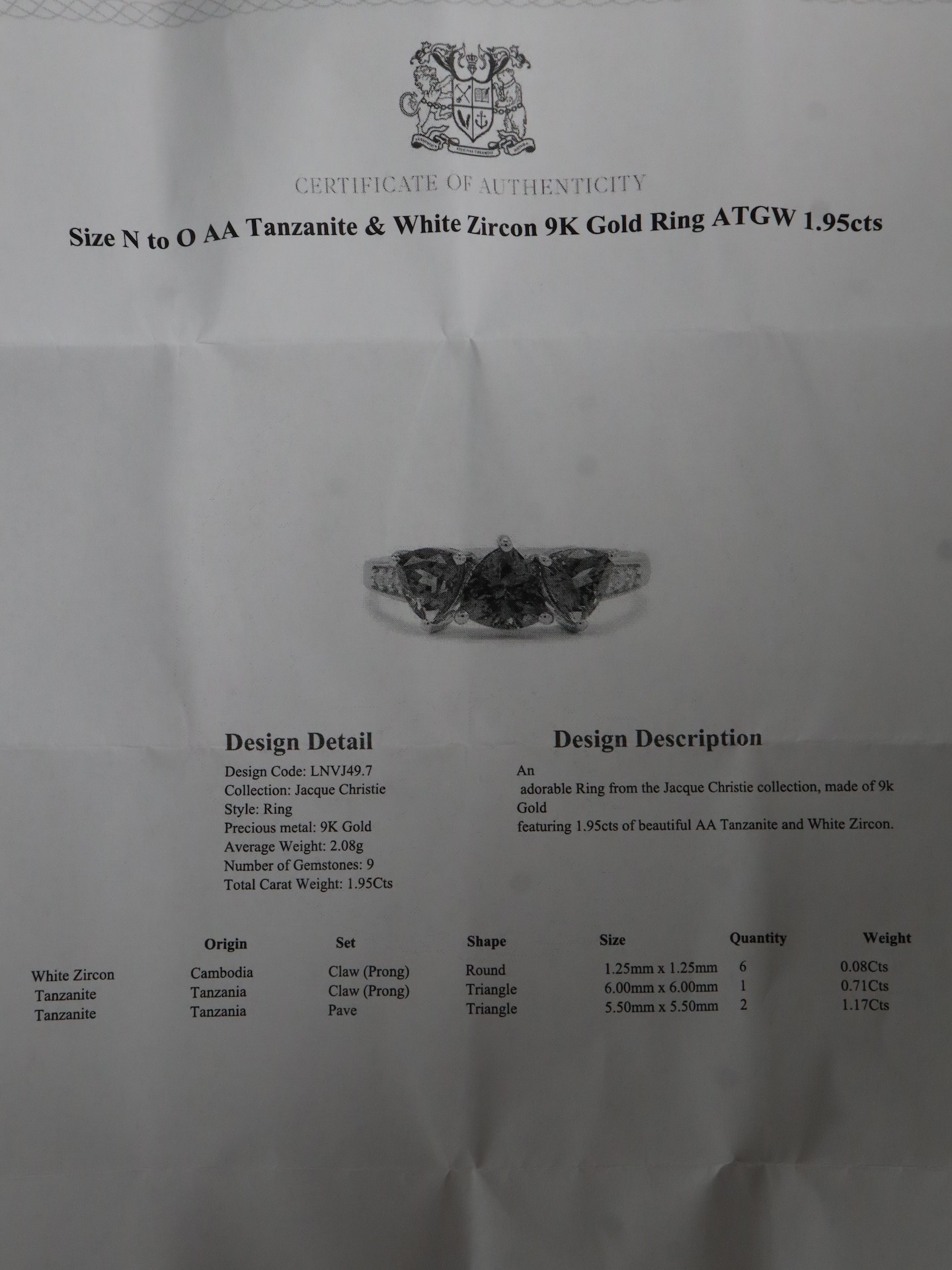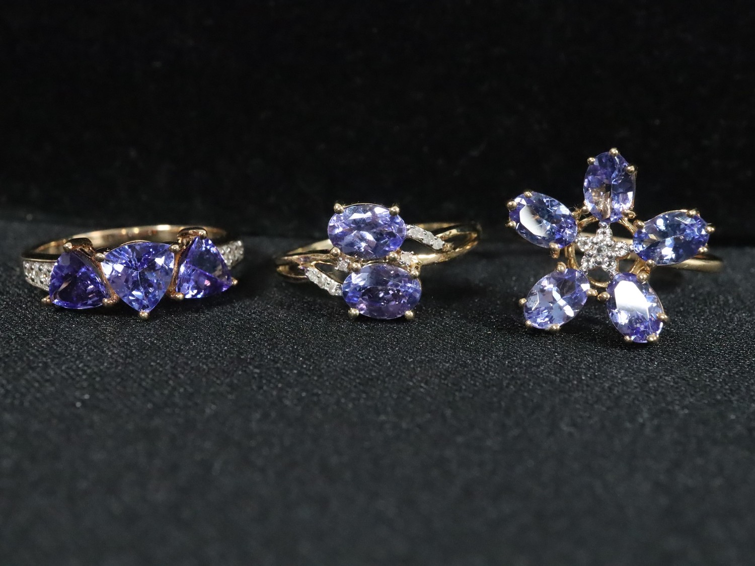 AA Tanzanite & Diamond 9K Gold Ring 1.28cts Size N to O, AA Tanzanite & White Zircon 9K Gold Ring 2.77cts Size N to O, AA Tanzanite & White Zircon 9K Gold Ring ATGW 1.95cts Size N to O -7.1g