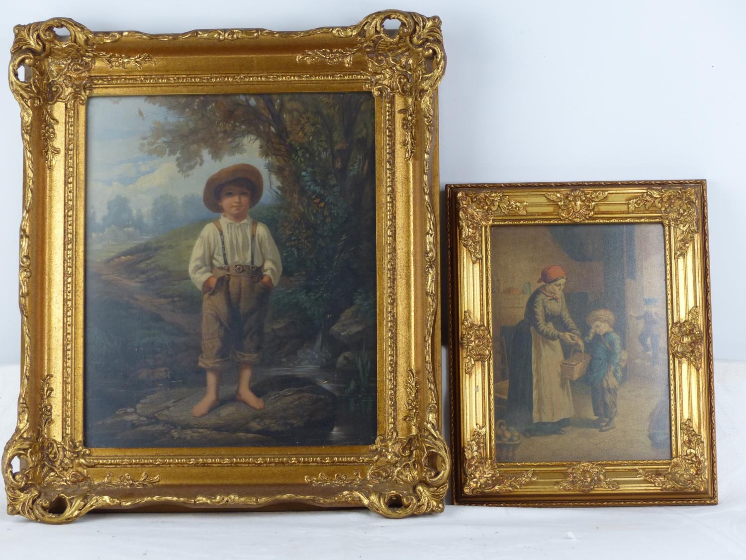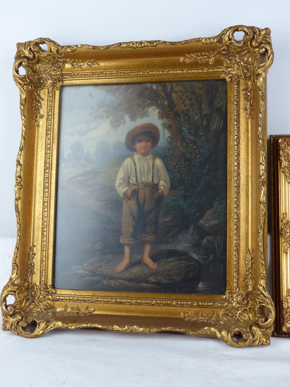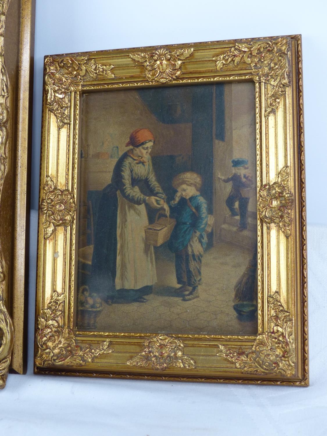 A pair of antique style ornate gilt framed pictures.