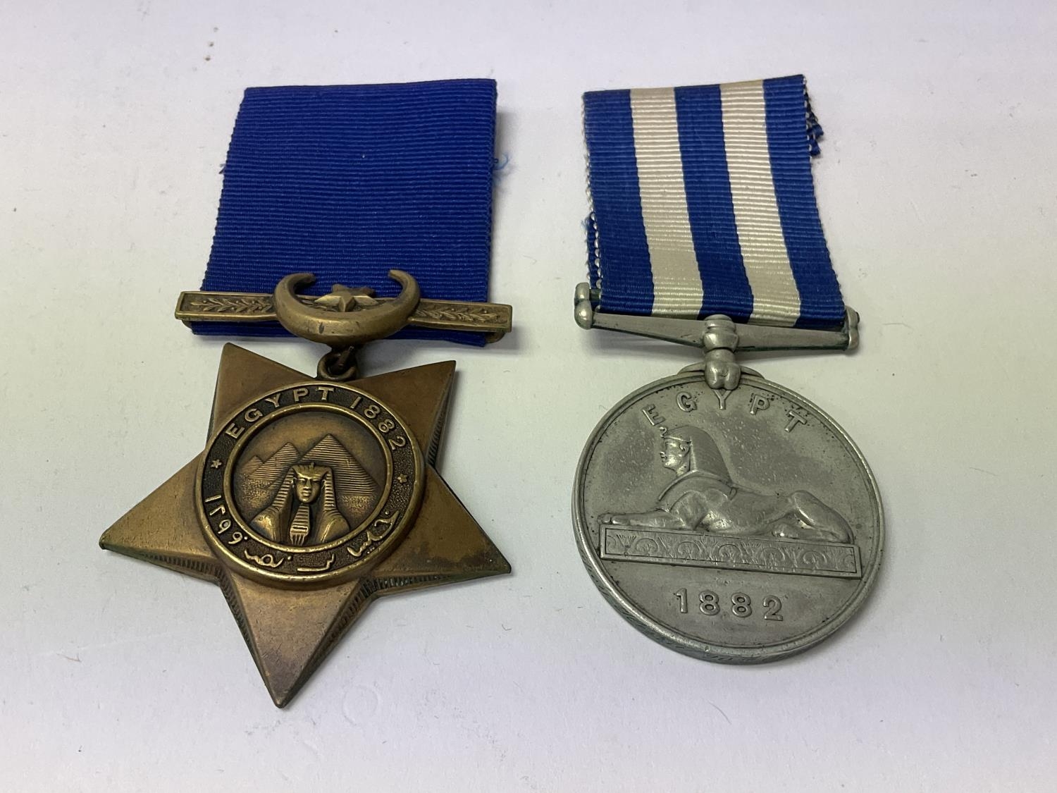 Egypt 1882-1889 and Khedive star medal pair awarded to Sepoy Heeba 20th Punjab infantry.