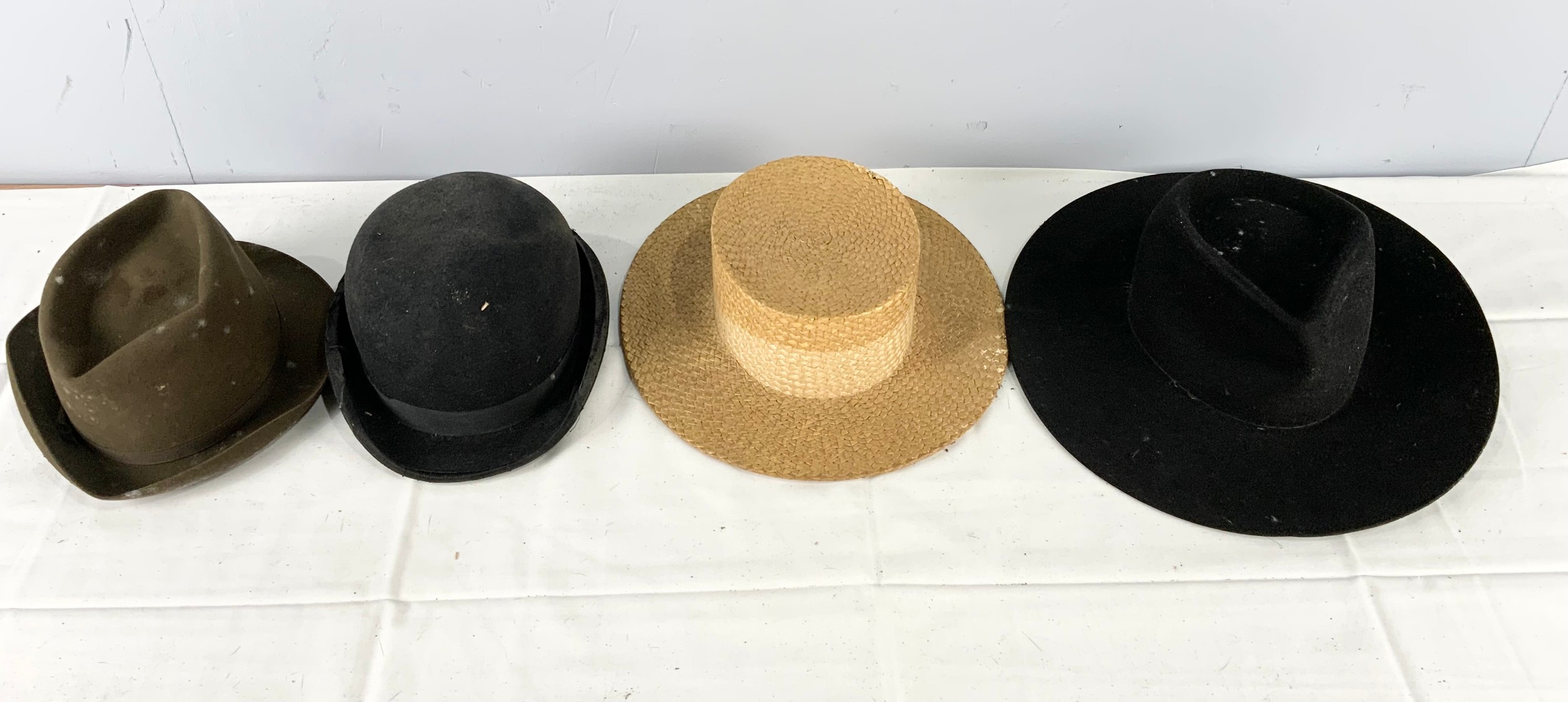 LOCK & CO BOWLER HAT & TRILBY, A RIDGMOUNT STRAW HAT & GAUCHO IMPERMEAVEL HAT