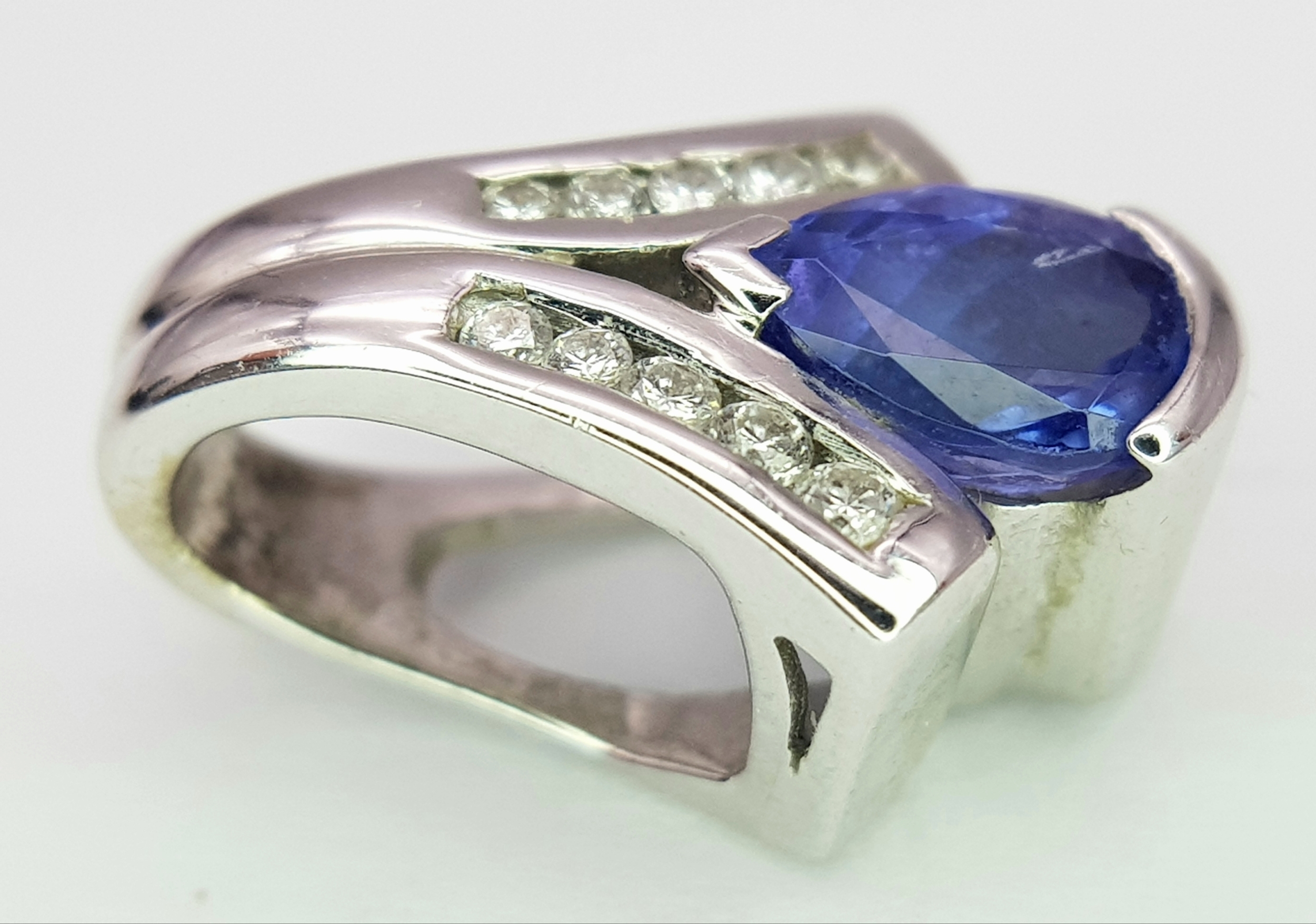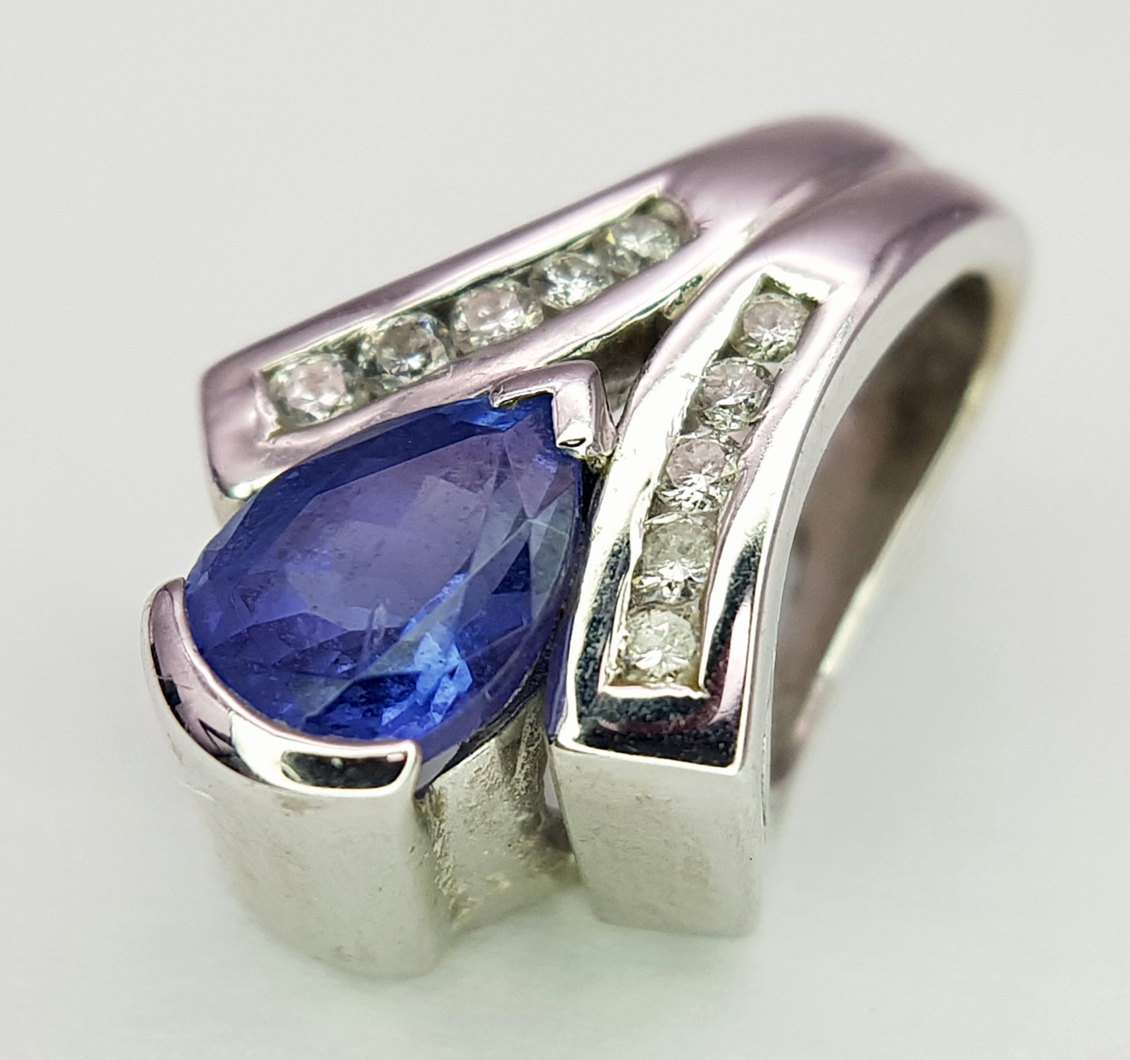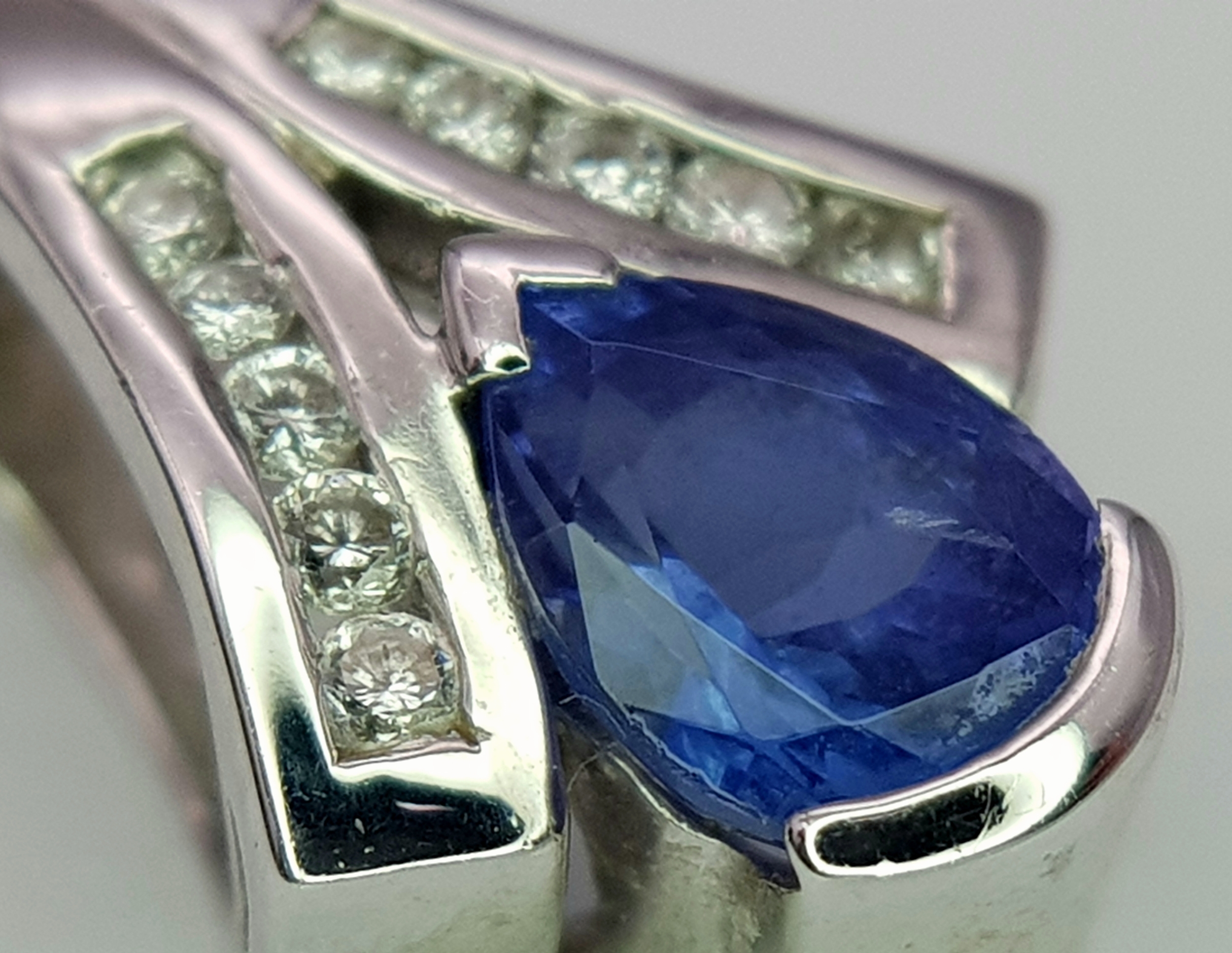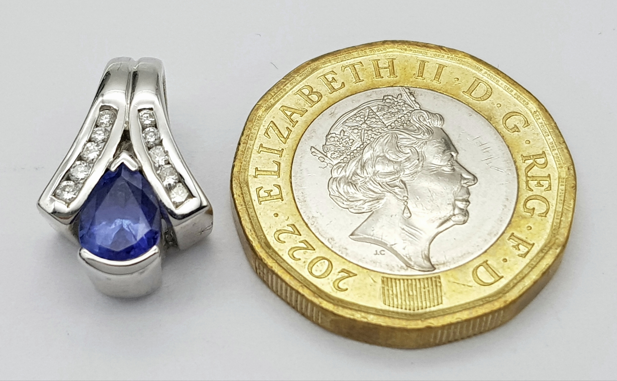 Elegant 18 CARAT WHITE GOLD, ‘SAPPHIRE and DIAMOND’ PENDANT. 3.47 Grams. Approx 1.8 cm. Please see pictures.