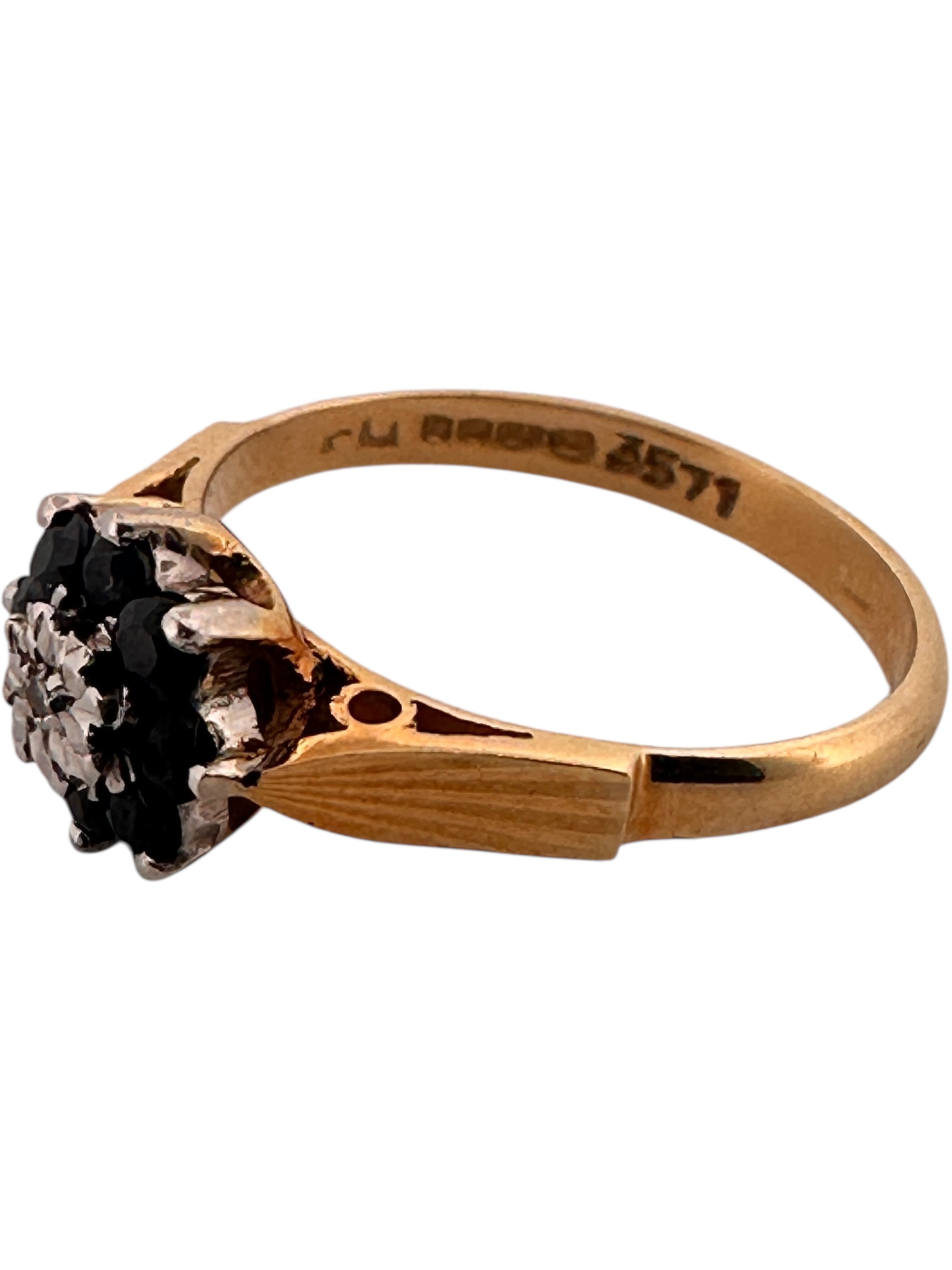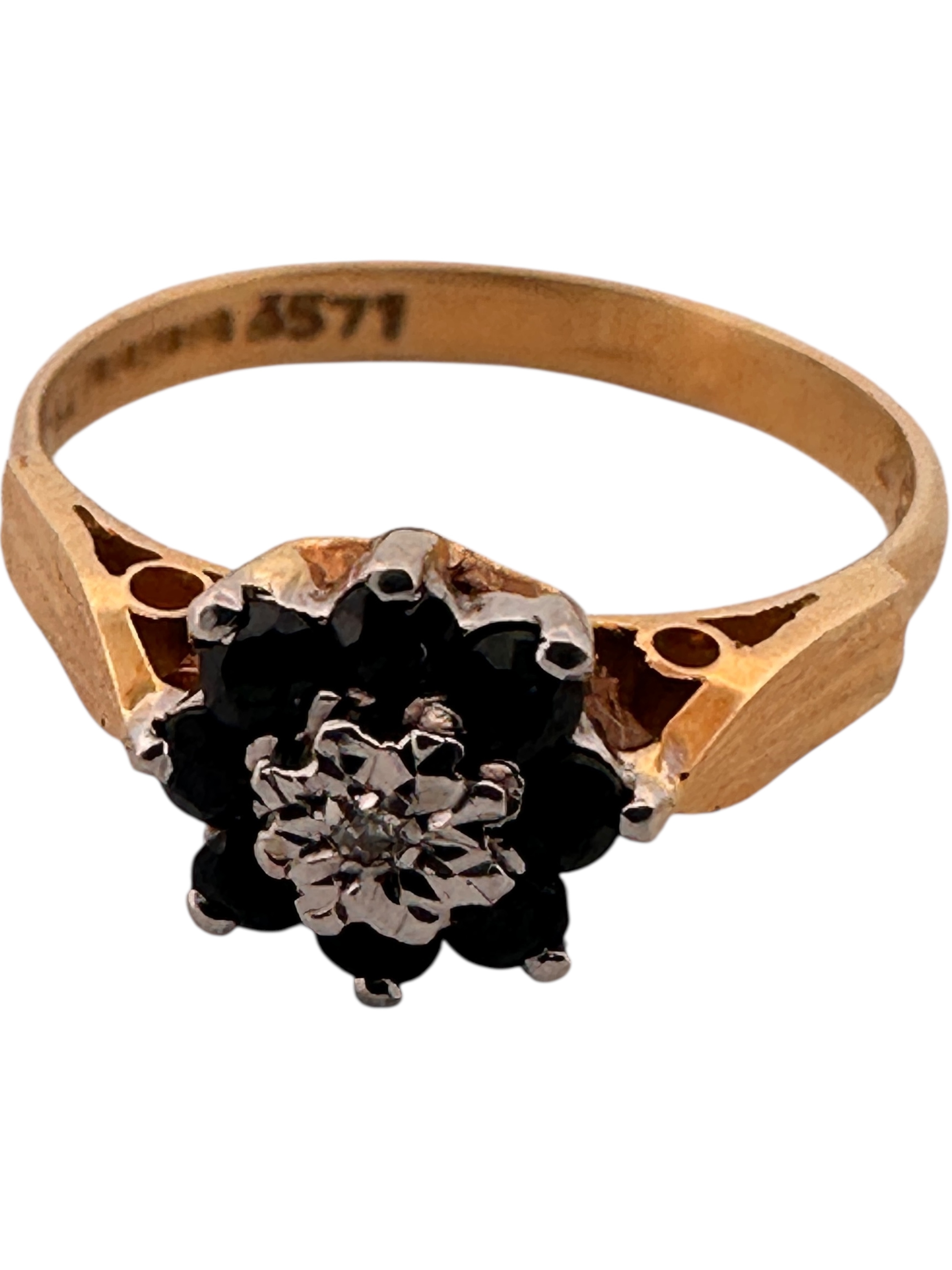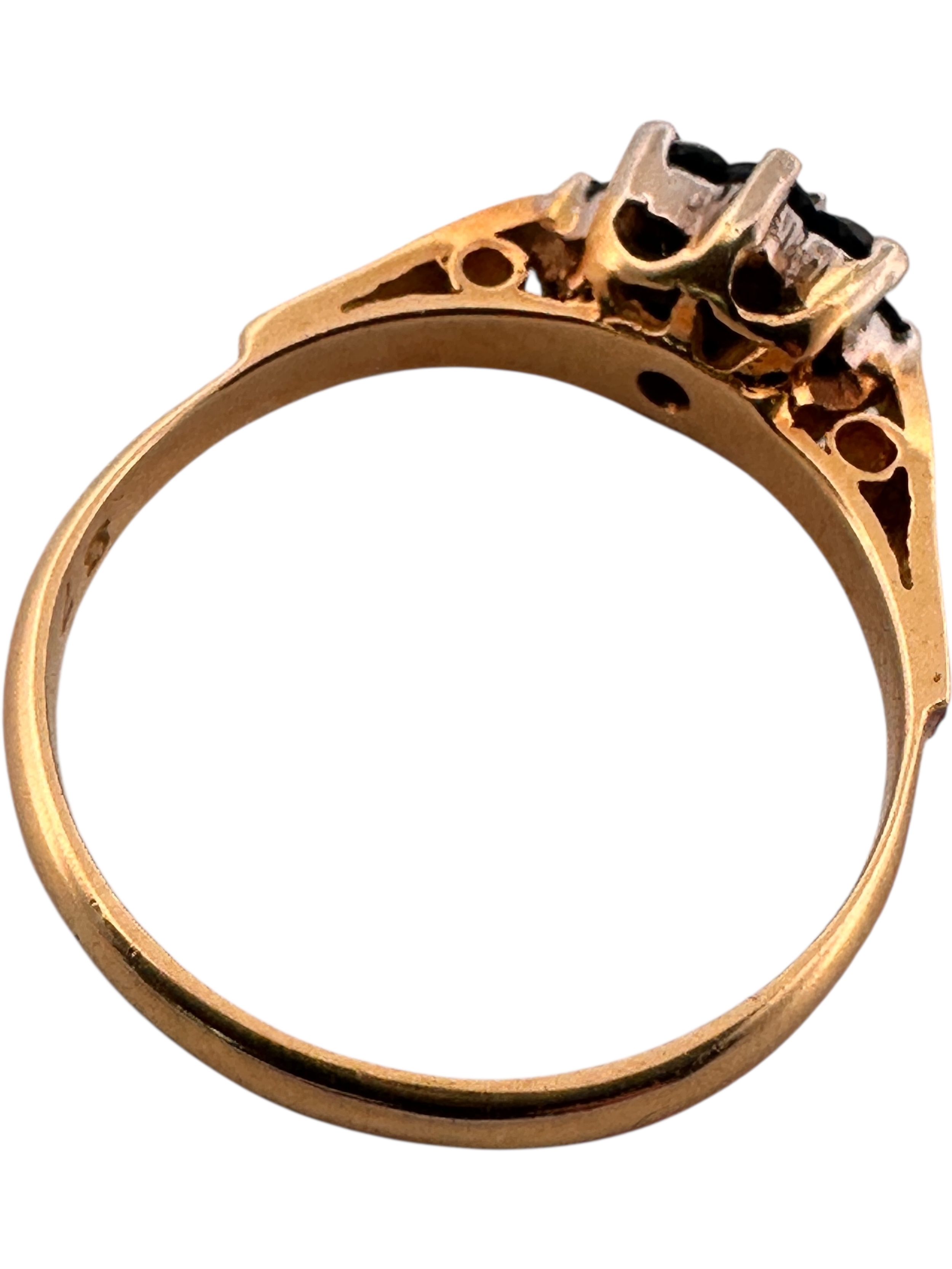 Eighteen Carat Gold Ring set with Diamond & Sapphires, Size L. 2.81g