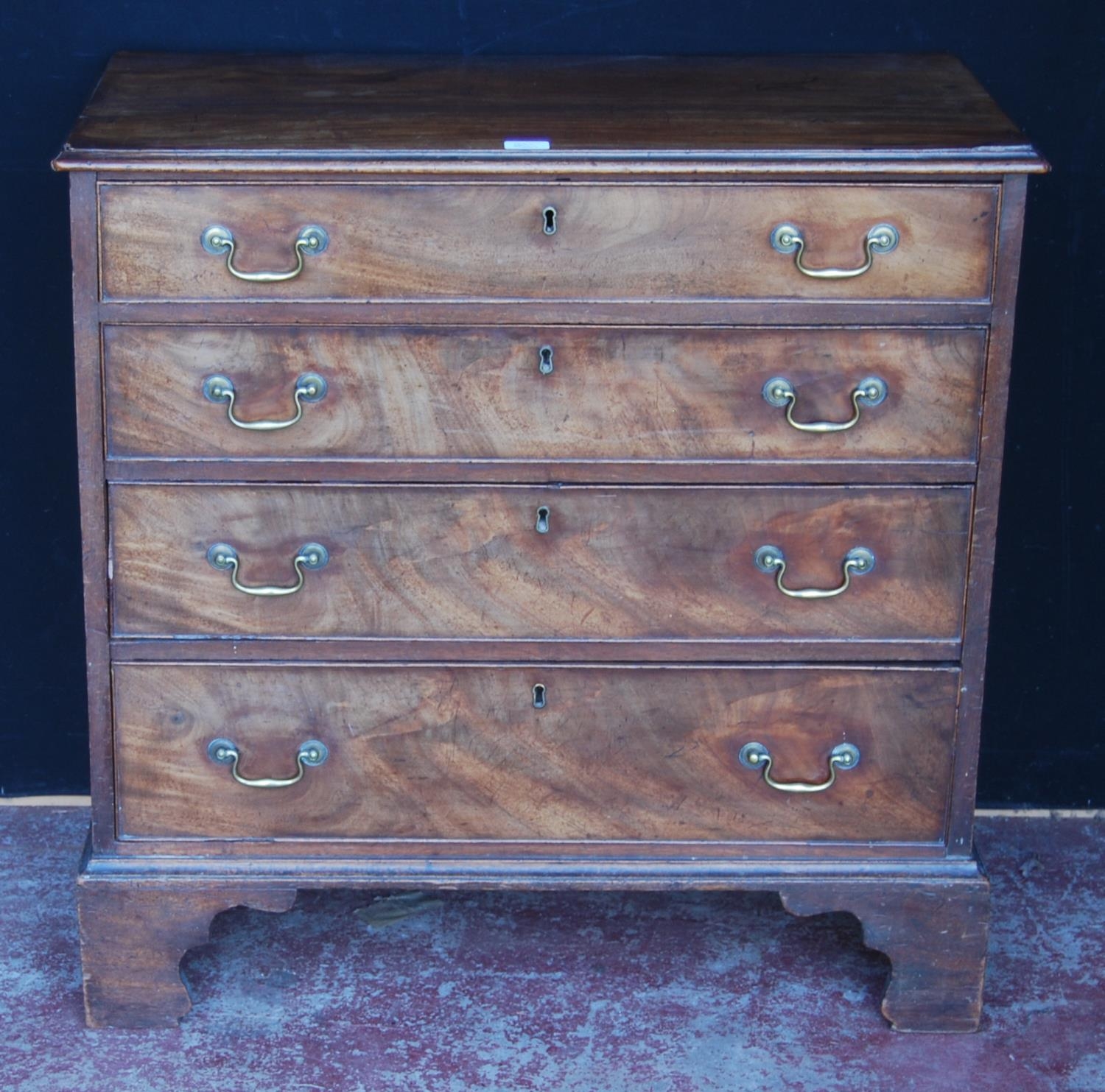 George III mahogany bachelor's chest of four graduated drawers, on bracket feet, 84cm high, 86cm wide and 48cm deep.