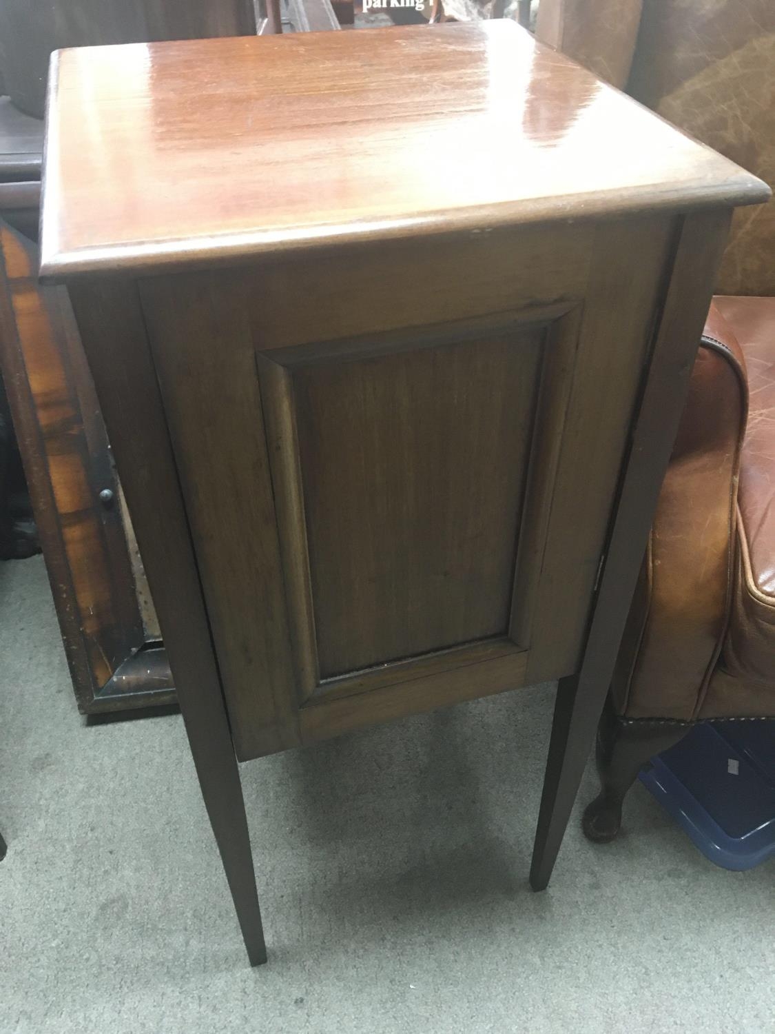 A mahogany pot cupboard with a single door on square tapering legs - NO RESERVE