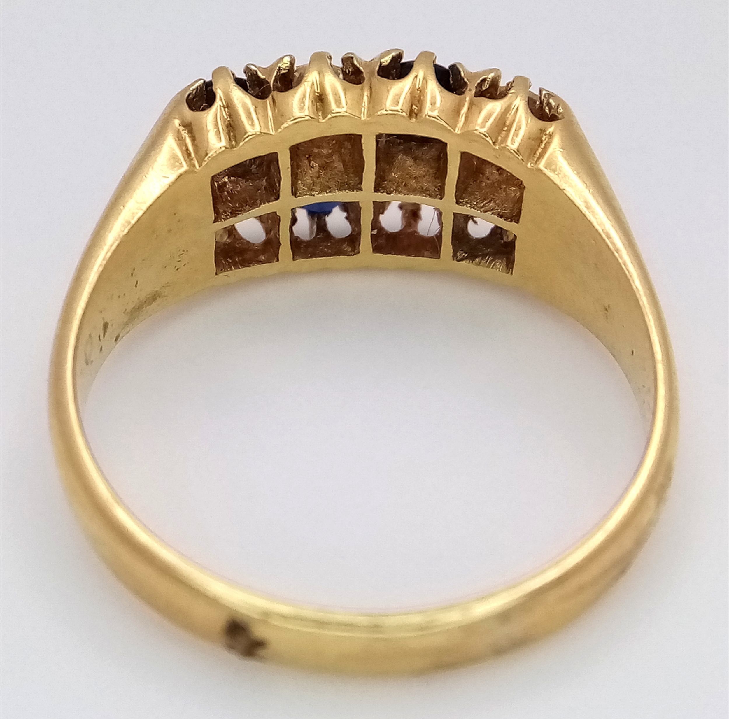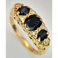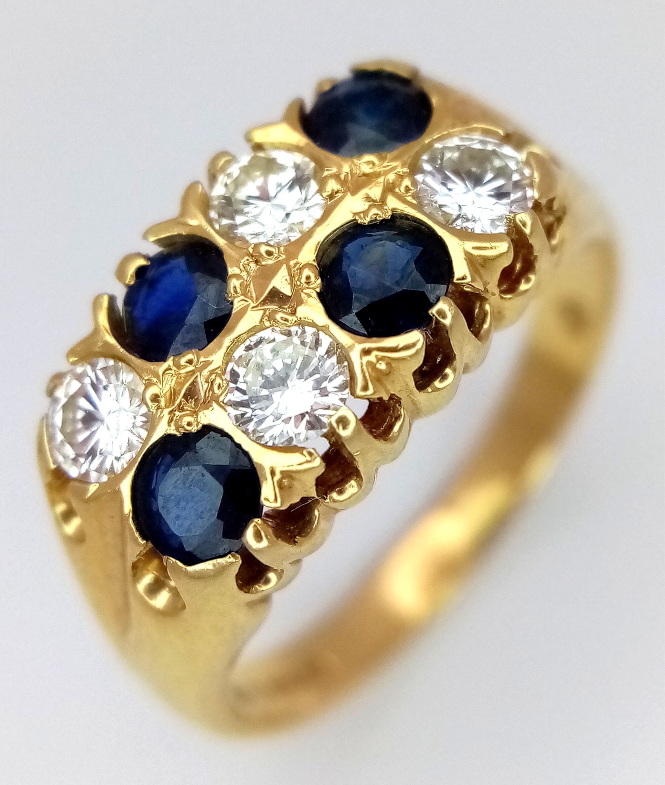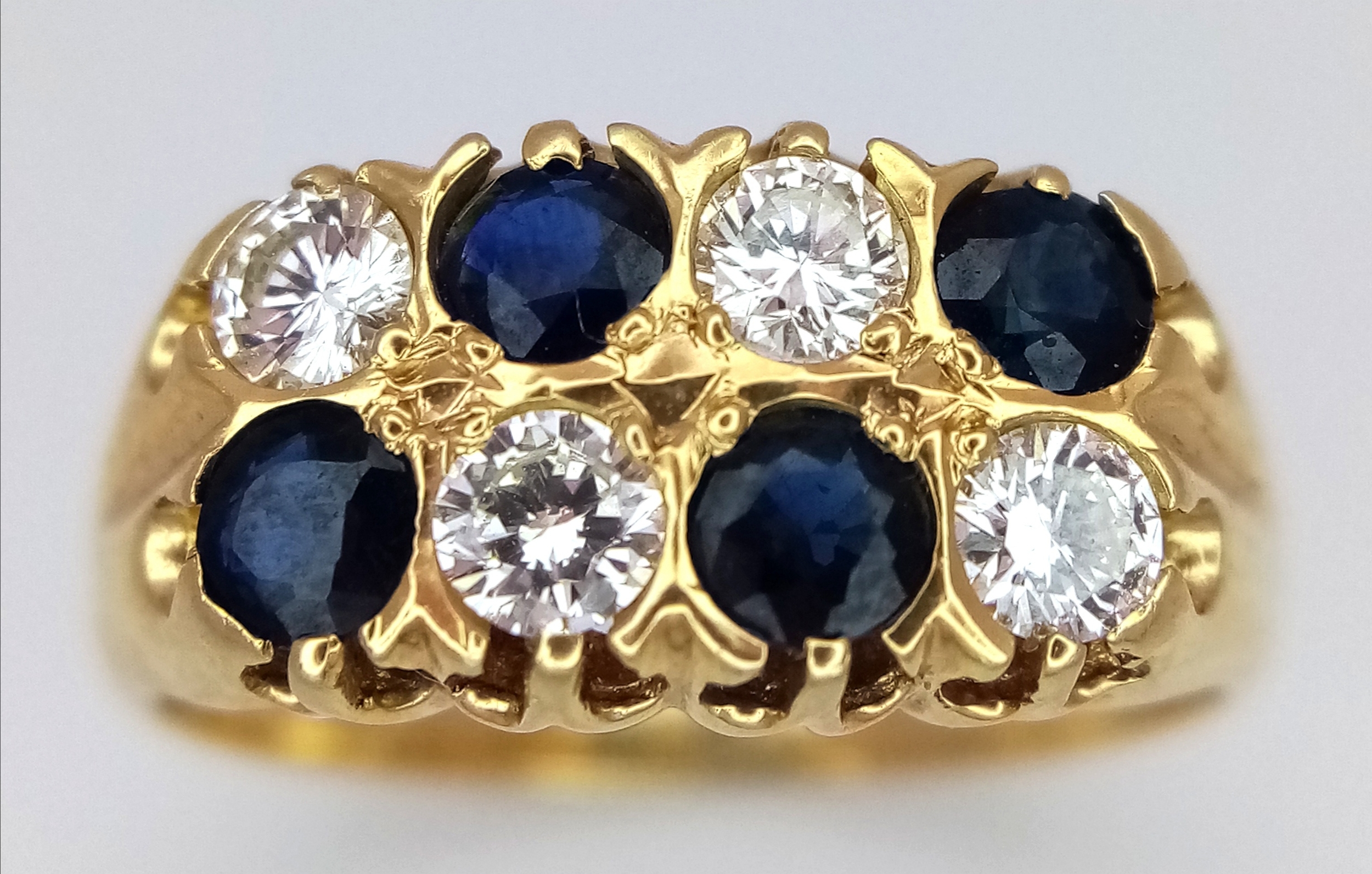 AN 18K GOLD SAPPHIRE AND DIAMOND RING. (APPROX 0.5CTW (1CT TOTAL) OF SAPPHIRES AND DIAMONDS. RING. SIZE P. 6.5G. NL 26/95005.