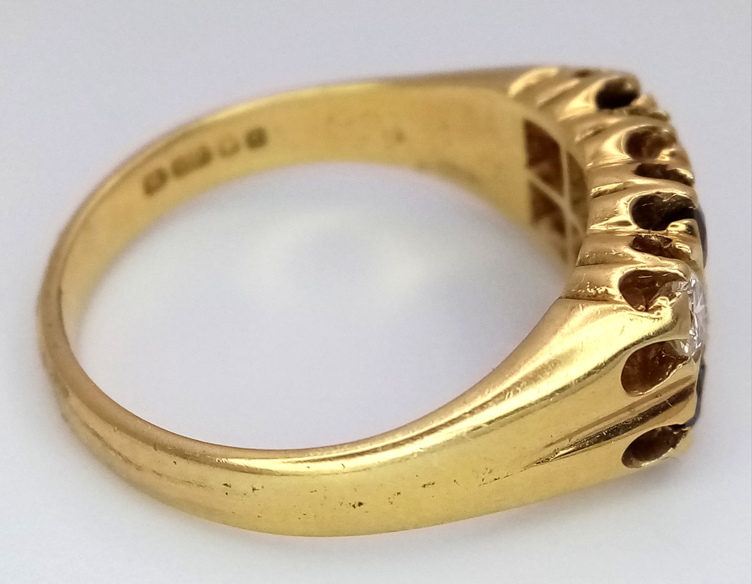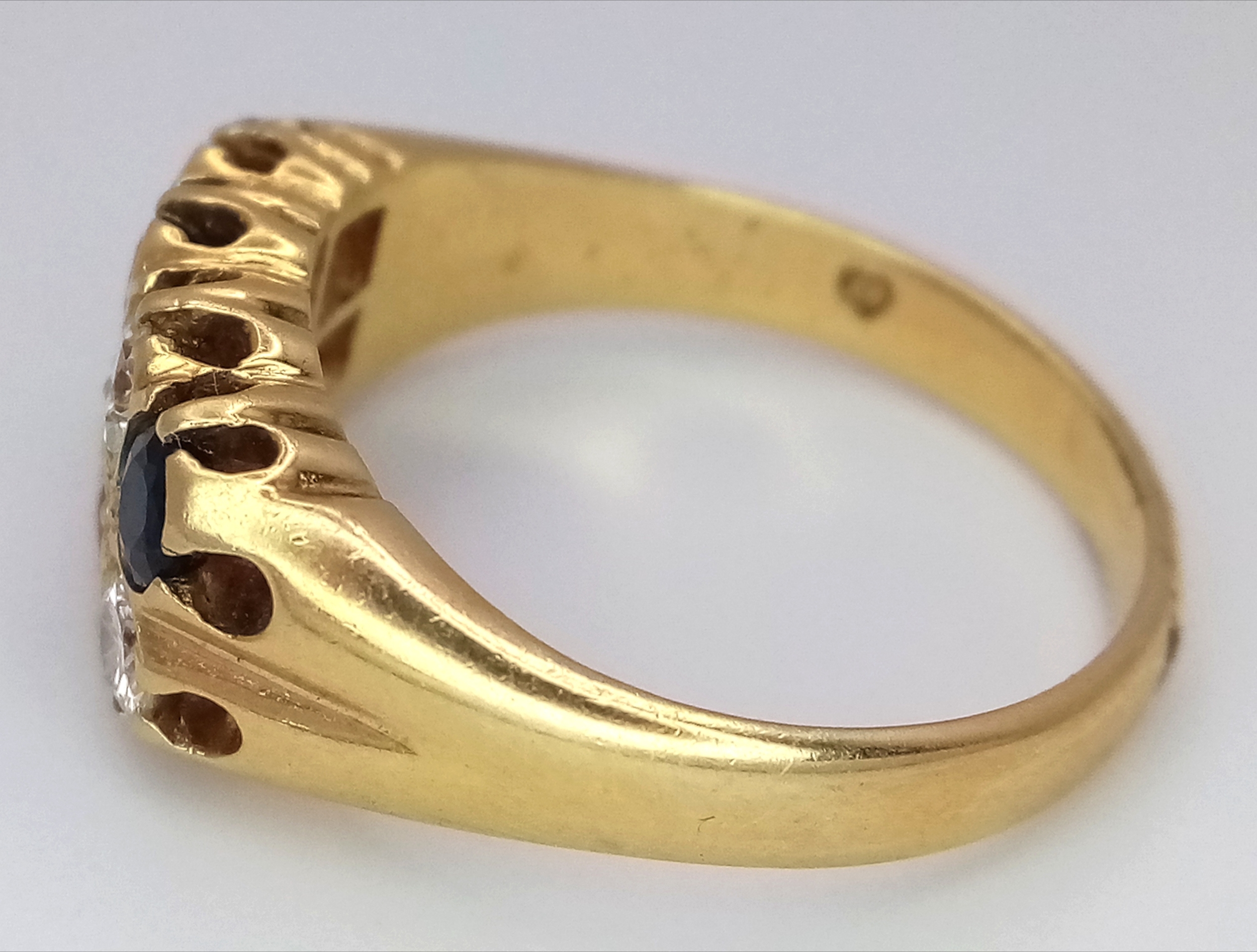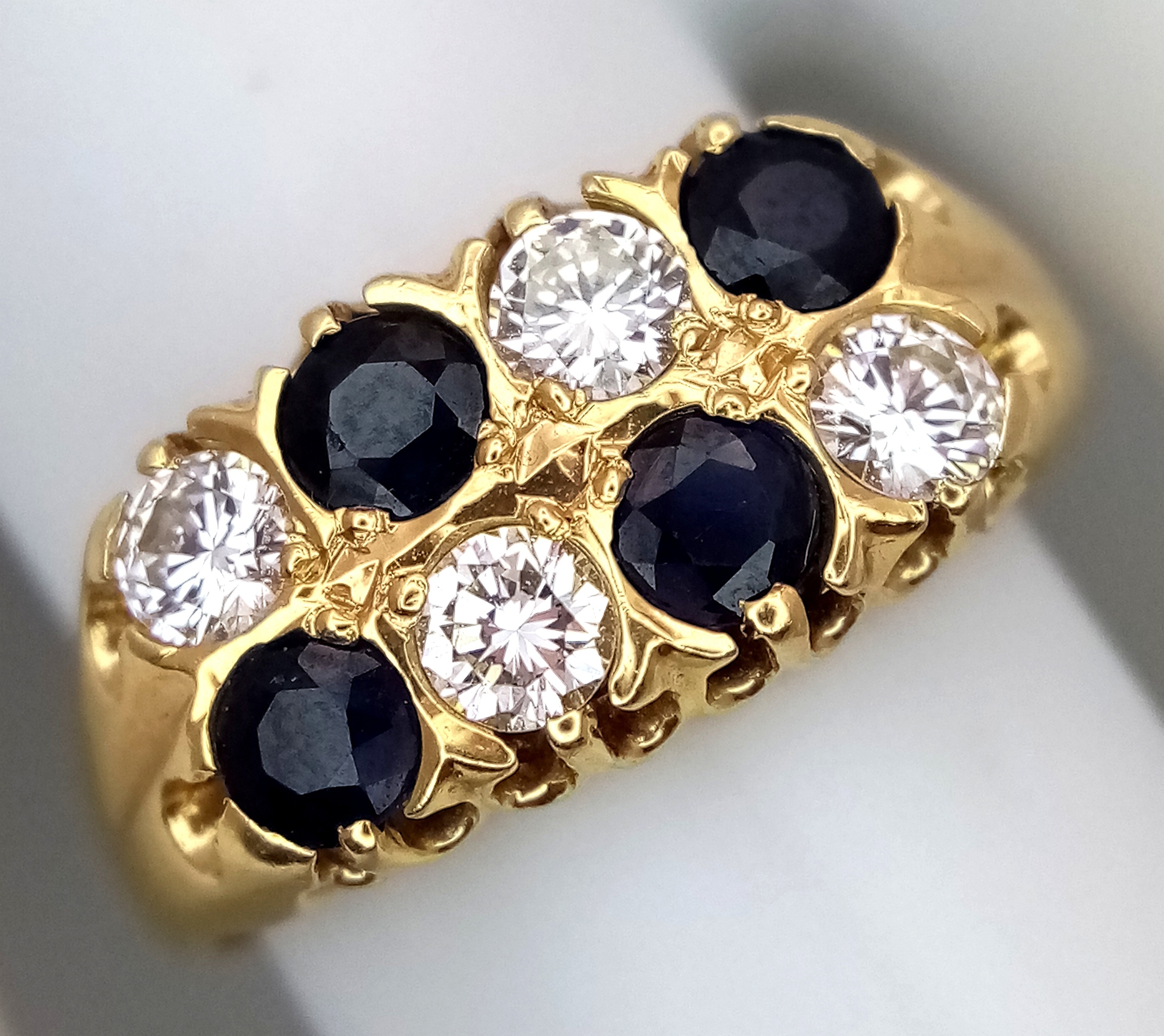 AN 18K GOLD SAPPHIRE AND DIAMOND RING. (APPROX 0.5CTW (1CT TOTAL) OF SAPPHIRES AND DIAMONDS. RING. SIZE P. 6.5G. NL 26/95005.