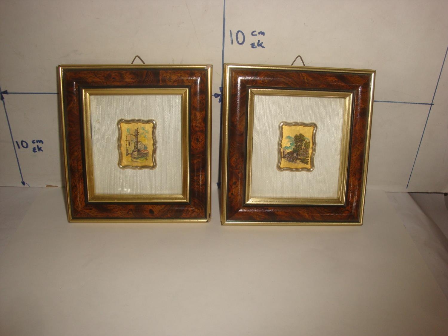 x2 Framed Miniature Ornate 23 Kt Gold Leaf Italian Reproduction Art