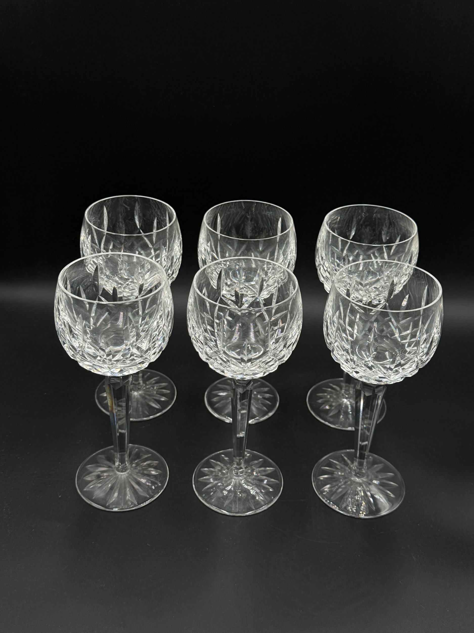 Six Waterford Crystal Lismore pattern hock glasses - approx. 18.5cm high
