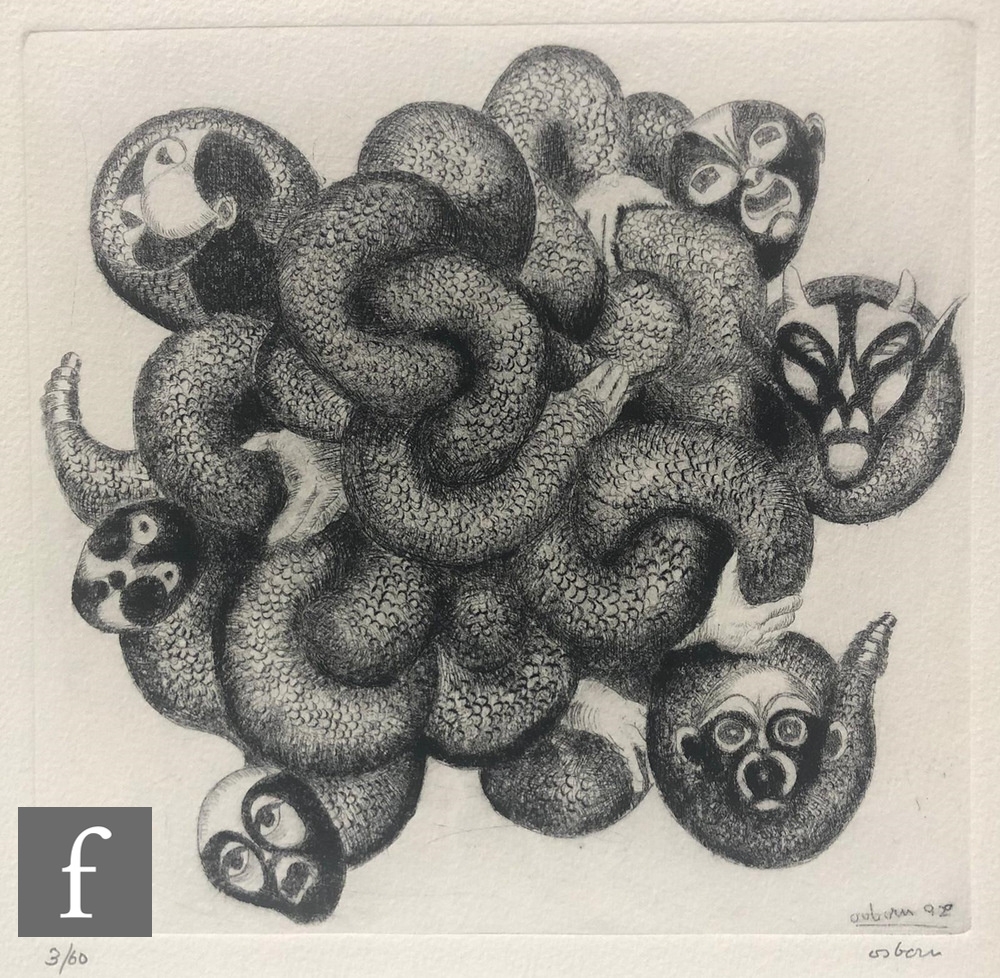 Bayard Osborn (1922-2012) - Female Secrets, etching, signed and numbered 1/20, unframed, 22cm x 17.5cm, also six other unframed etchings by the same hand. (7)