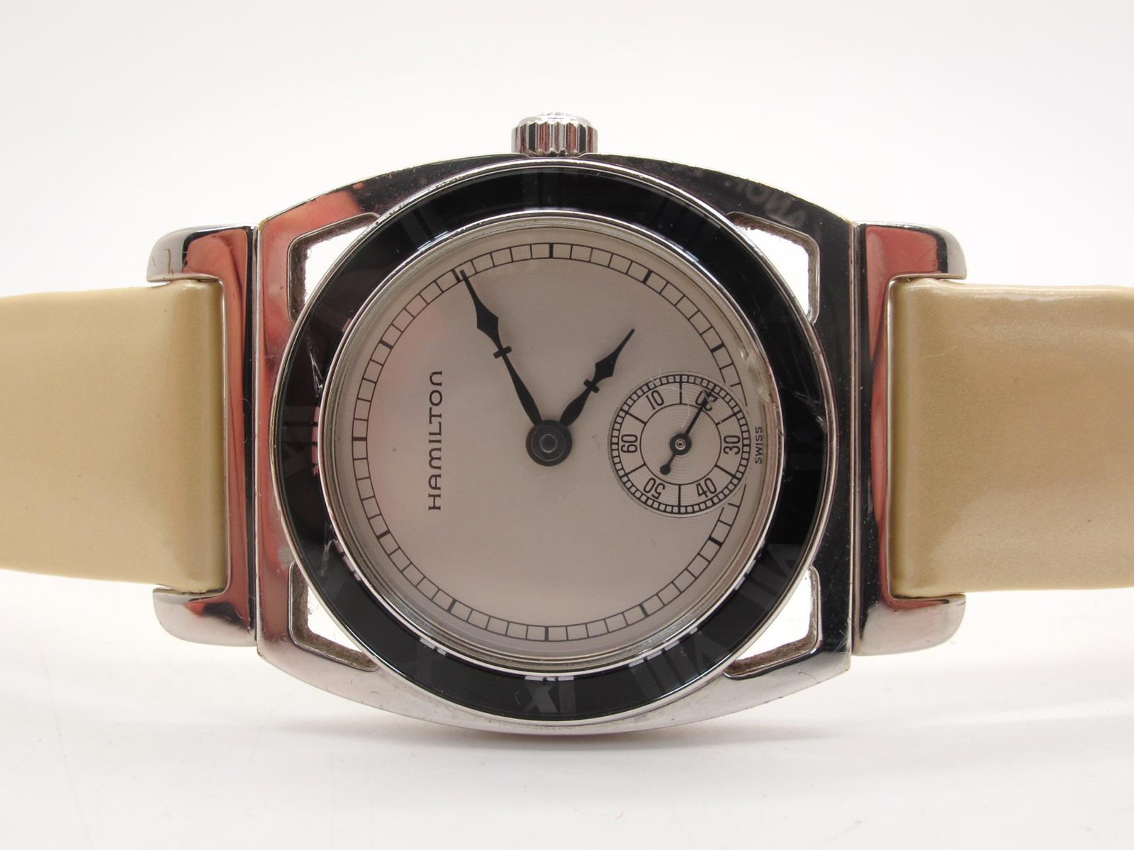 Hamilton; An Art Deco Style Yankee's World Champions Commemorative Ladies Wristwatch, the signed dial with subsidiary seconds dial, within Roman numeral bezel, (movement unseen) the reverse with 'Yankee's 1928 World Champions' decoration, on a strap.