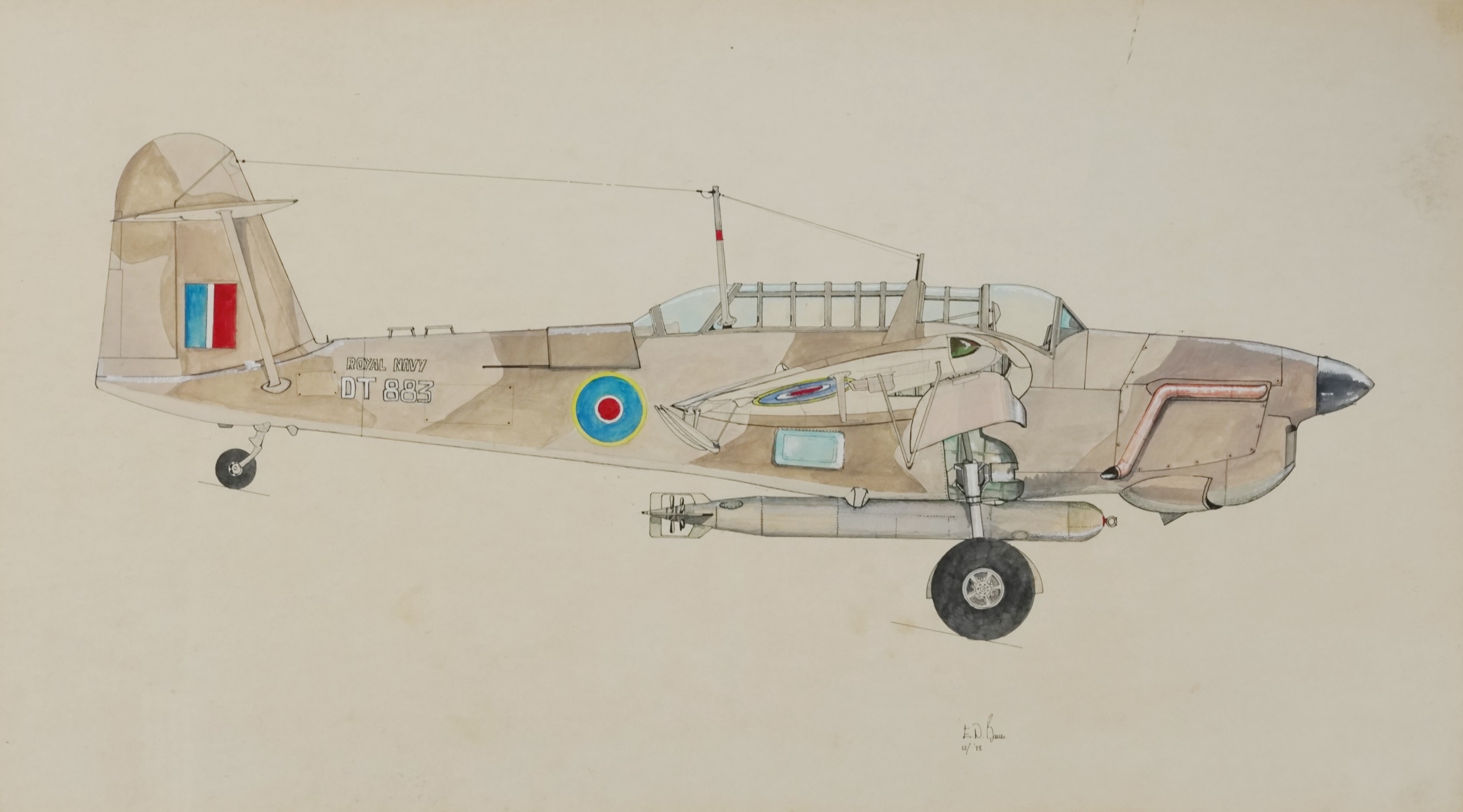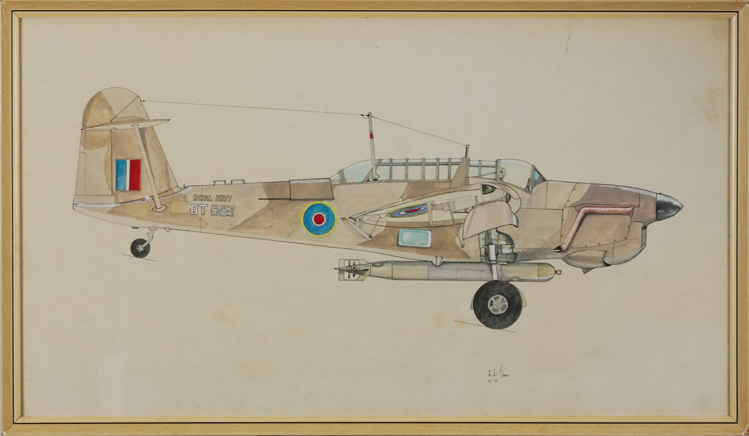 E. N. Bauer - Fairey Barracuda, 20th century British school mixed media on paper, framed and glazed, 42cm x 75cm.