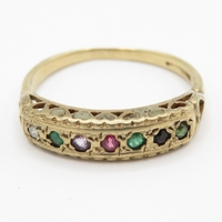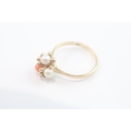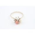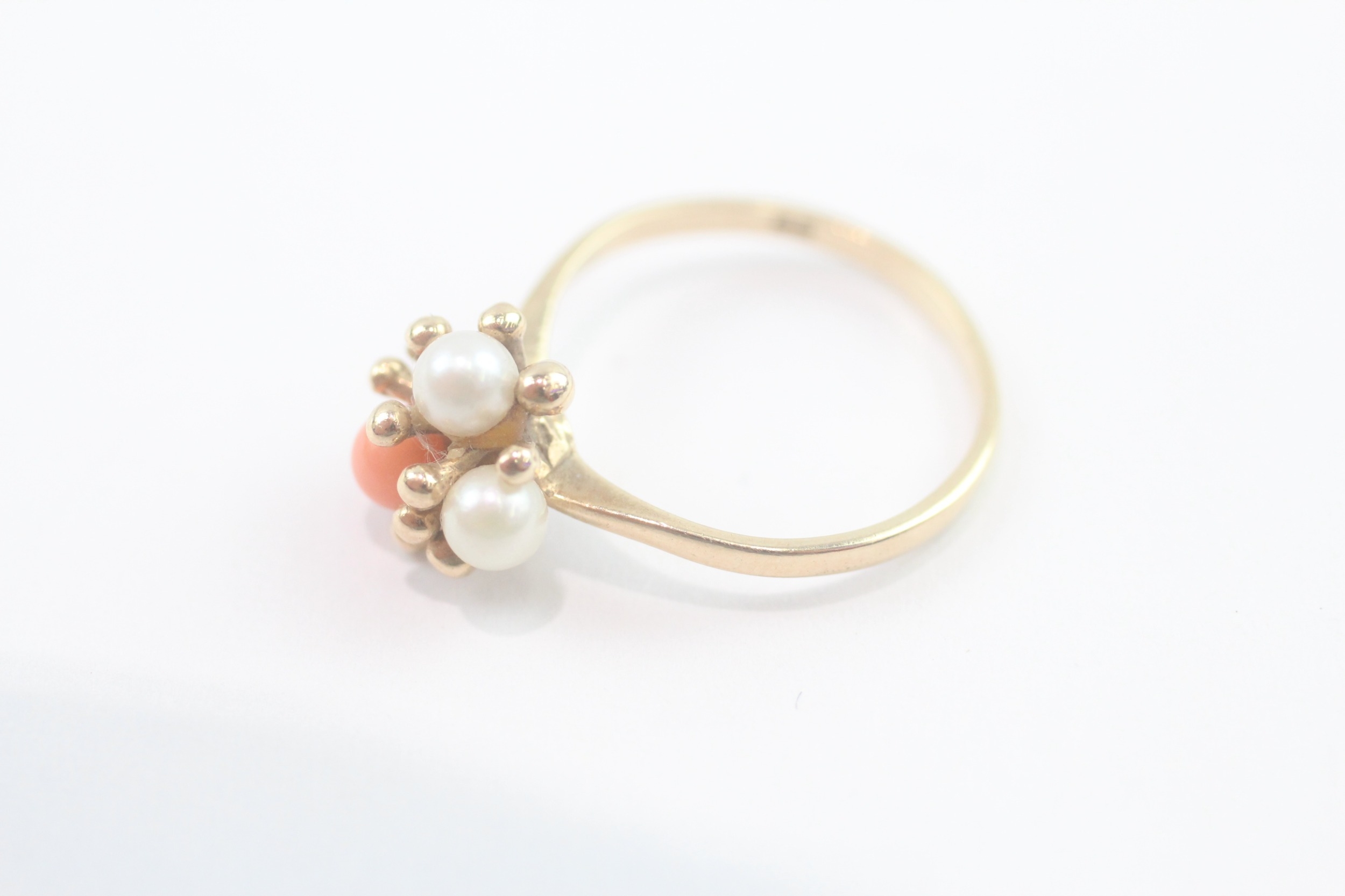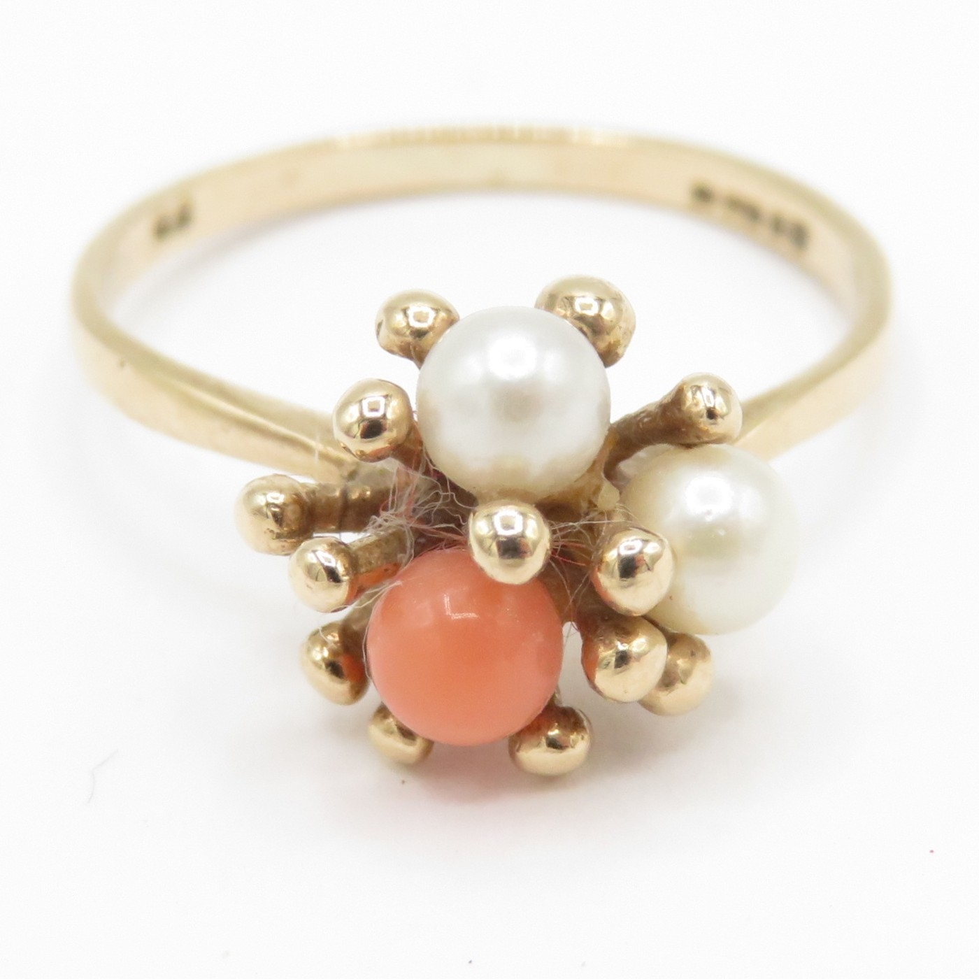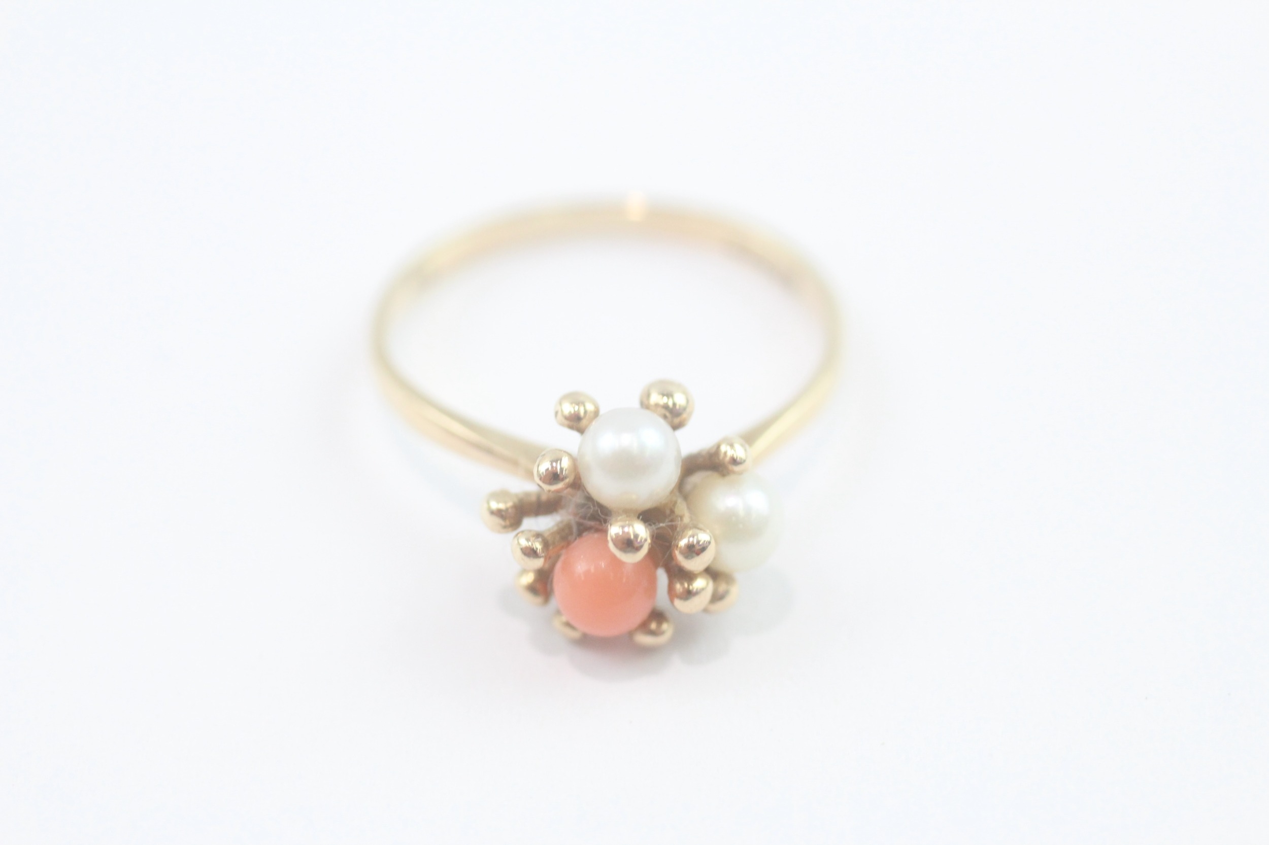 9ct gold cultured pearl and coral mid century ring (1.8g) Size K