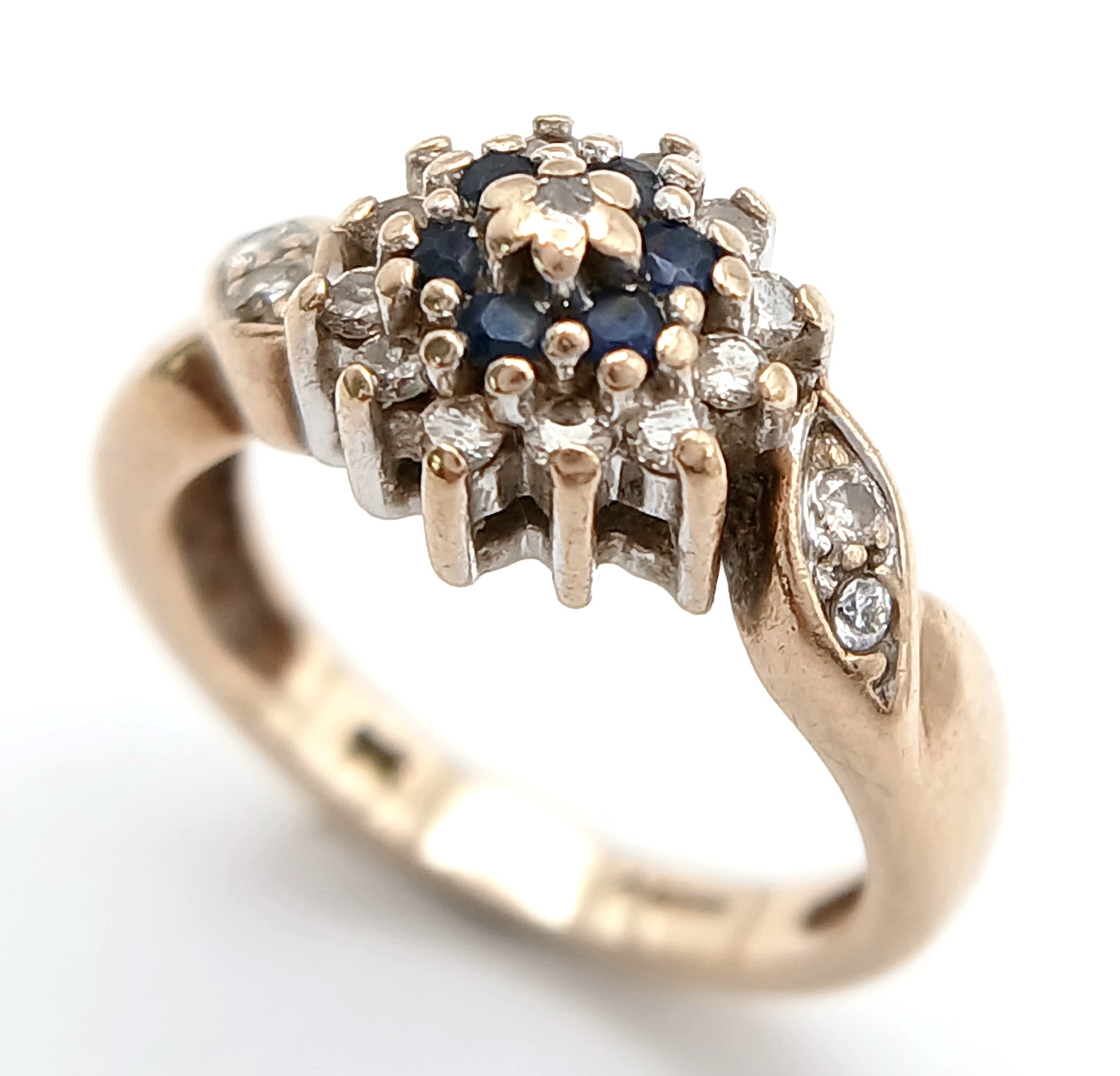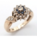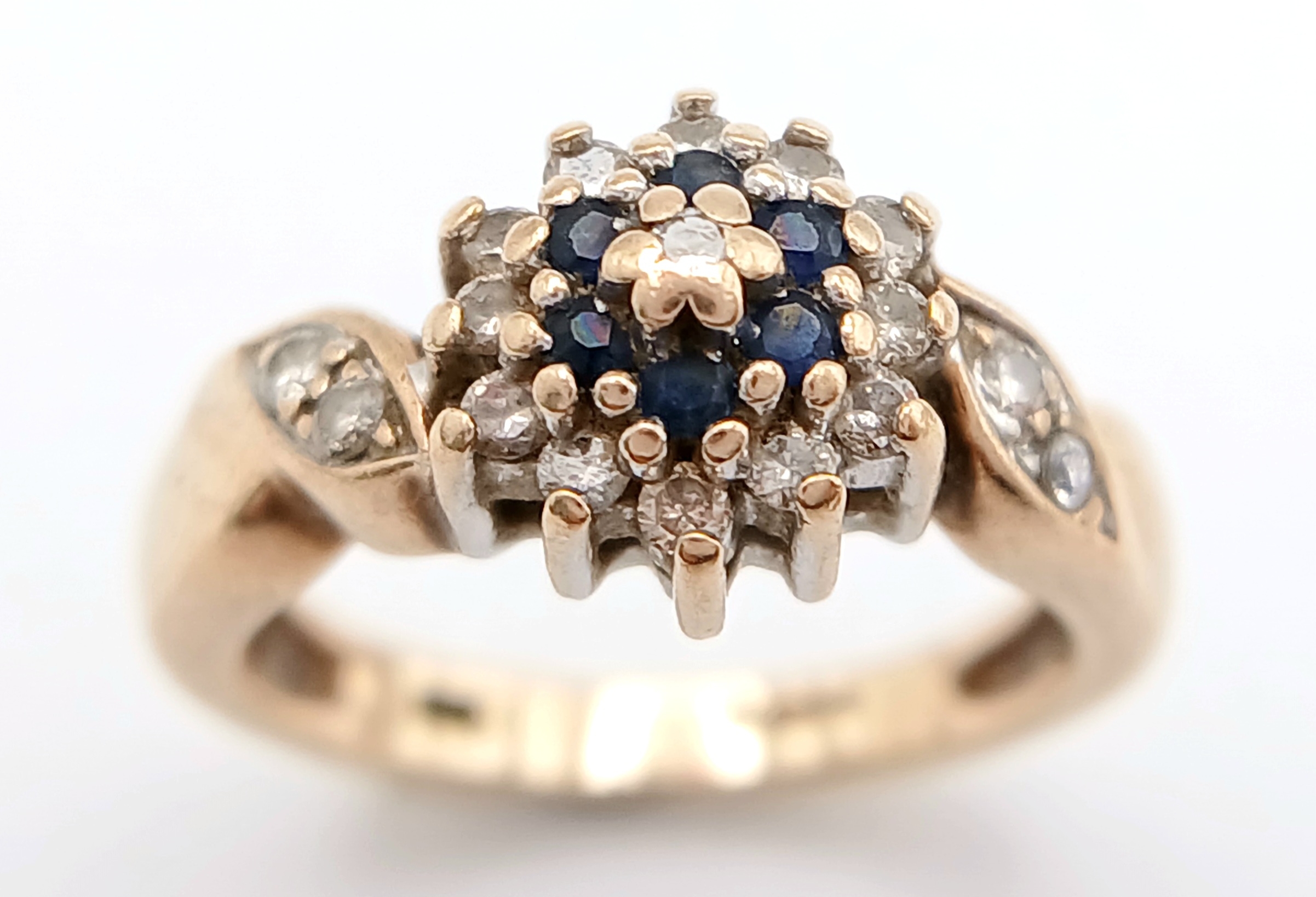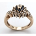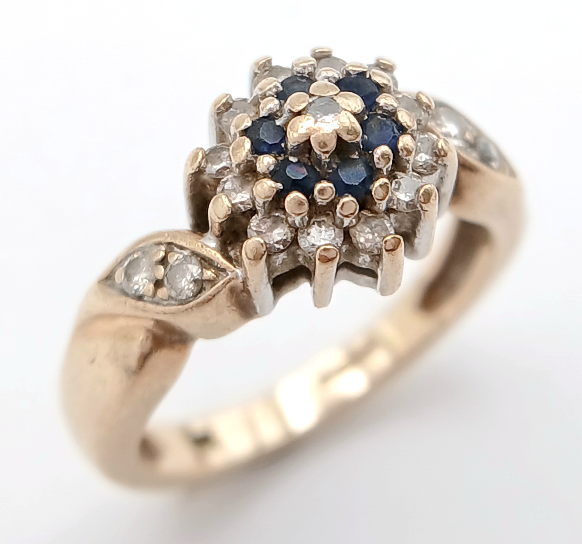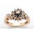 A 9K YELLOW GOLD DIAMOND AND SAPPHIRE RING. TOTAL WEIGHT 2.8G, SIZE F. SC 9064