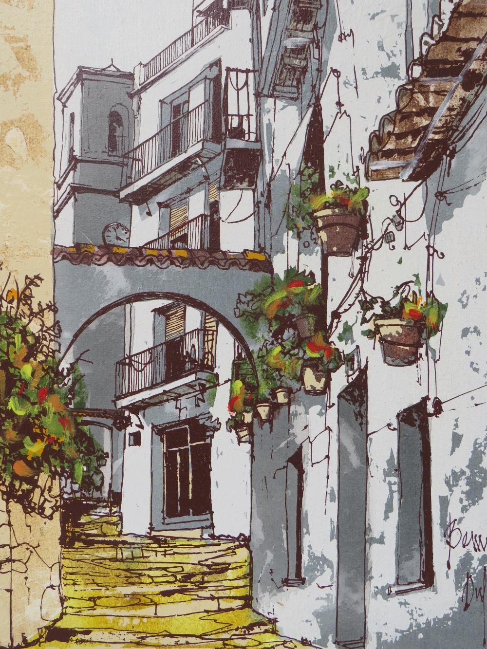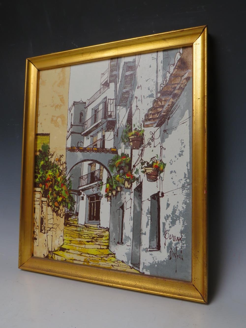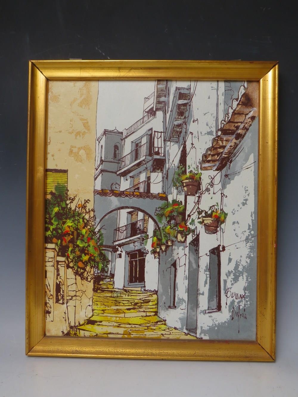 BERNARD DUFOUR (XX). French school, continental village street scene , signed lower right, oil on canvas laid on board, framed, 45 x 37 cm