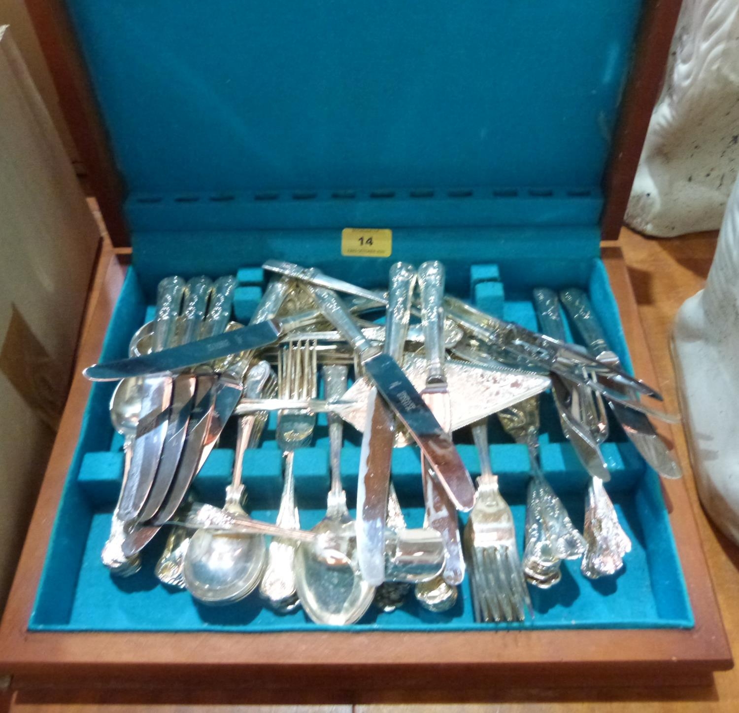 A mid 20th century canteen of plated kings pattern cutlery for 6 settings, the set to include additional plated cutlery