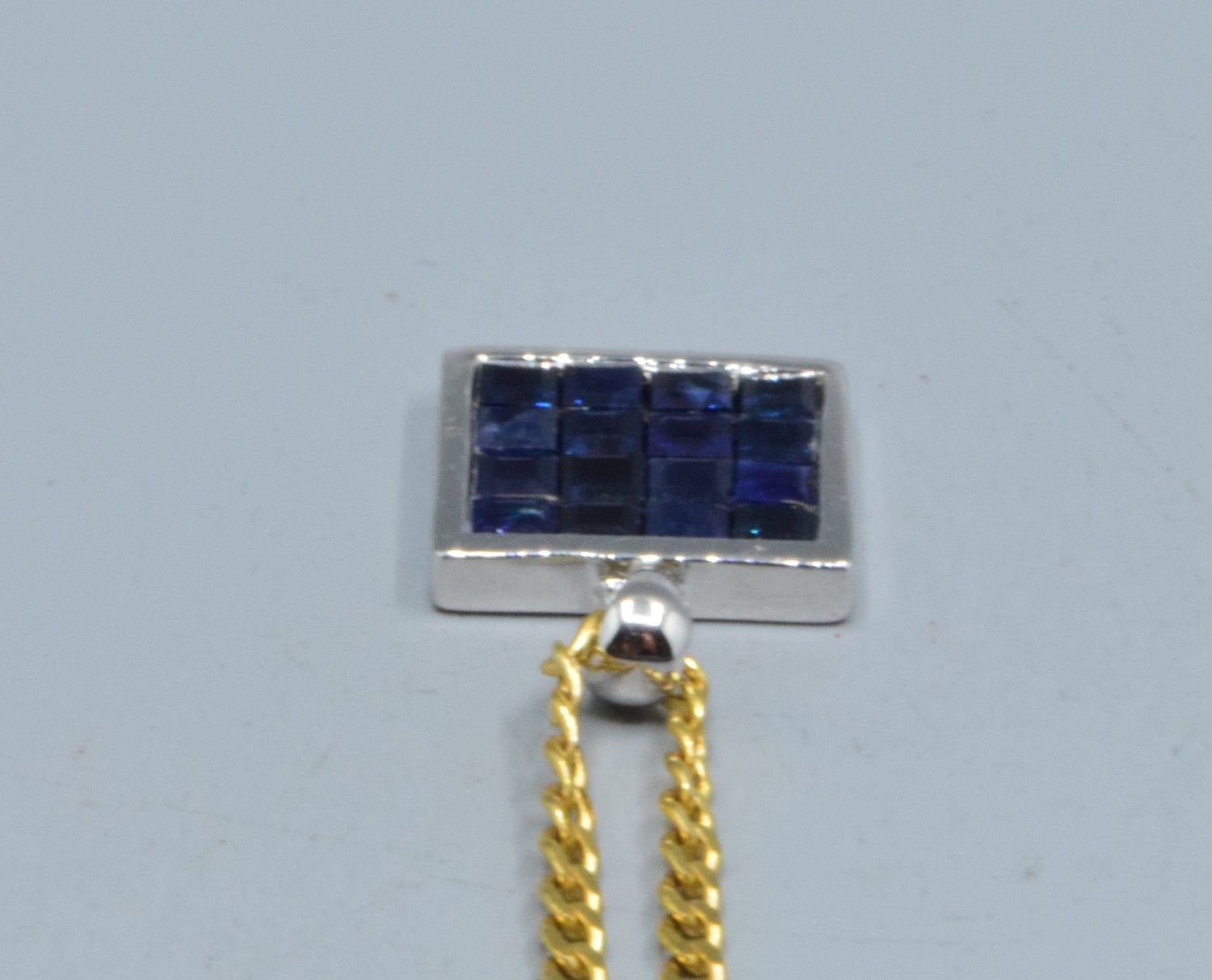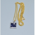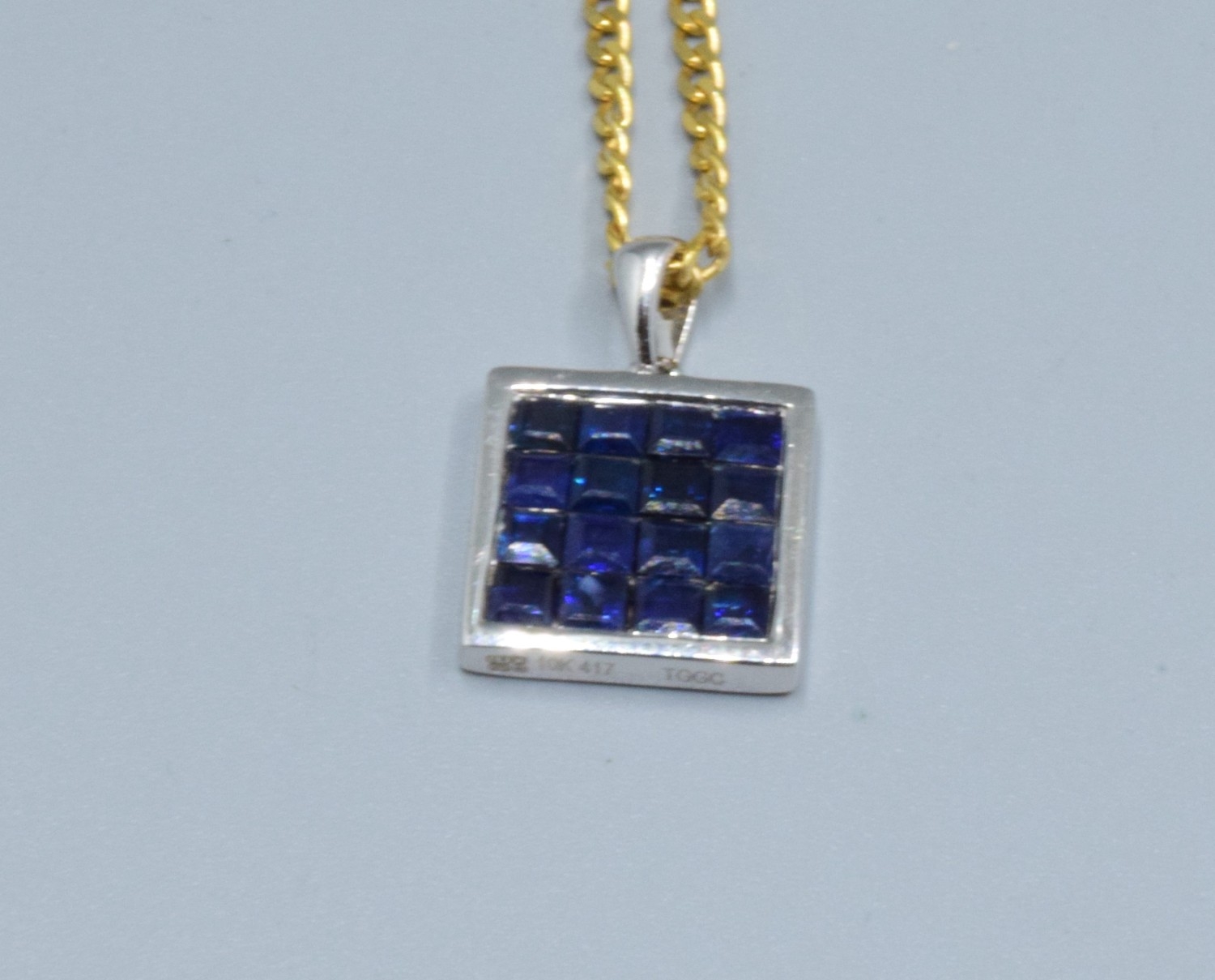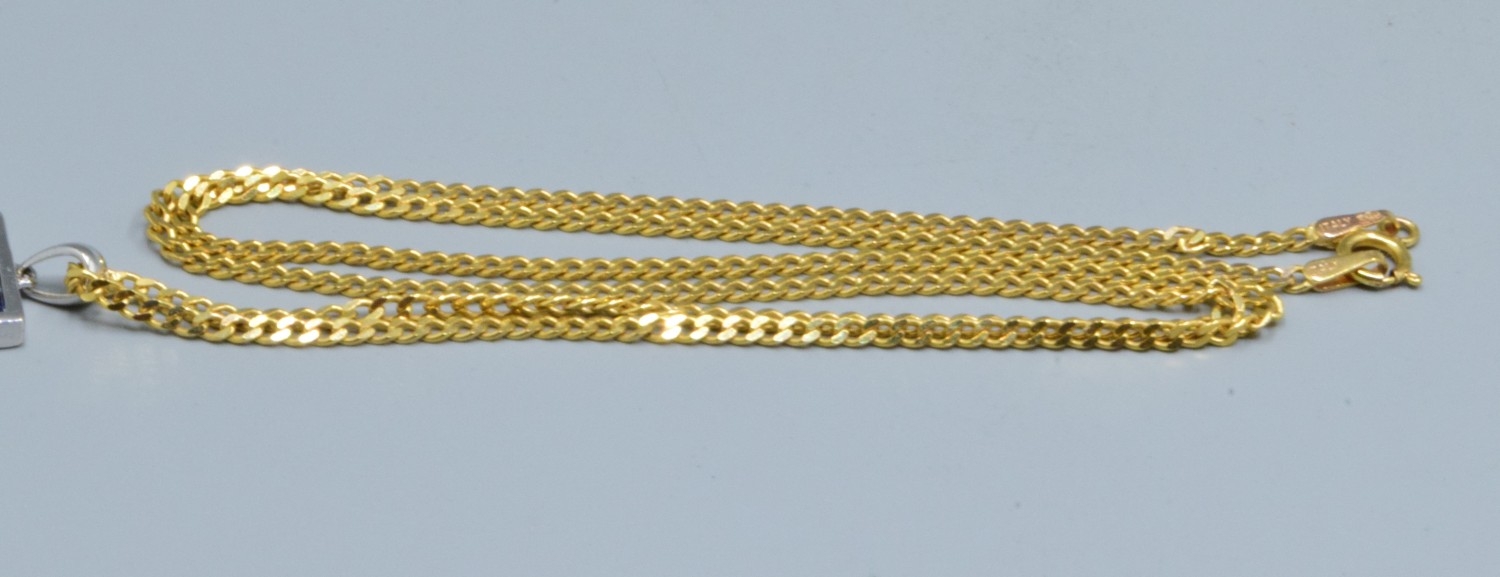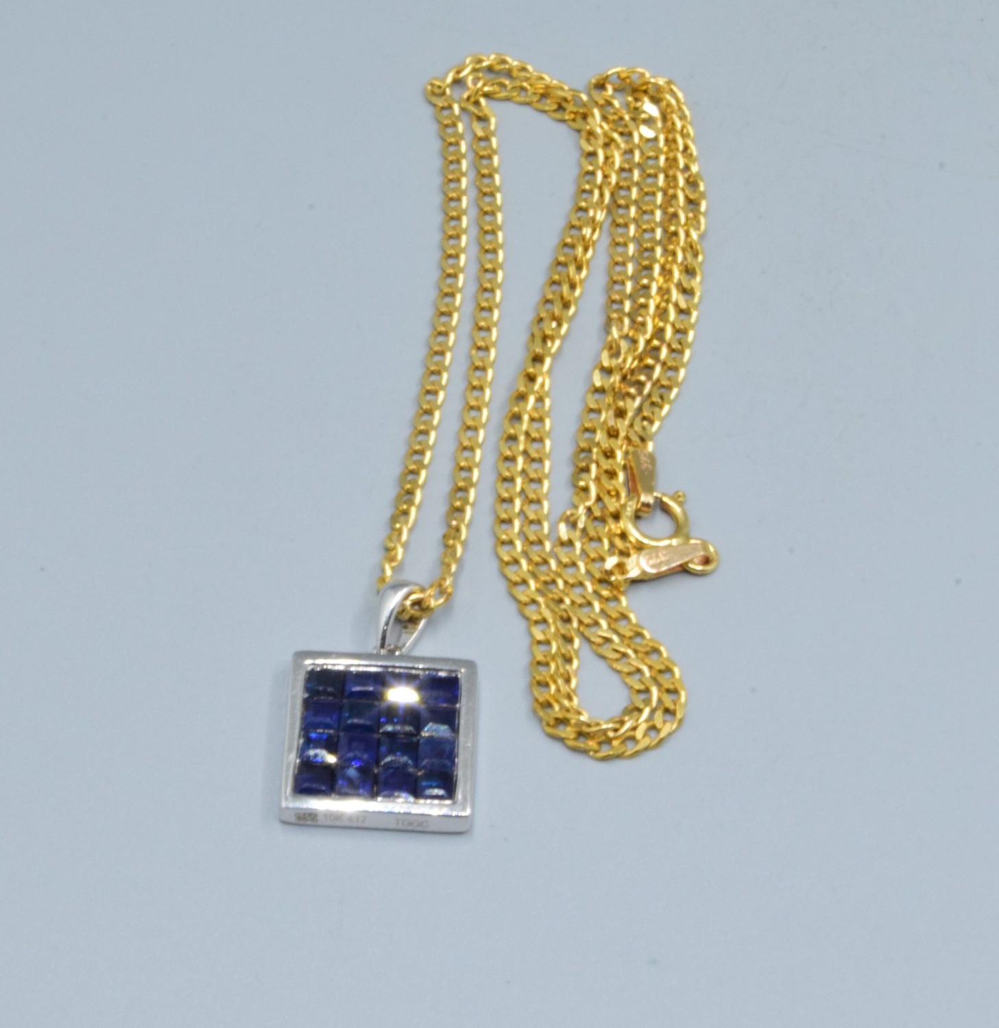 9ct white gold Sapphire square shape pendant necklace 12x12mm held on a 9ct gold neck chain of 44cm long, 5.2grams