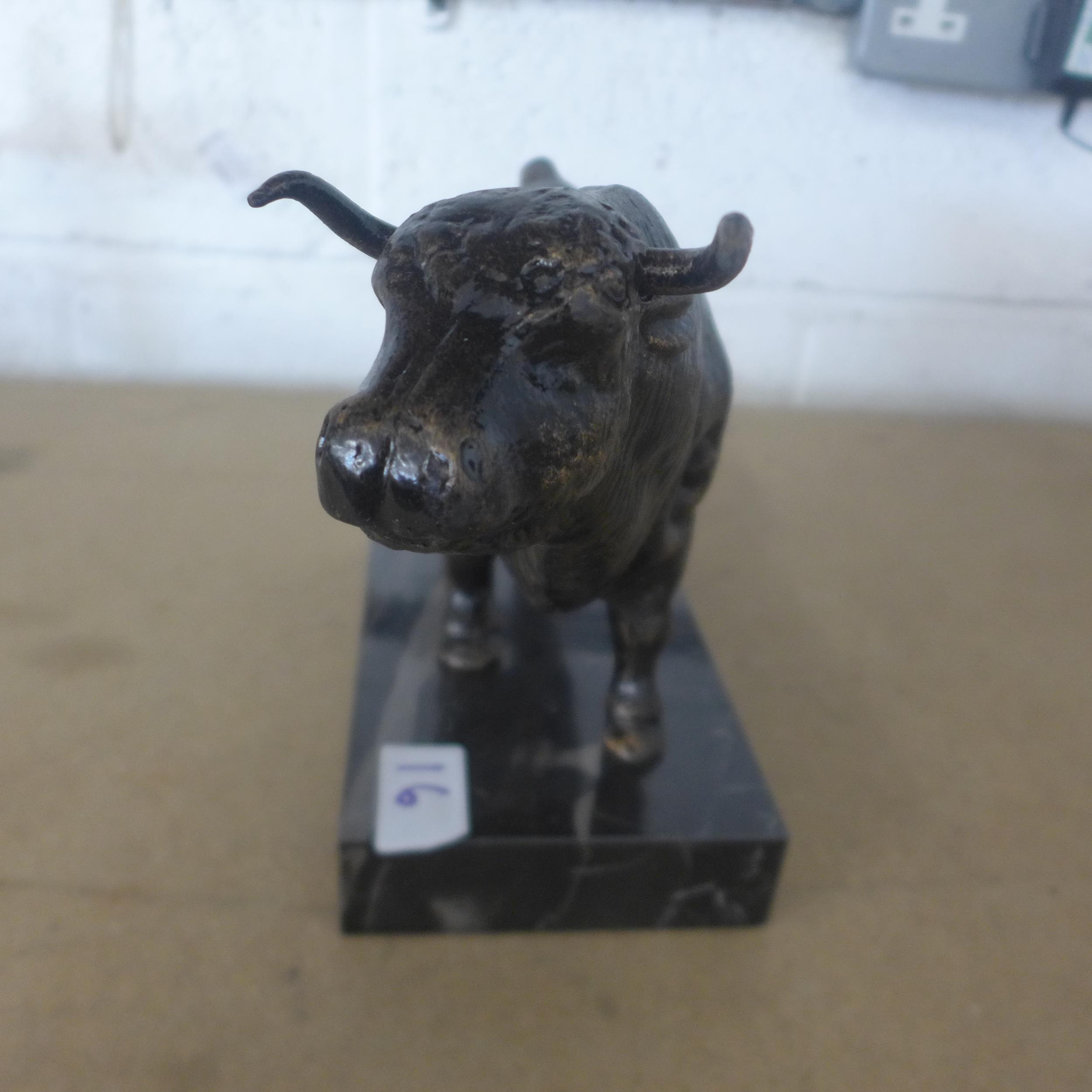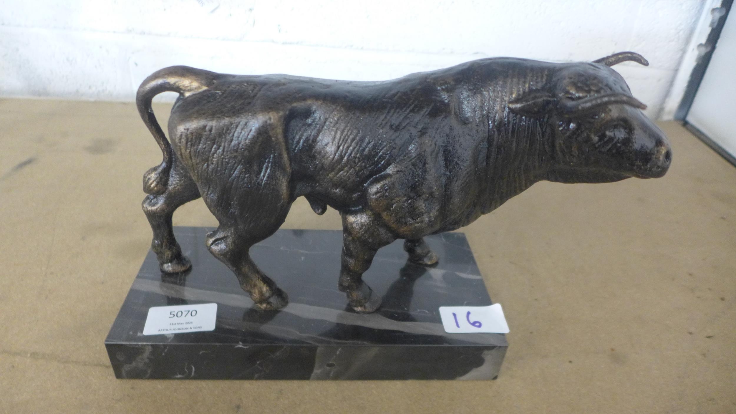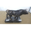 A cast metal bull figure on a stone base *This lot is subject to VAT