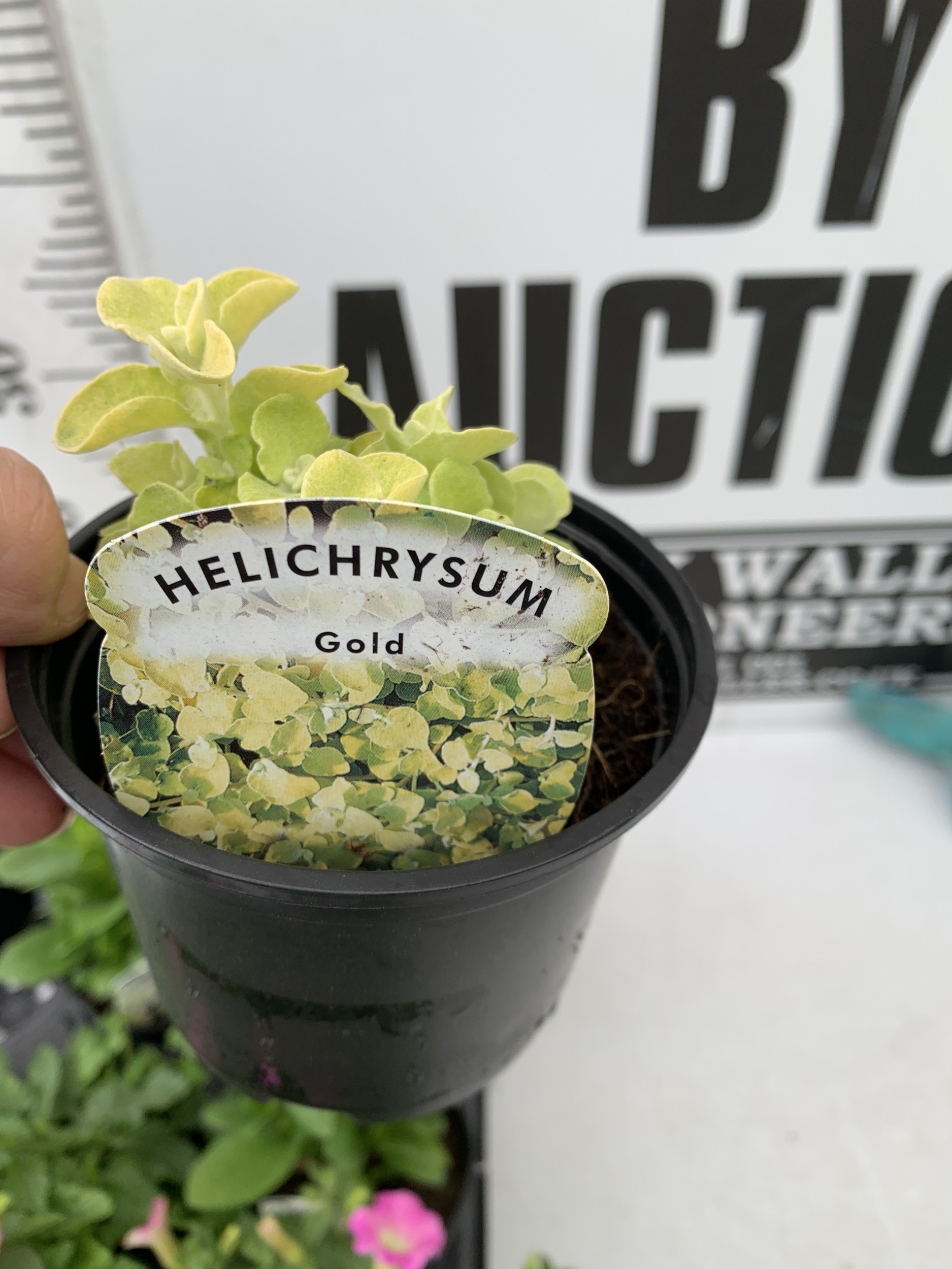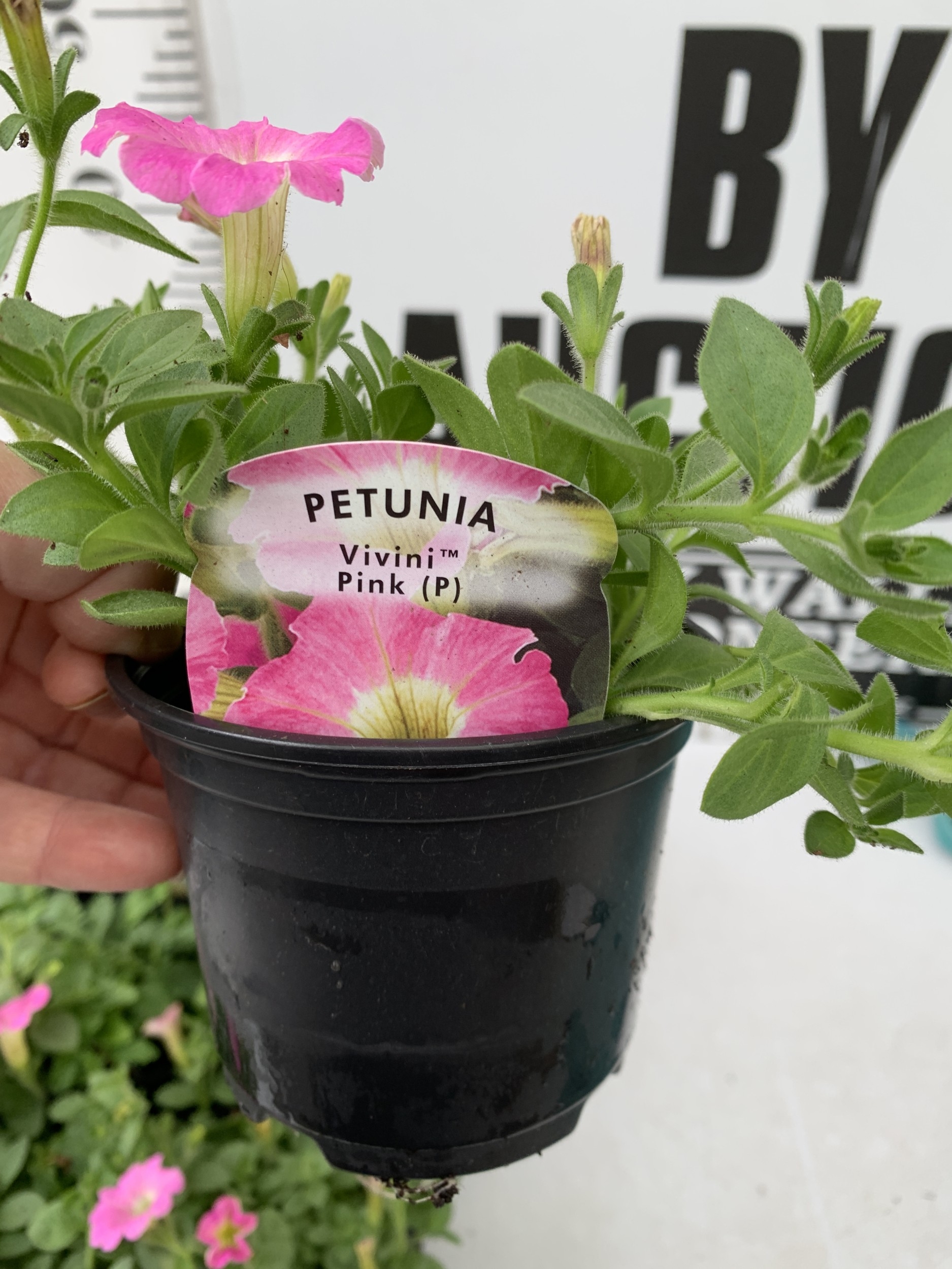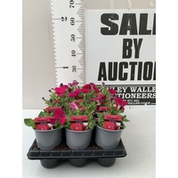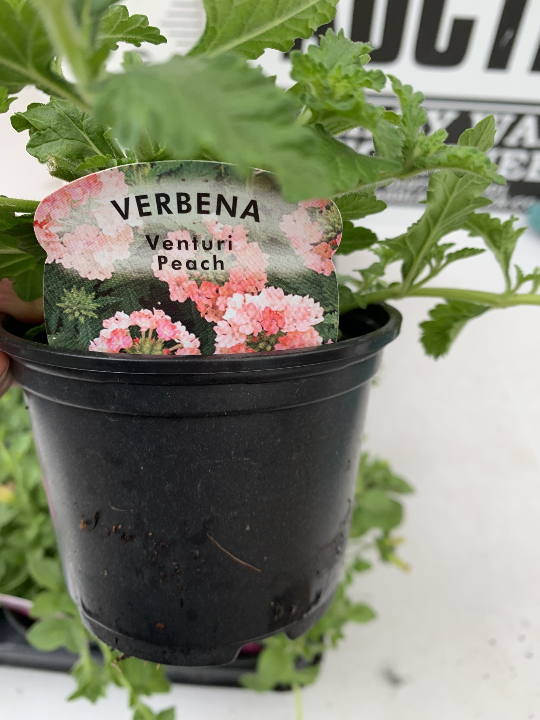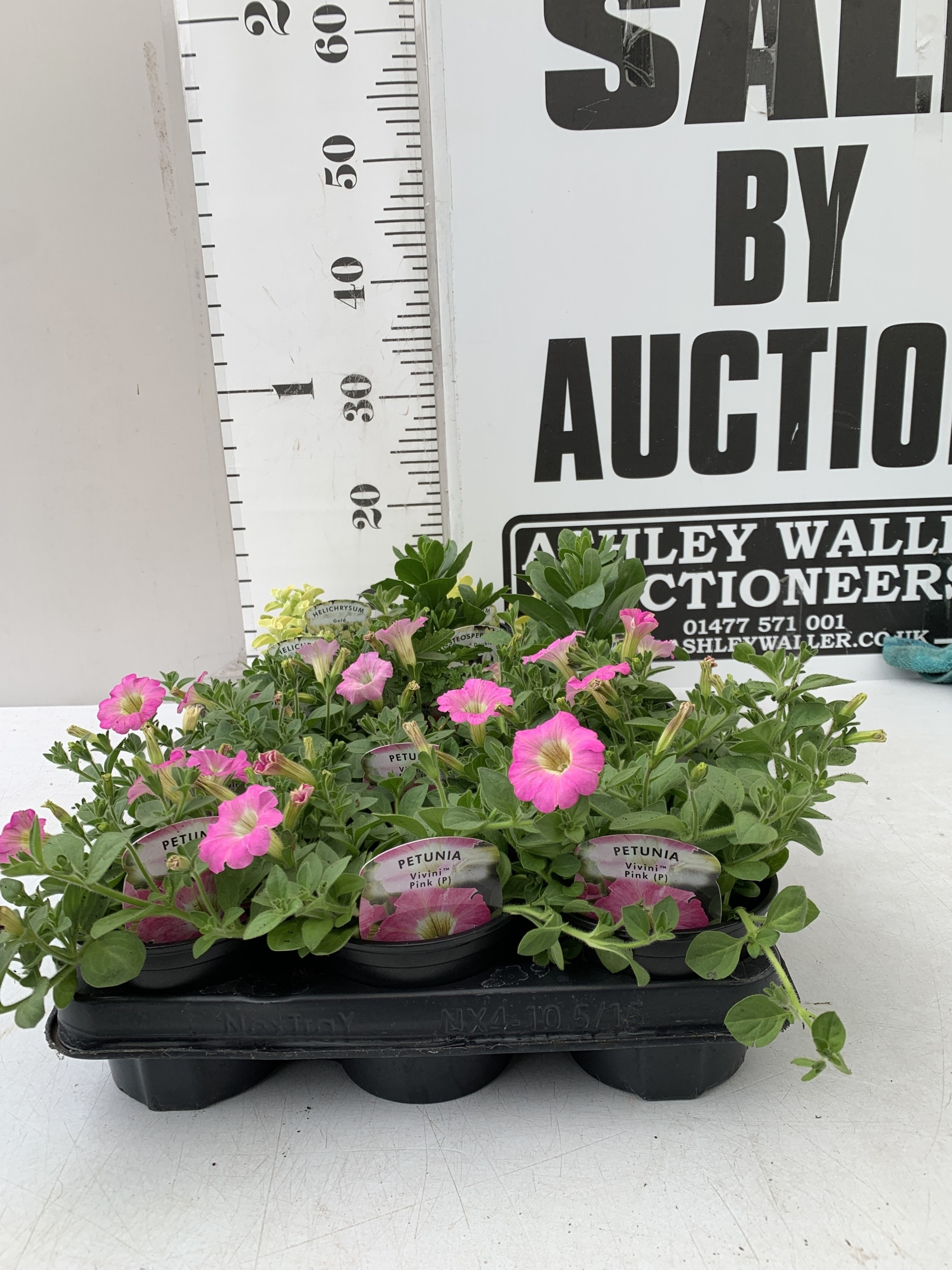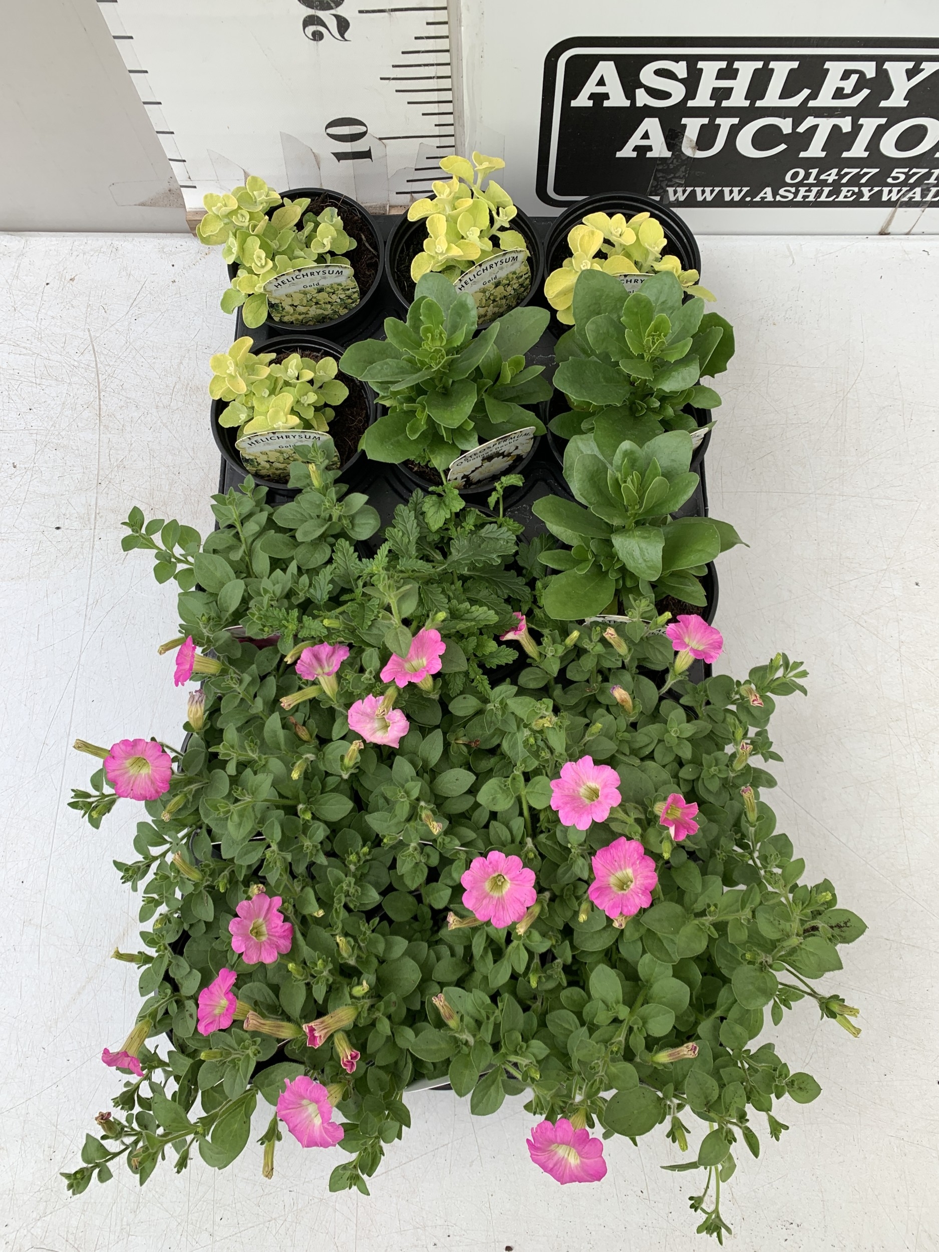 FIFTEEN MIXED BEDDING PLANTS IN P8CM POTS TO INCLUDE PETUNIA VIVINI PINK, HELICHRYSUM GOLD, OSTEOSPERMUM DALINA AND VERBENA TRAILING VENTURI PEACH ON A TRAY. TO BE SOLD FOR THE FIFTEEN
