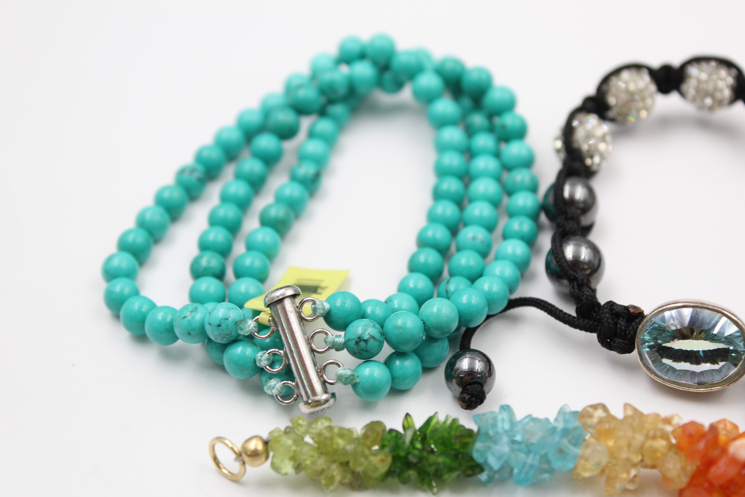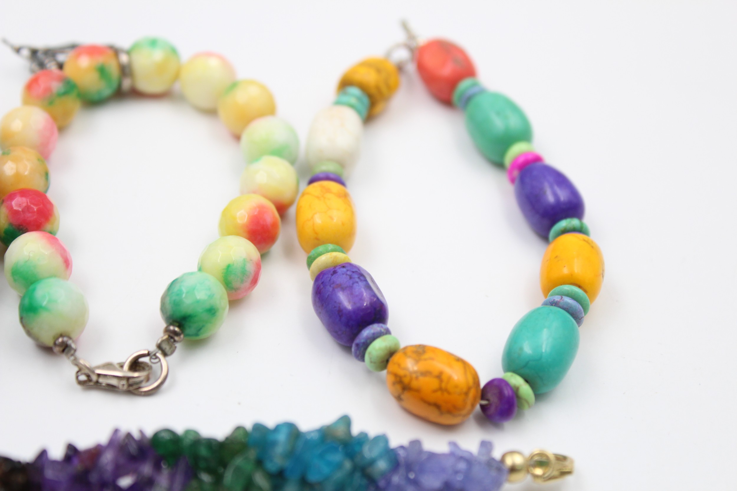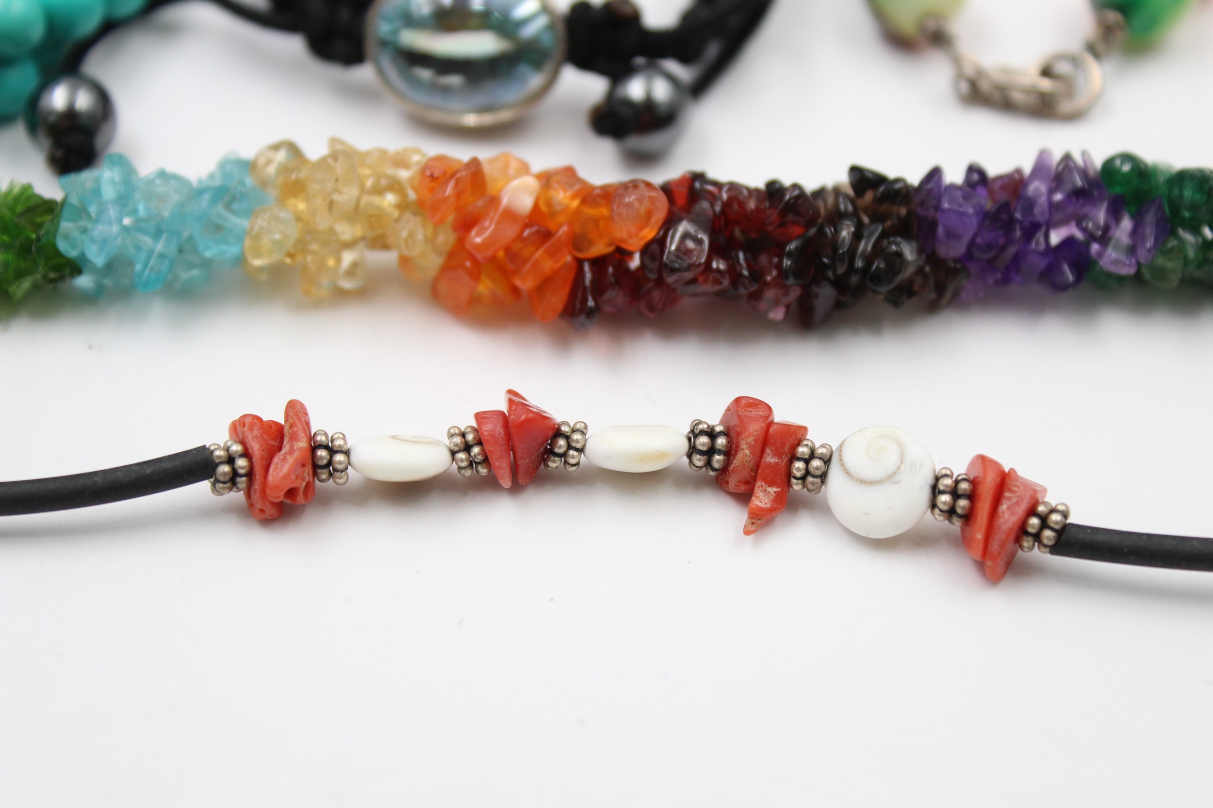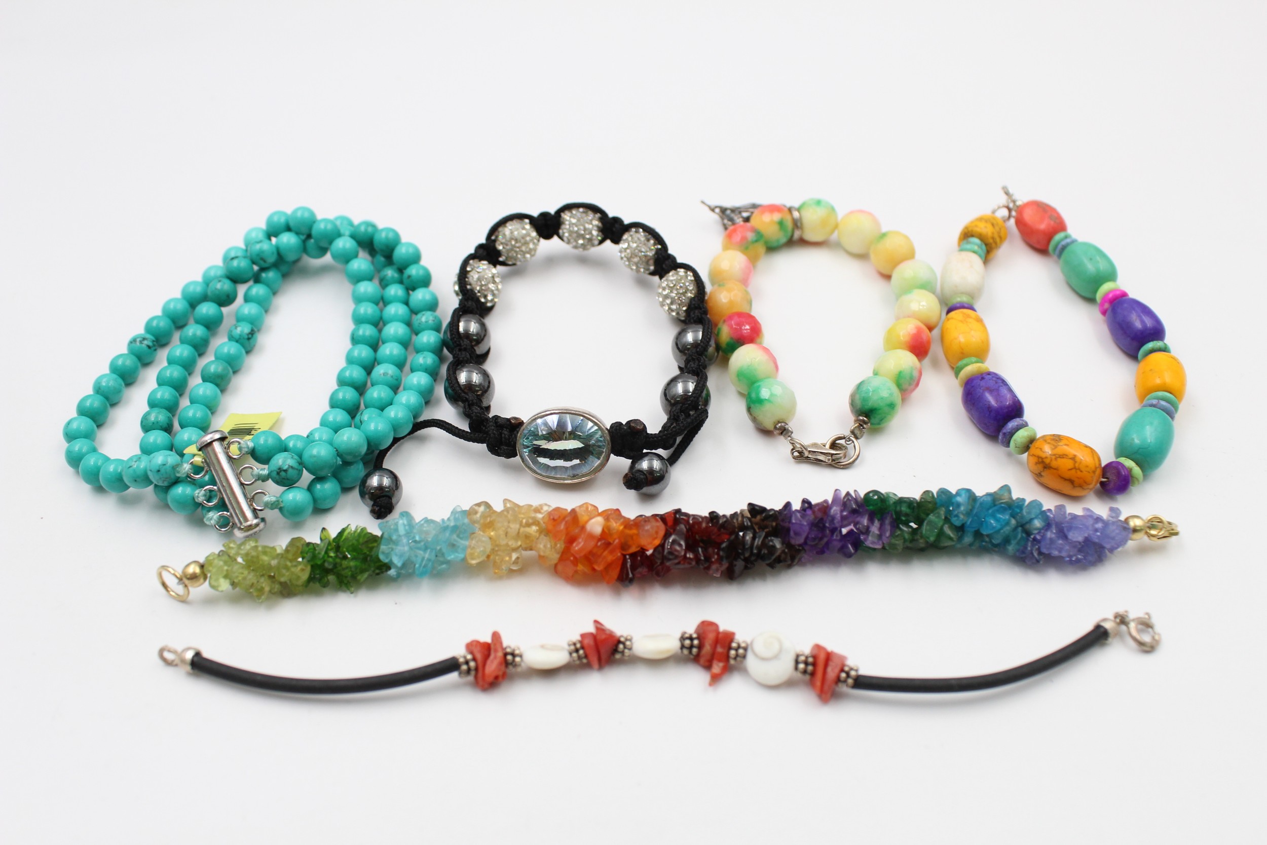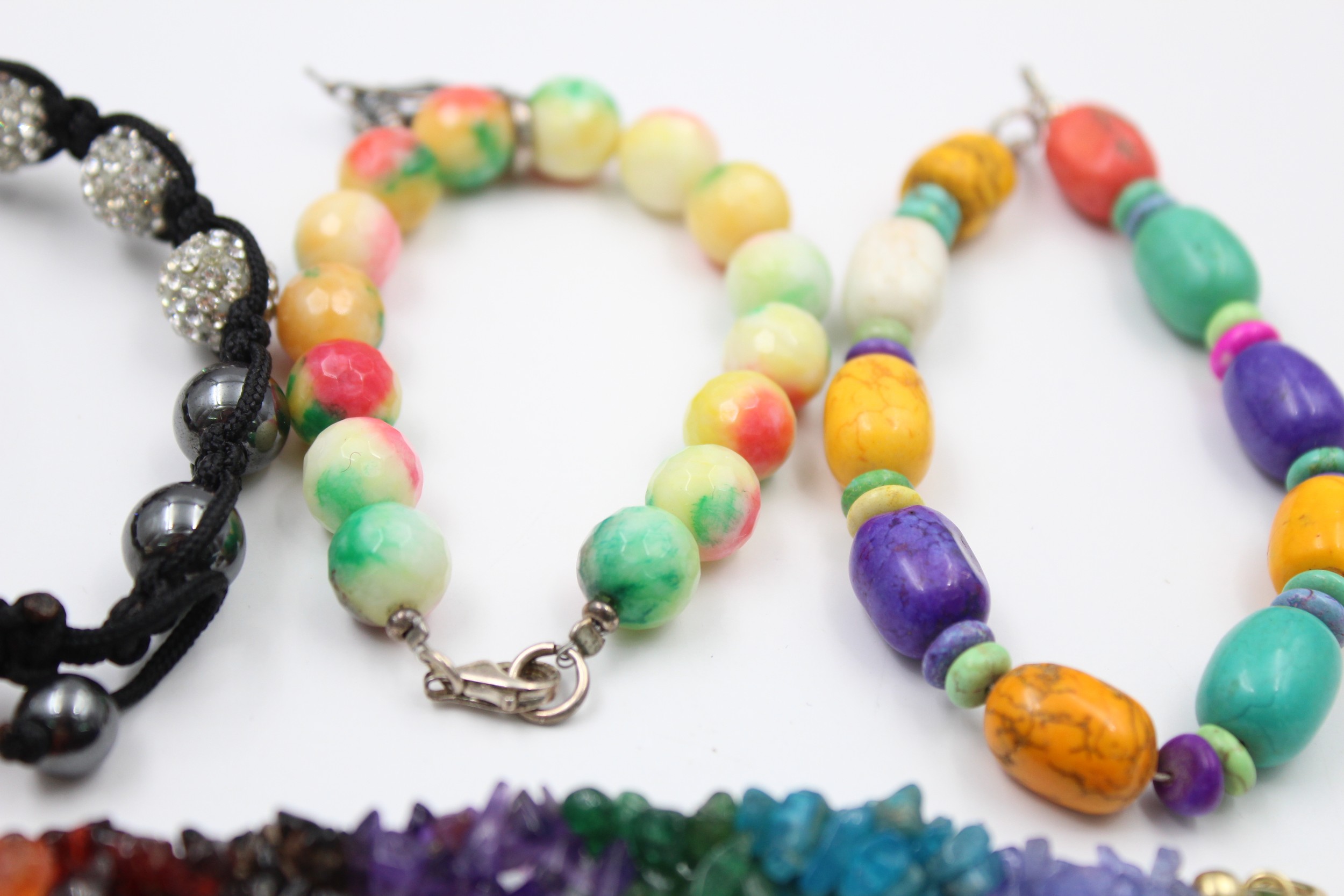 A mix of semi precious gemstone bracelets with silver clasps. Items without stamps have been XRF tested for purity In vintage condition Signs of age & wear Please see photographs