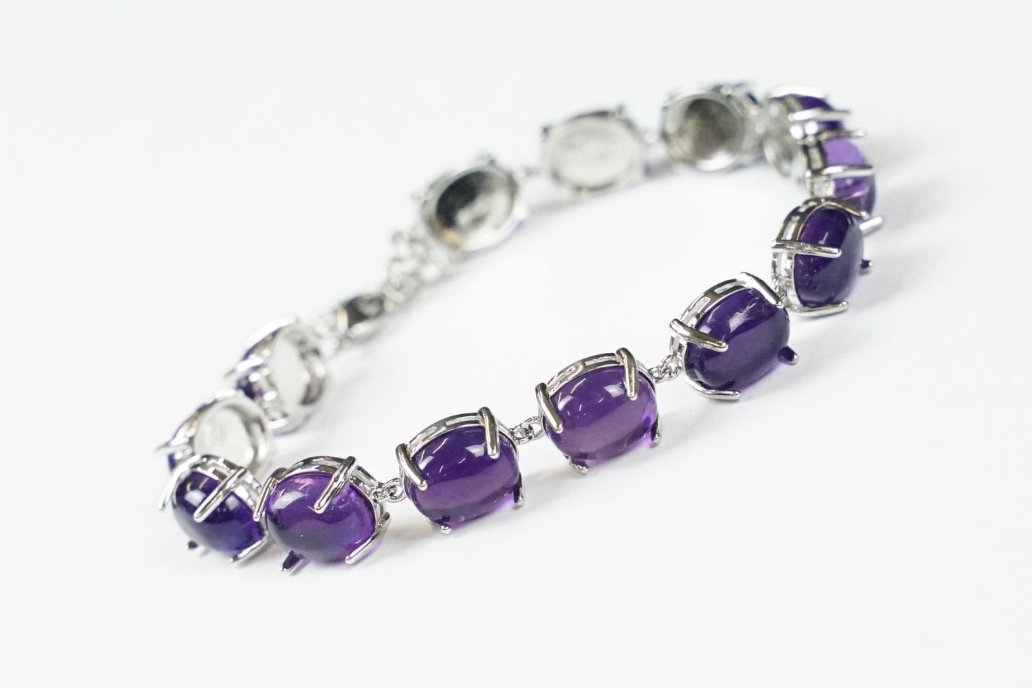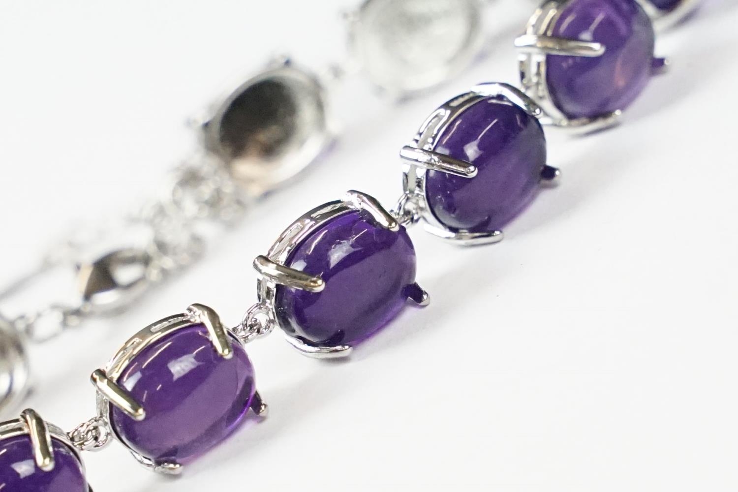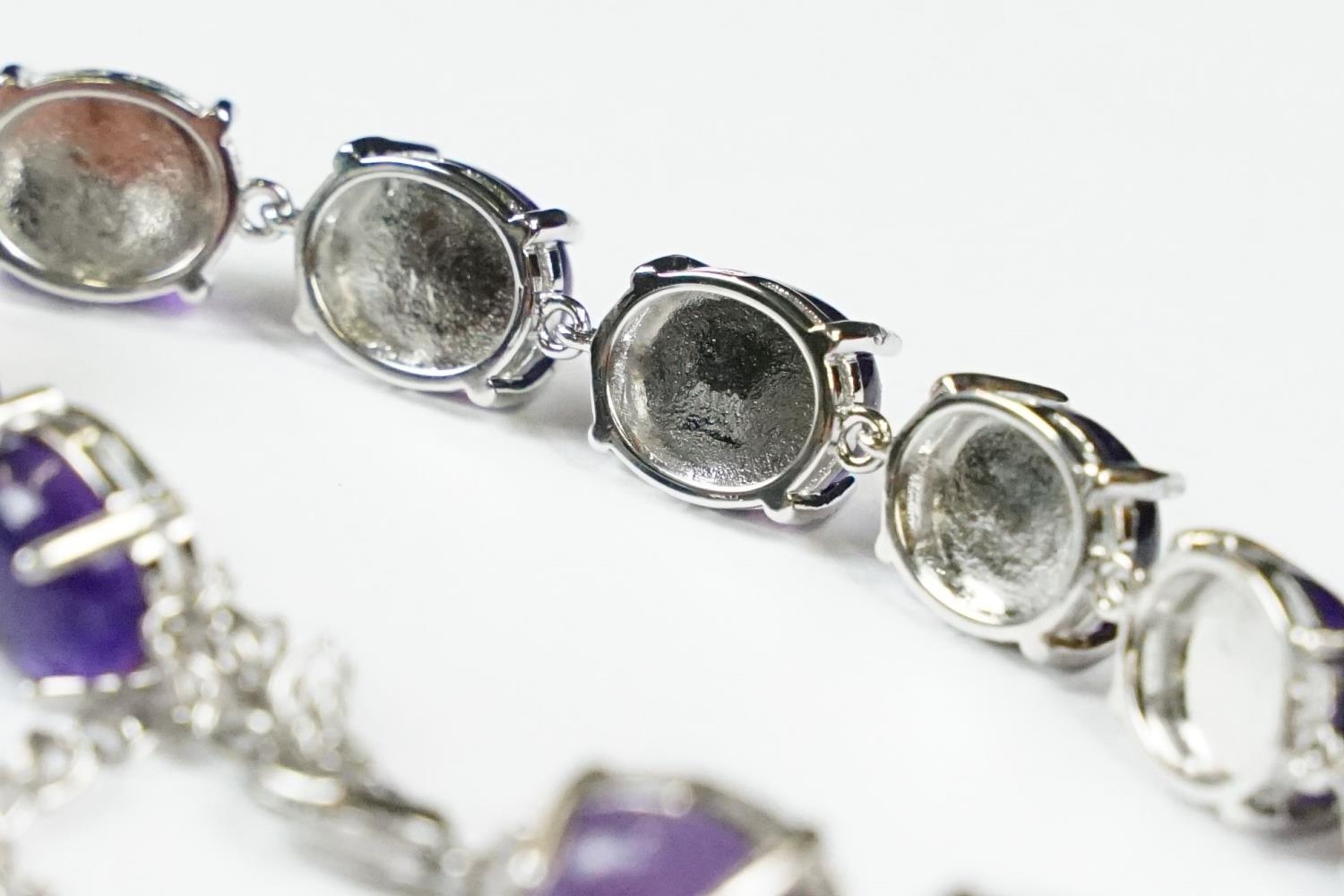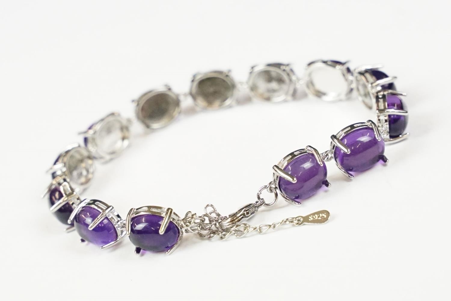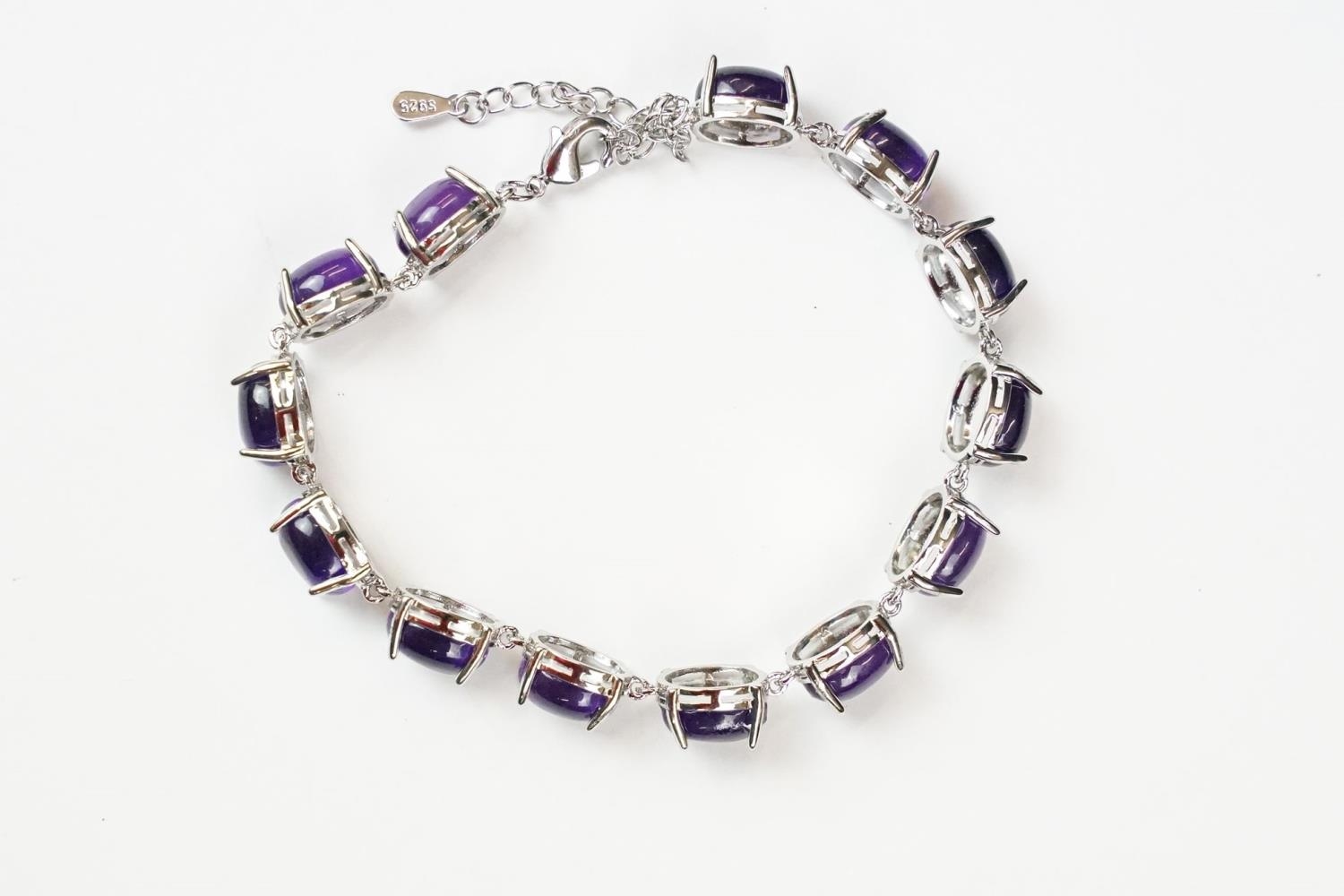 A 925 Sterling Silver and amethyst bracelet, marked 925 to the clasp.