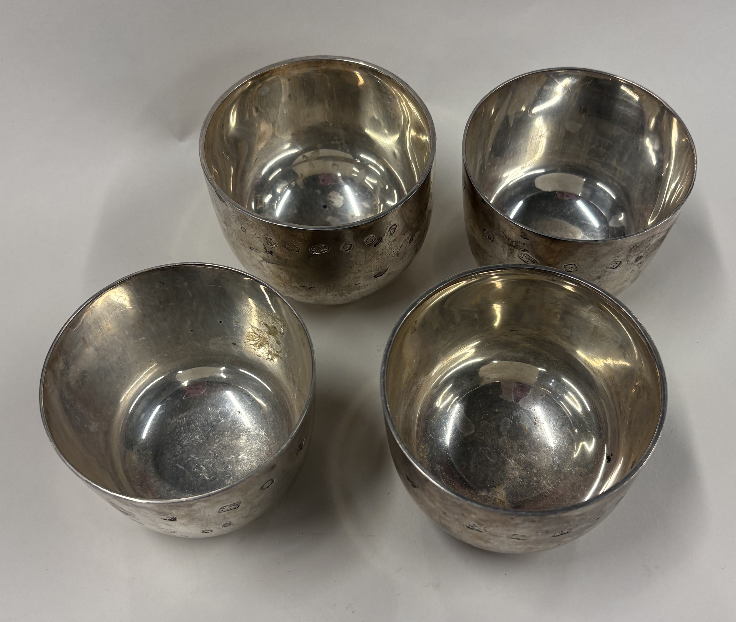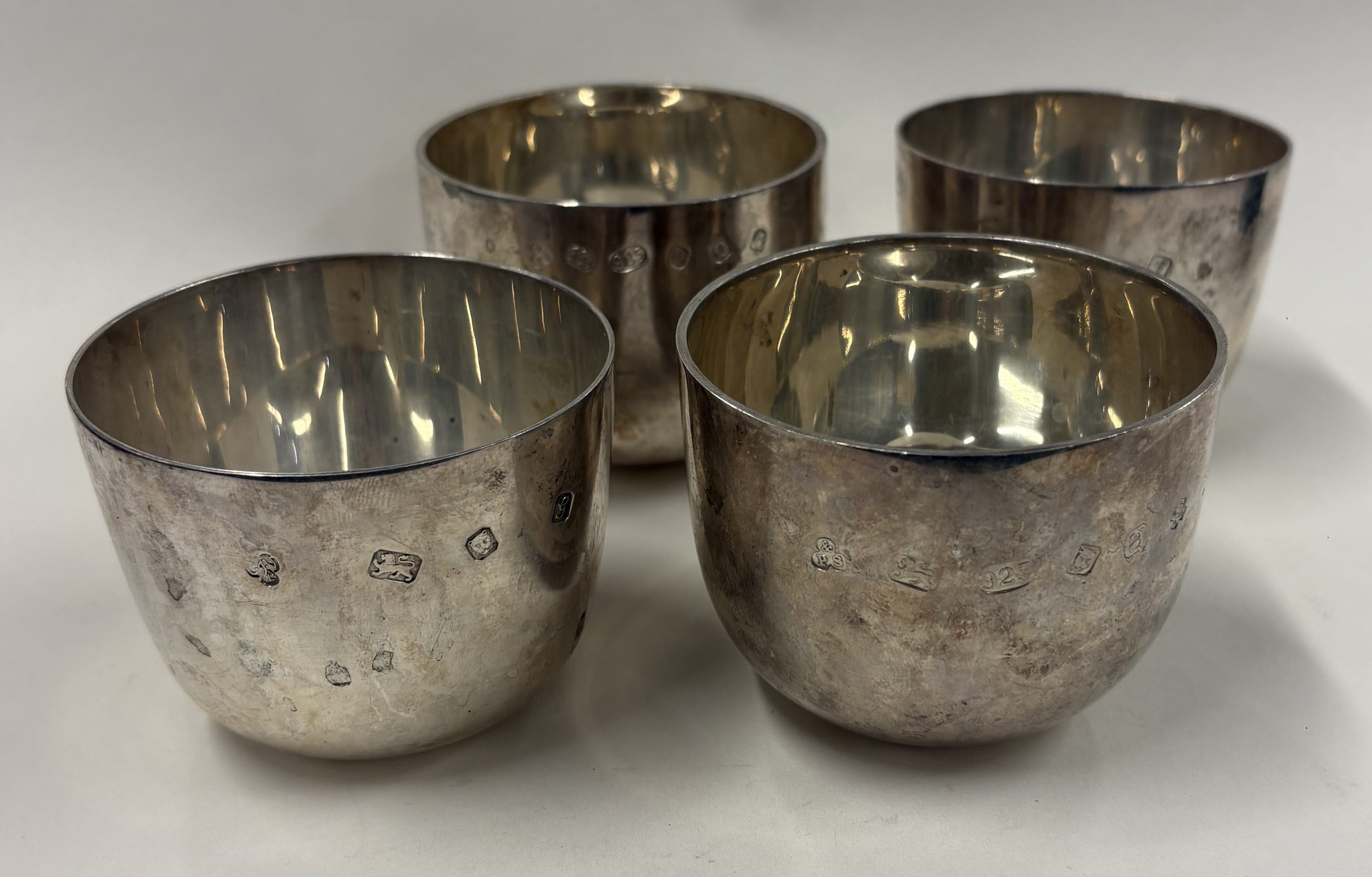 A fine set of four heavy silver tumbler cups. London. Approx. 620 grams. Est. £700 - £800.