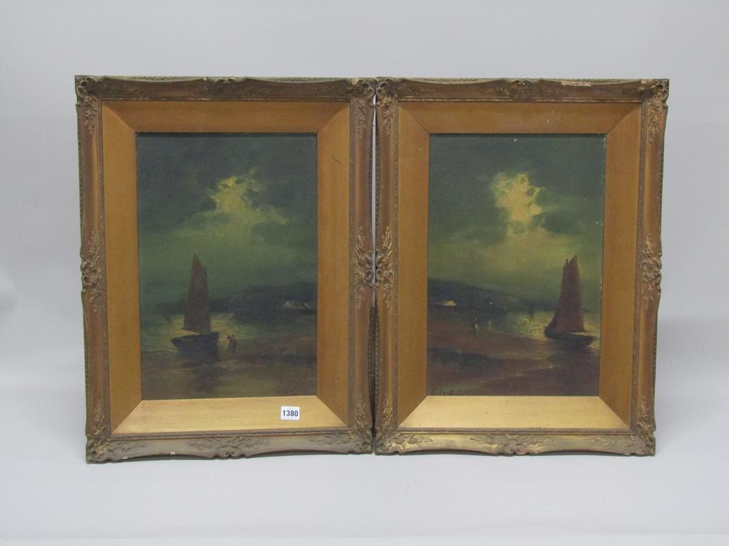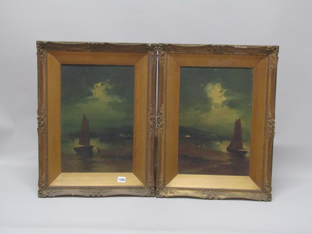 RICHARD JACK - PAIR, MOONLIT COASTAL SCENES, SIGNED OIL ON BOARDS, FRAMED
