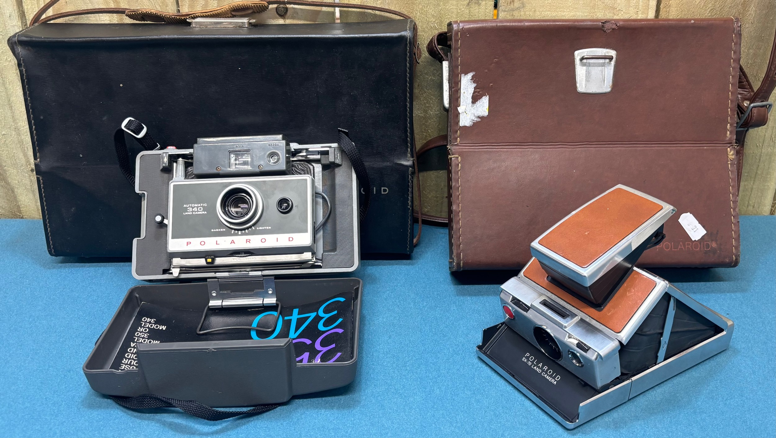Two polaroid camera's; Polaroid SX-70 Camera, accessories and travel bag and one other.