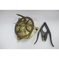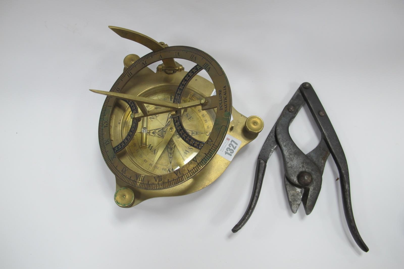 A Brass Sun Dial, together with a folding pair of clippers, stamped 1917, 31