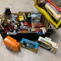 A tray of various loose Diecast, including two boxed vintage Corgis, one Dinky and three others, also small Starwars ships and other items.