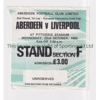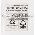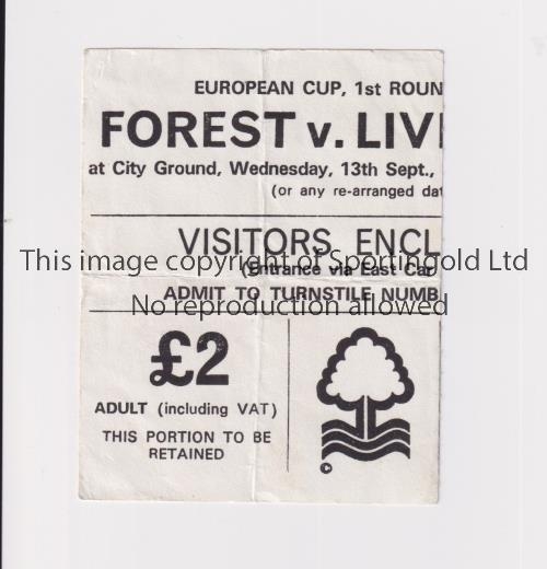 NOTTINGHAM FOREST V LIVERPOOL 1979 Ticket for the European Cup tie at Forest 13/9/1978, slightly creased. Generally good