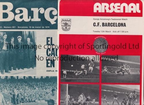 ARSENAL Programme for the George Armstrong Testimonial at home v Barcelona 12/3/1974 and Barca magazine 19/3/1974 with 7 pages of articles, match report and pictures of their trip to London and Highbury Stadium. Good